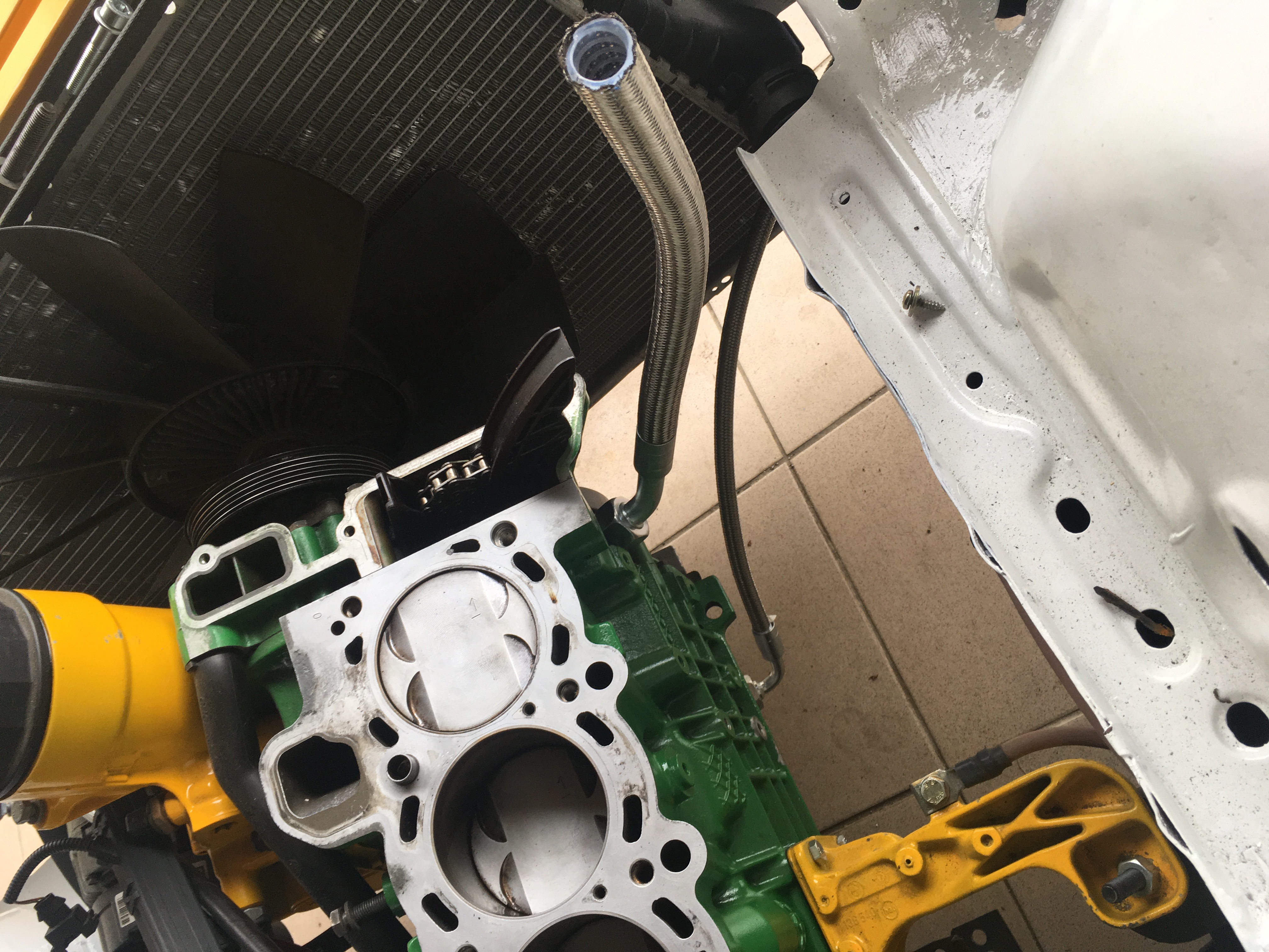Na motor som použil prevodovku z e34 TDS z dôvodu inak naskladaných prevodov. Snáď o bude lepšie, výsledná prevodovka čiže diferenciál je 3,15