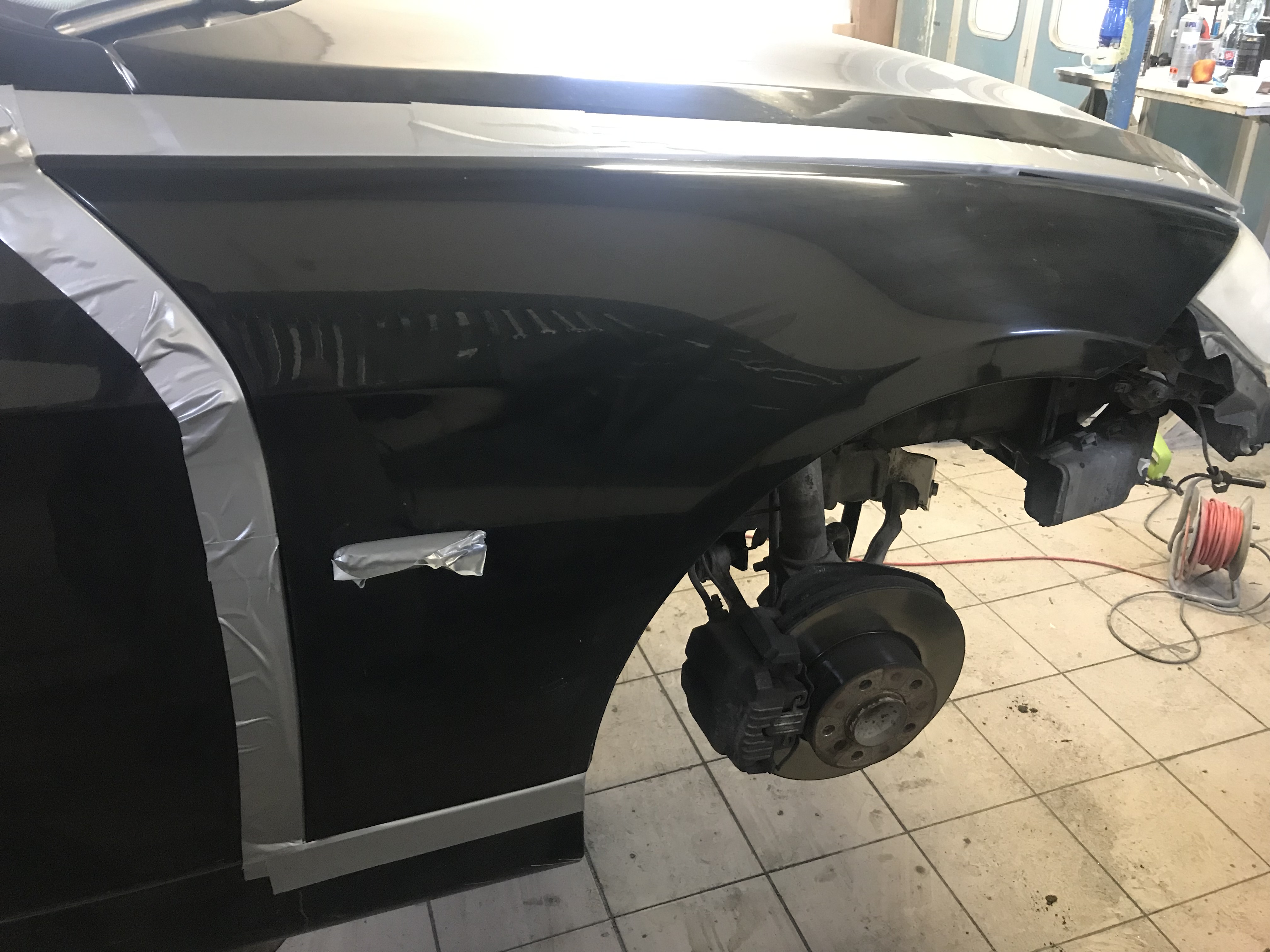 Všetky susediace diely s opravovaným dielom olepíme páskou aby sme predišli prípadnému poškodeniu lakovaných dielov, ktoré nemáme v úmysle lakovať.