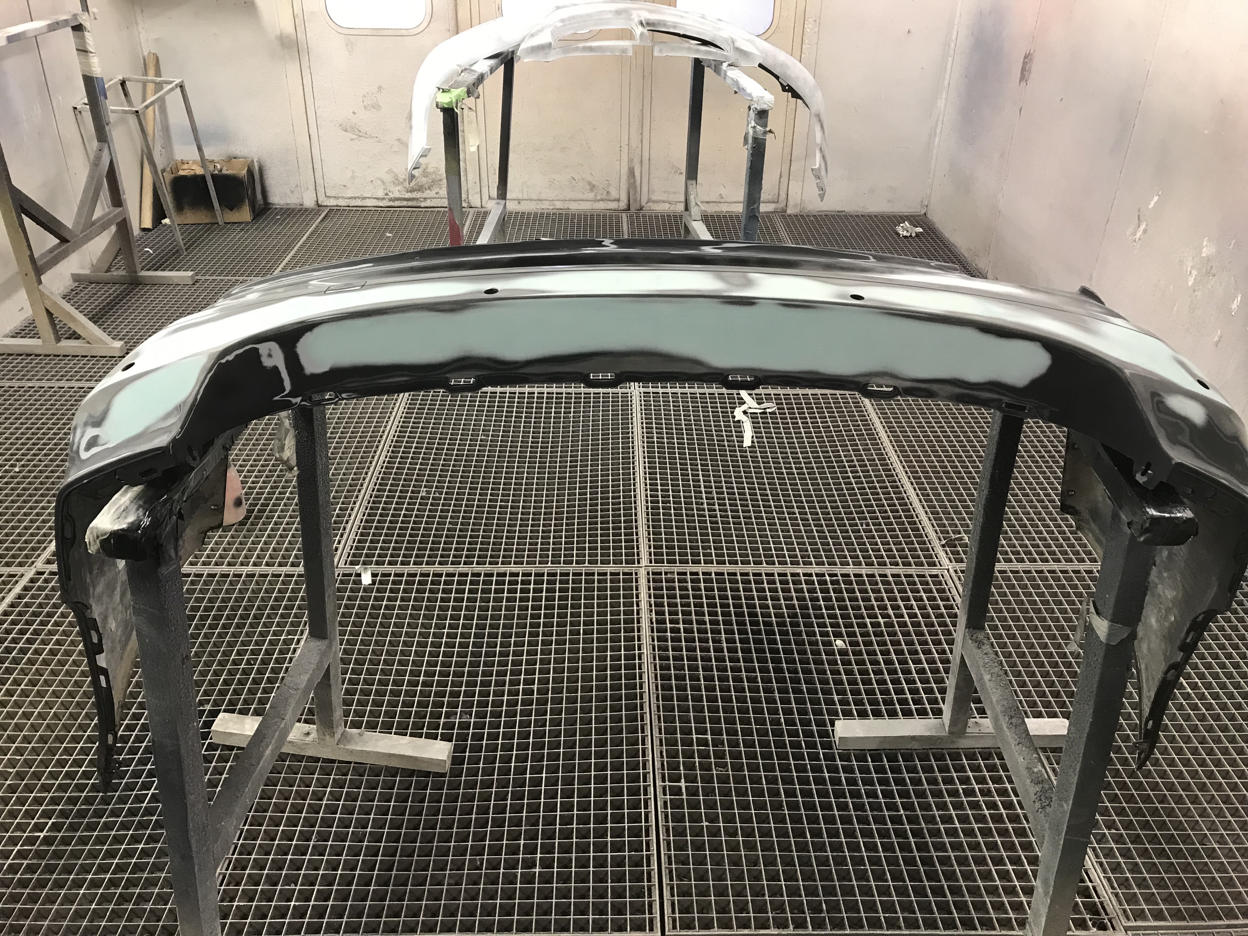 Nanesenie 2 vrstiev číreho laku, prvá je ľahšia, tenšia. Druhá je plná a jednoliata, aby sme dosiahli peknú rovnomernú štruktúru laku na celej ploche nárazníka. Dávame hlavne pozor na rovnomerné nanášanie, a správnu lakovaciu techniku nakoľko číry lak má tendenciu k stekaniu pri nanesení príliš hrubej vrstvy a vytváraniu efektu " pomarančovej kôry" pri nanesení príliš tenkej/suchej vrstvy. Lak následne necháme vyschnúť cca 8 - 12 hodín a až po úplnom vytvrdnutí montujeme.