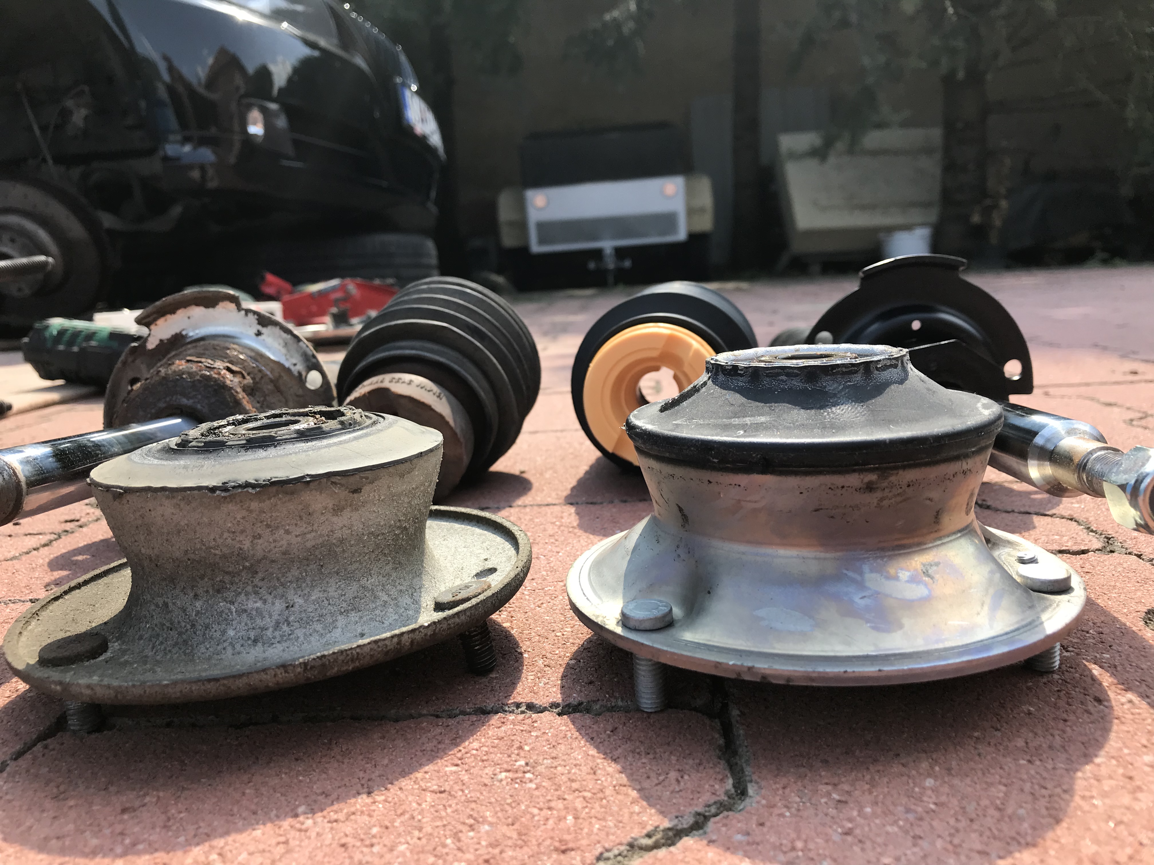 Postupne na afte som porabal klasicke veci dokupowali sa rozne oem veci krytky atd čo chybaló náplňe sa menili filtre proste čo trebalo doši narad aj zadné brzdy udajne boli na vymenu chudak Slavo aj kupil nový set no mne sa to nezdalo lebo kotuče neboli stare ani nemali drážku tak som zasiel ku kamosovi do servisu dali sme dolu brzdiče a hľa komplet drziaky zahrdzavene klzne plochy atd tak sa to pekne vycistilo isli nove platnicky kotuče sa lízli zo sustruhom a funguje ten set brzd do dnes ;)