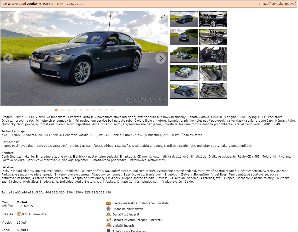 https://www.autobazar.eu/bmw-rad-3-330-i-e90-id14958042.html"TOP stav! Vela nových vecí, o auto maximálne starané..."Top stav vela novych veci a maximalne starane v tomto pripade znamena burane na bok, predne zadne dvere zadny bok,