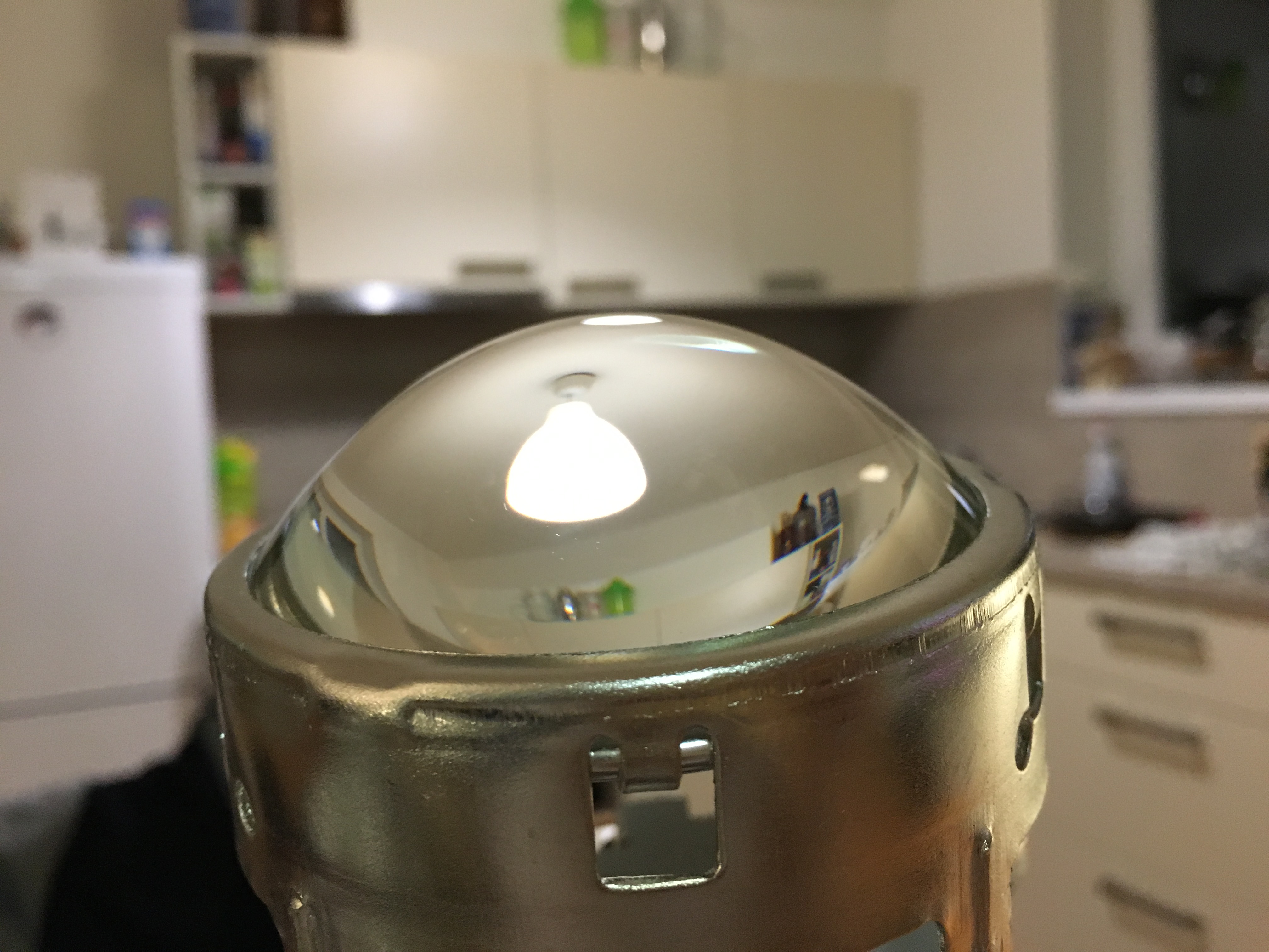Nicmene na diry projektory sedi jako oem, takze jsem je zamontoval a vysledek prekvapil. Velmi pekne rozprostrene svetlo, ostry lom. Nicmene opravdu o dost uzsi kuzel - cca 2,5 pruhu...
