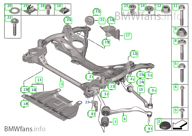 ako pisu chalani, silenty prednych ramien, silenty zadnej napravnice...ale najlepsie je kupit auto s M podvozkom :)
