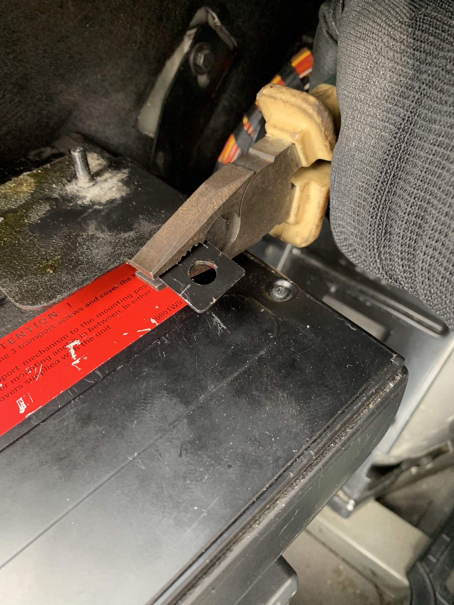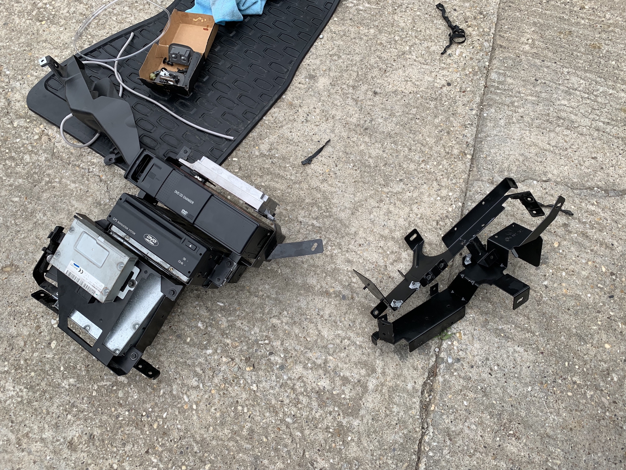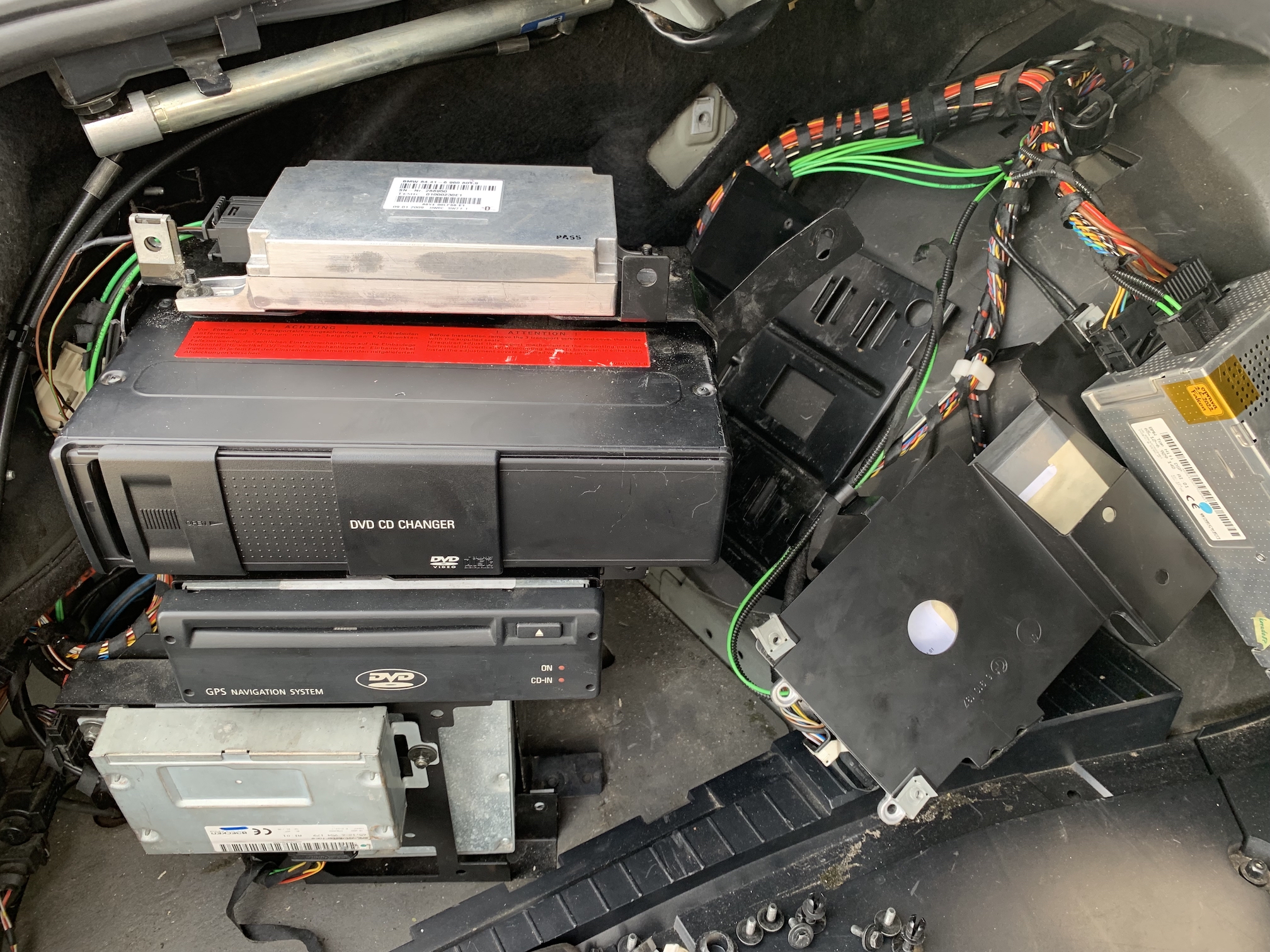 Tá E66 ma neprestane prekvapovať. Viete čo sa stane keď prší alebo umývate auto a potom neskôr otvoríte kufor? Voda ktorá sa dostane cez pánty kufra dnu ostane v pánte a akonáhle sa otvorí tak sa krásne vyleje na tie jednotky v kufri. Riešenie je “jednoduché”. Retrofit - vanička - ktorá zachytí vodu a cez hadičku vyvedenú do blatníka ju odvedie mimo auta. Akurát musí ísť všetko von. V mojom prípade na dvakrát - lebo nové držiaky, opraviť kabeláž, pásky atď… a nech je to zložené už navždy. Lebo by som bol nerád keby repasovaný Logic zase umrel kvôli vode