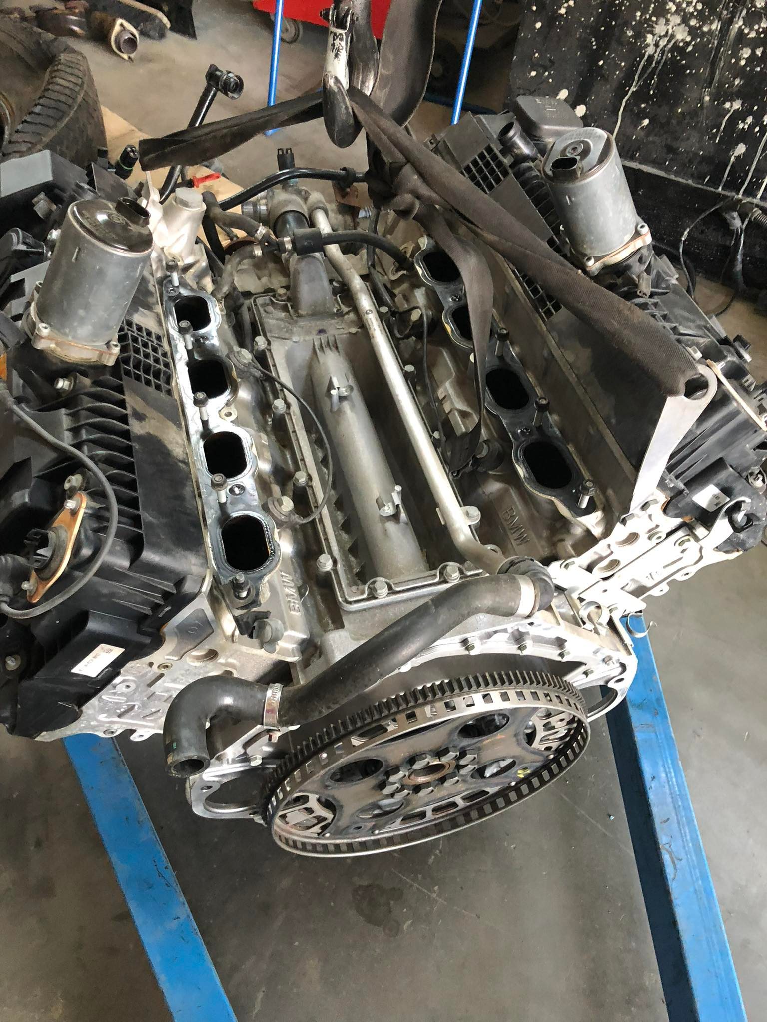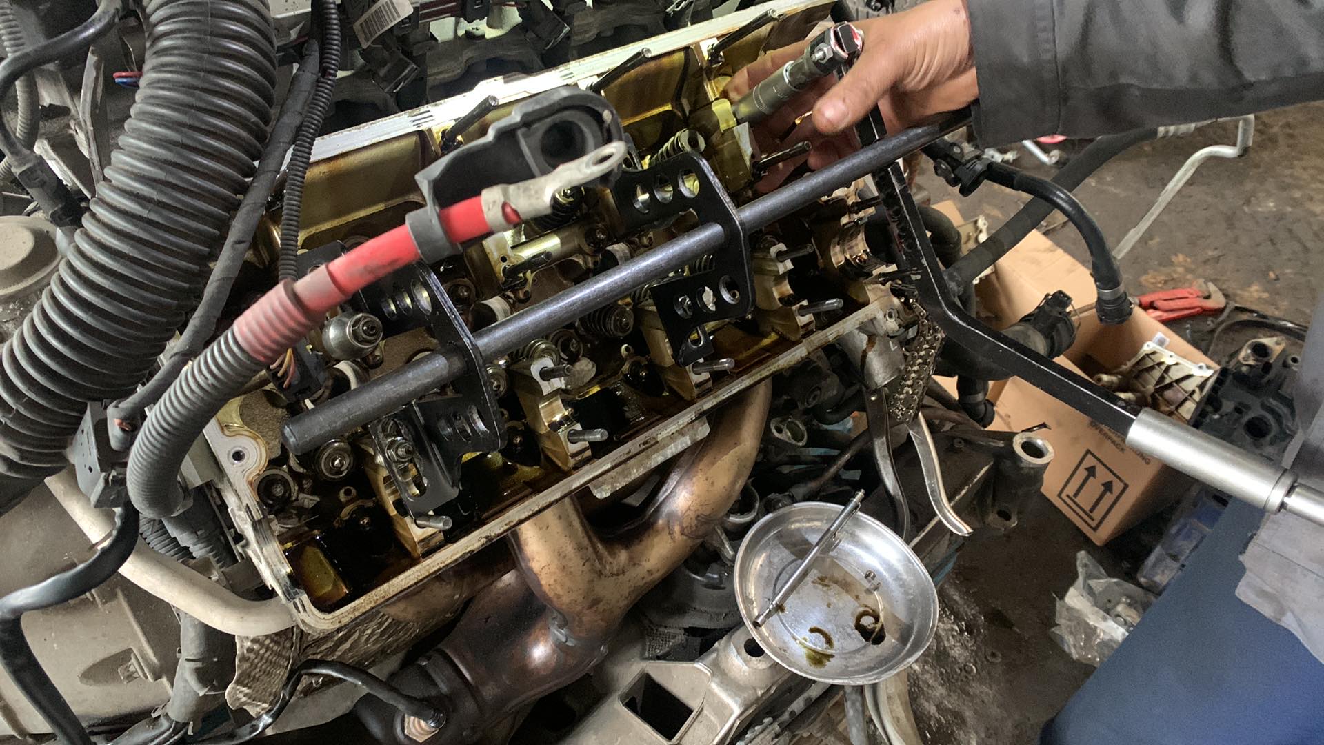 Motor poskladaný, beží absolútne bezchybne. Menili sa katalyzátory, keďže jeden pôvodný bol nepriechodný, samozrejme sviečky, cievky, tunely k nim, pretesnený je vrch motora, predné prsia, veká ventilov, spodok motora, simeringy na kľuke, olejová vaňa, vanosy. Ten motor ide že ani neviem... veľká spokojnosť.