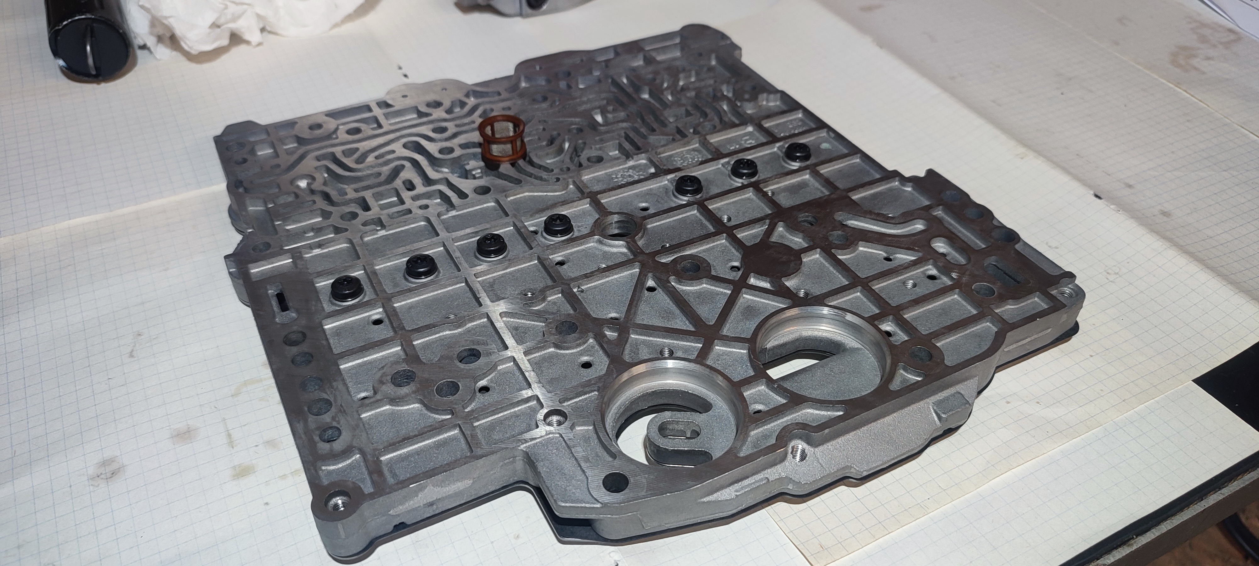 - cistenie mechatroniky, lestenie piestov a vymena piestu ovladania tlaku, vymena guliciek, vymeneny akumulator vyrobeny na mieru, pretesnena zadna priruba