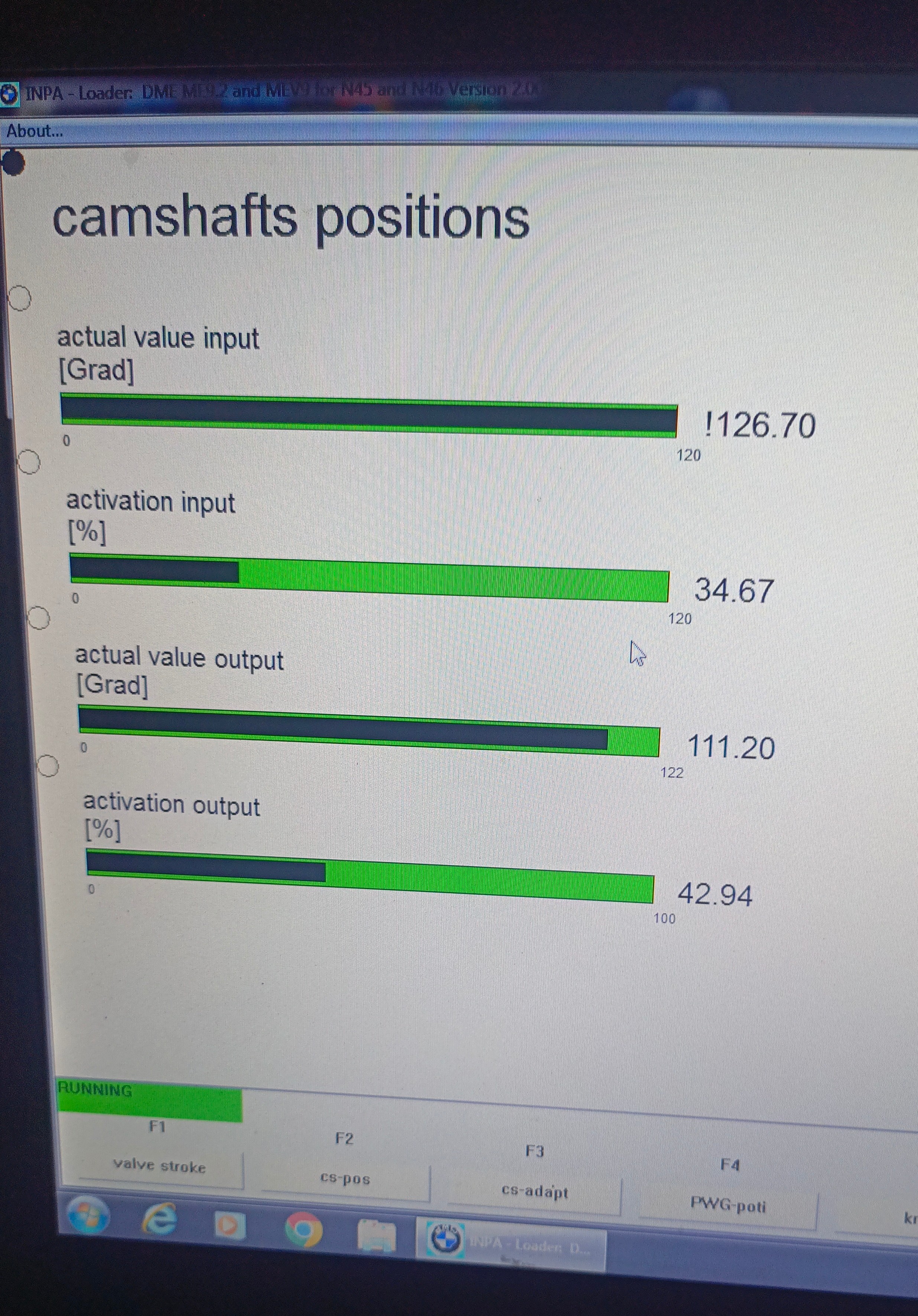 Vanos nastavovač vyzerá, že funguje, prerože hodnota actual value input aj output pri pridavani plynu meni hodnoty.