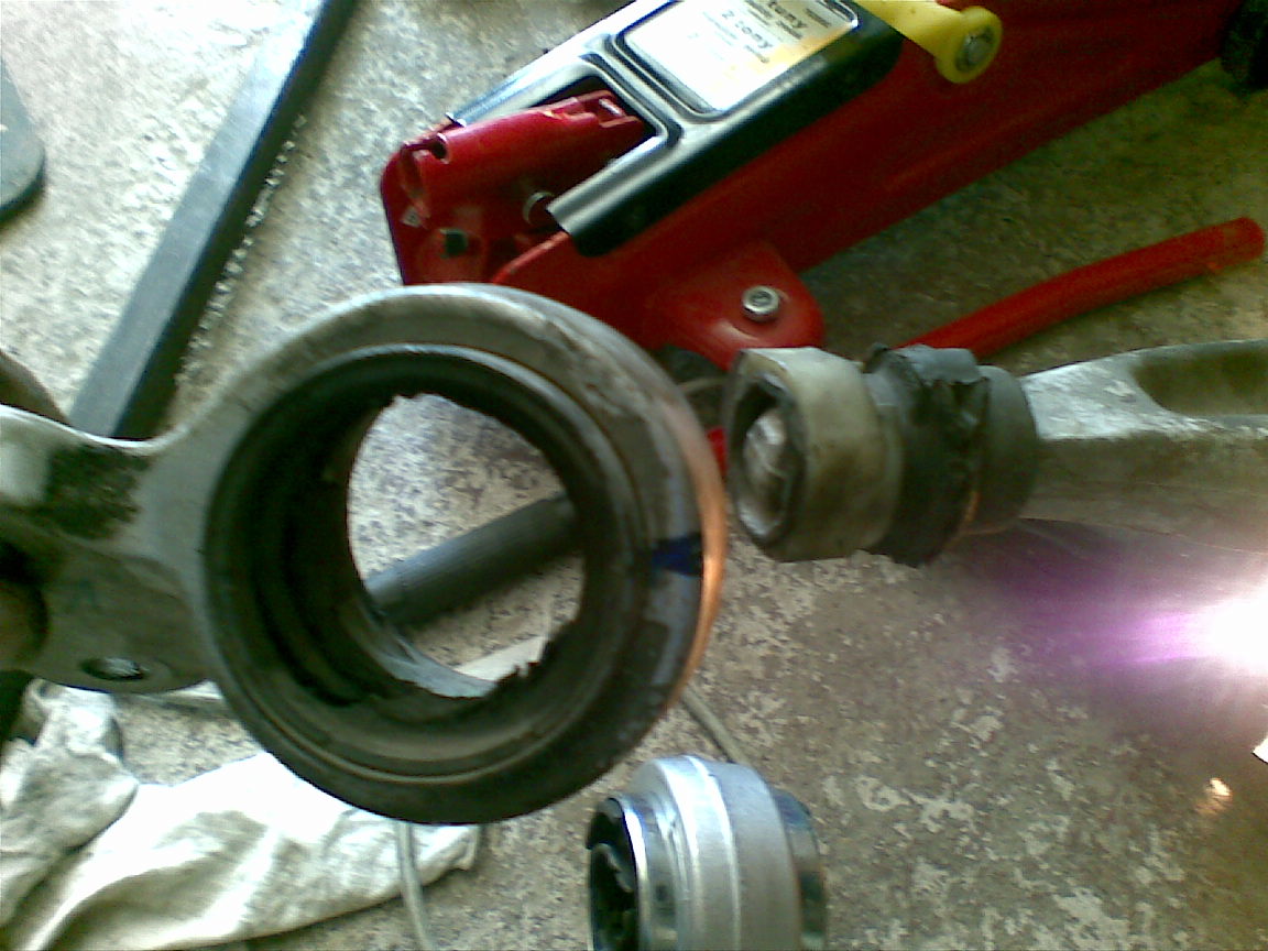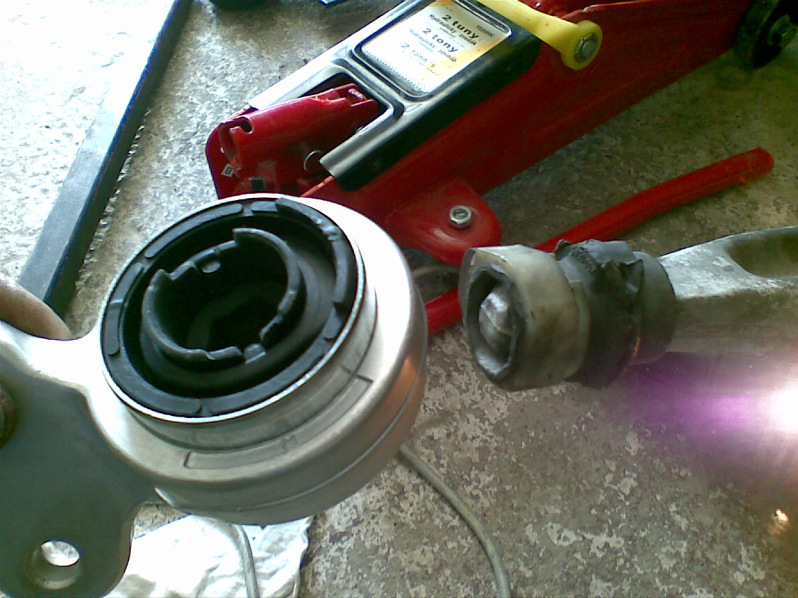 Na zaciatku som bol troska taký znechutený ztoho ze ani za svet som nevedel dat dole rameno,cap pri kolese nie a nie dole!Pak som vytocil volantom a odtiahol rameno tak aby som z toho vedel dvojramenným stahovakom dostat dole zvysok opotrebovaneho silentu.vsetko bolo ok a to bez jedineho tuknutia kladivom(sice pajseru som trochen potreboval =P~ ).Pri nasadzovaní noveho silentu som postupoval podla rady "killian"-a(este raz Thank You!) a pomocou tej "vecicky" som za pár sekund mal silent na ramene(rameno som nemenil,nakolko capi mam este v celkom slusnom stave)a pak len montovat vsetko naspat :wink: .Druhu stranu som uz vymenil ako zabehnutý mechanik :lol: