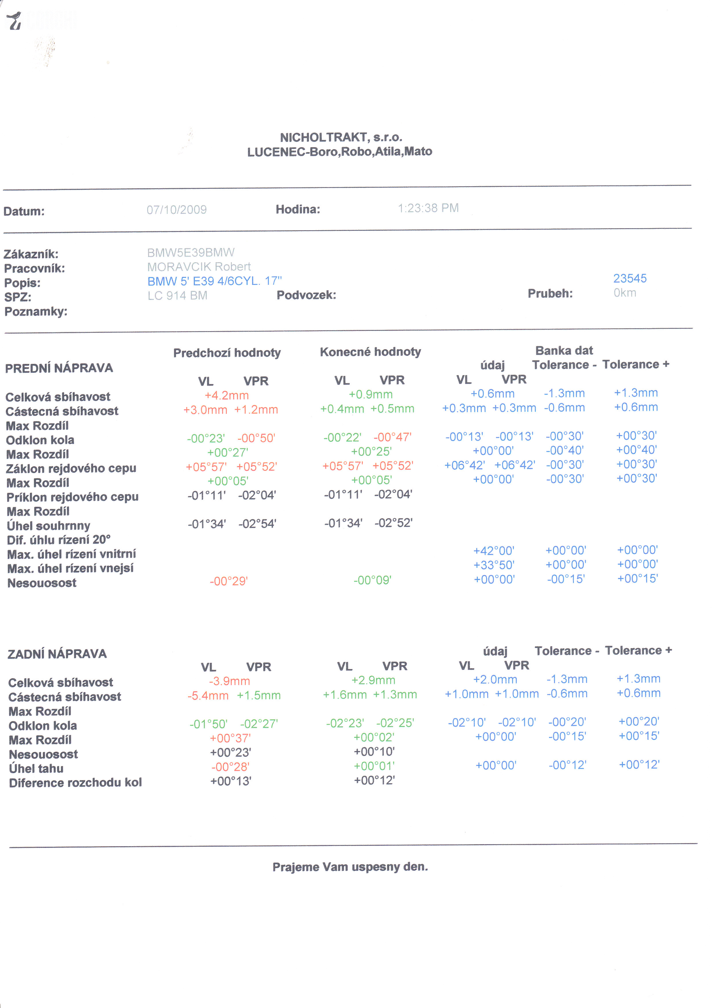 Hlavna vec je aby dali do nuly alebo skontrolovali zadnu napravu a tak podla zadnej robili prednu. Lebo znamemu tak robili geometriu ale urobili len prednu napravu podla zadnej, a zadna bola zle. Zozralo mu to uplne nove gumy na droty na necelych 1000 KM.