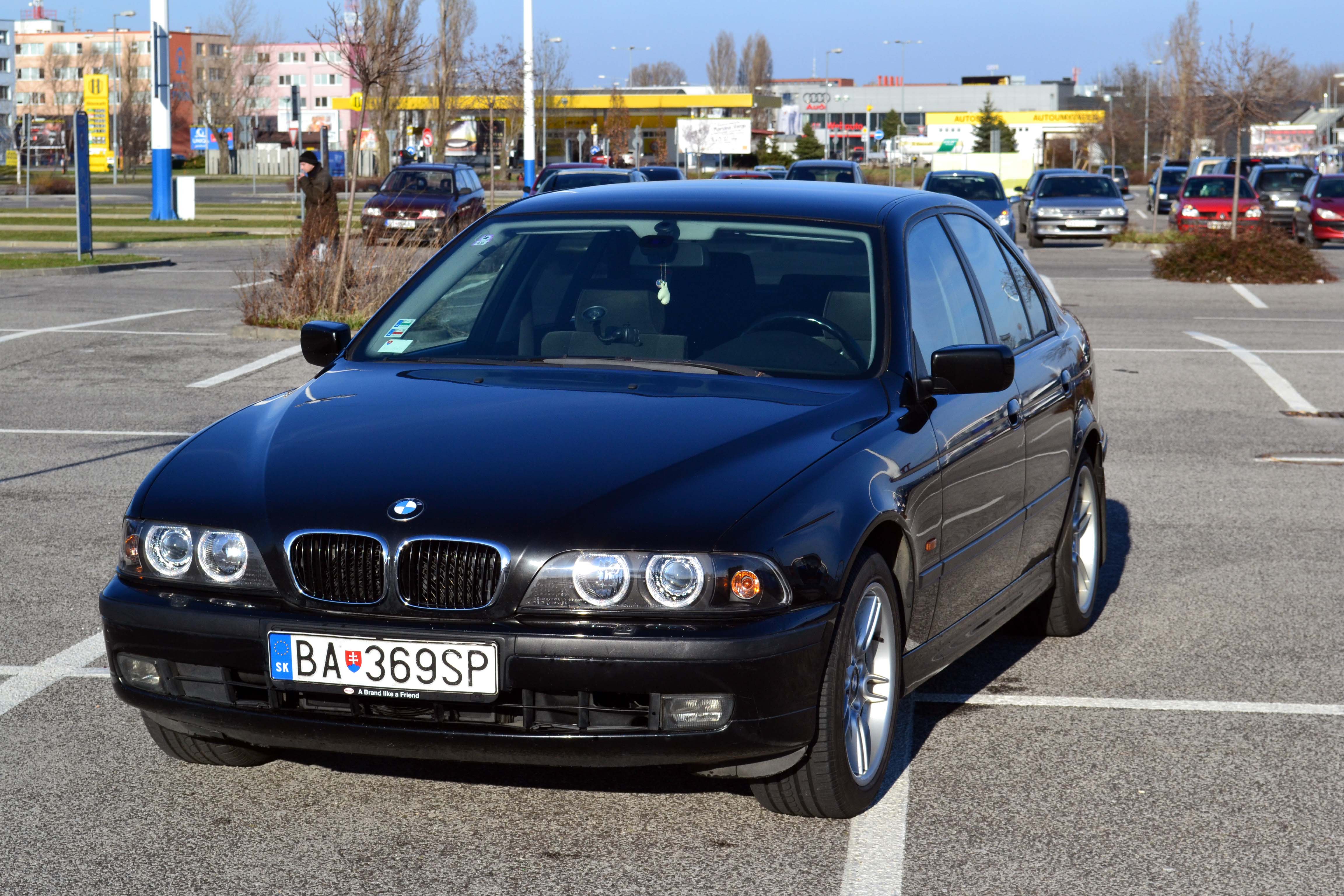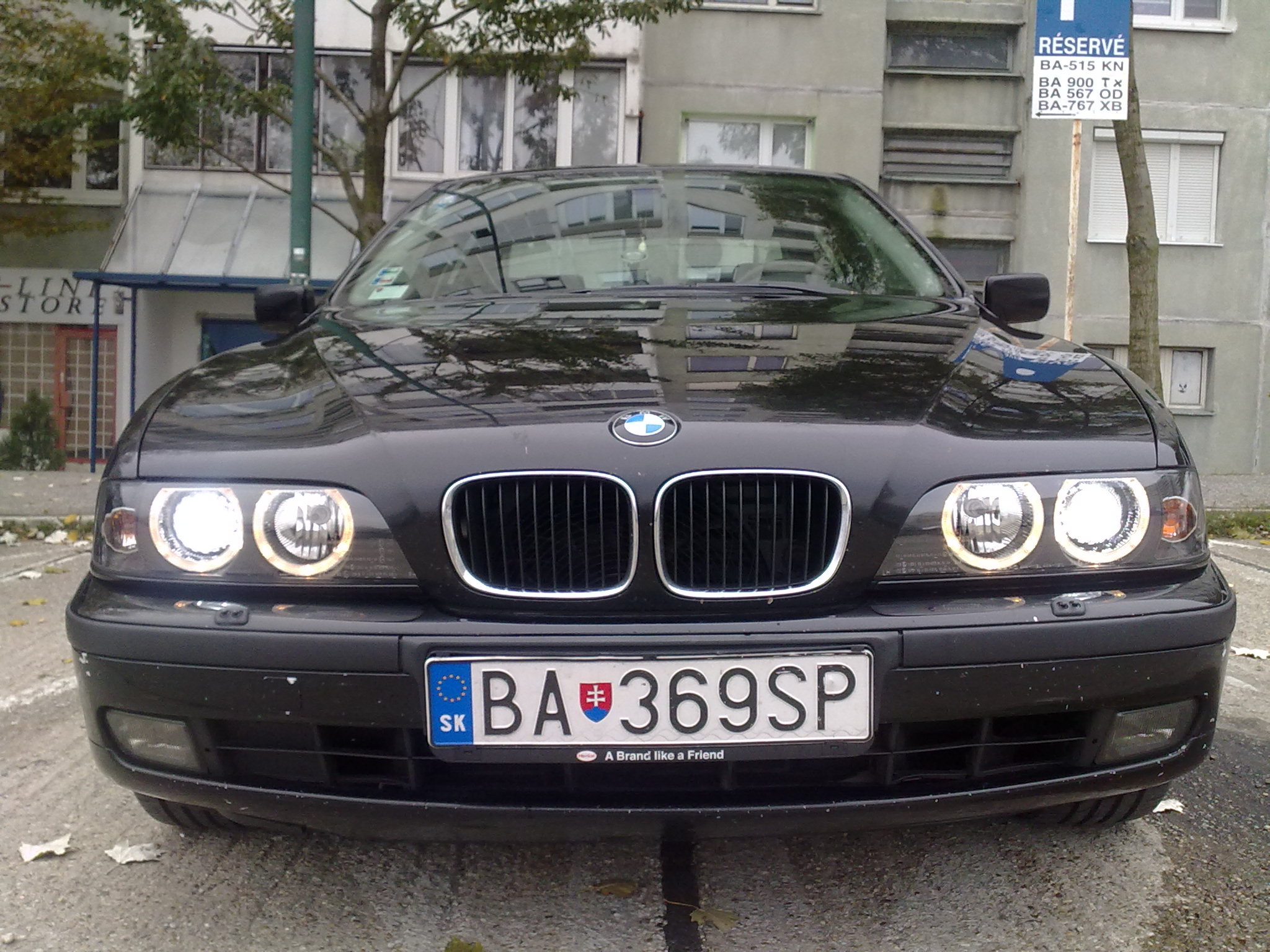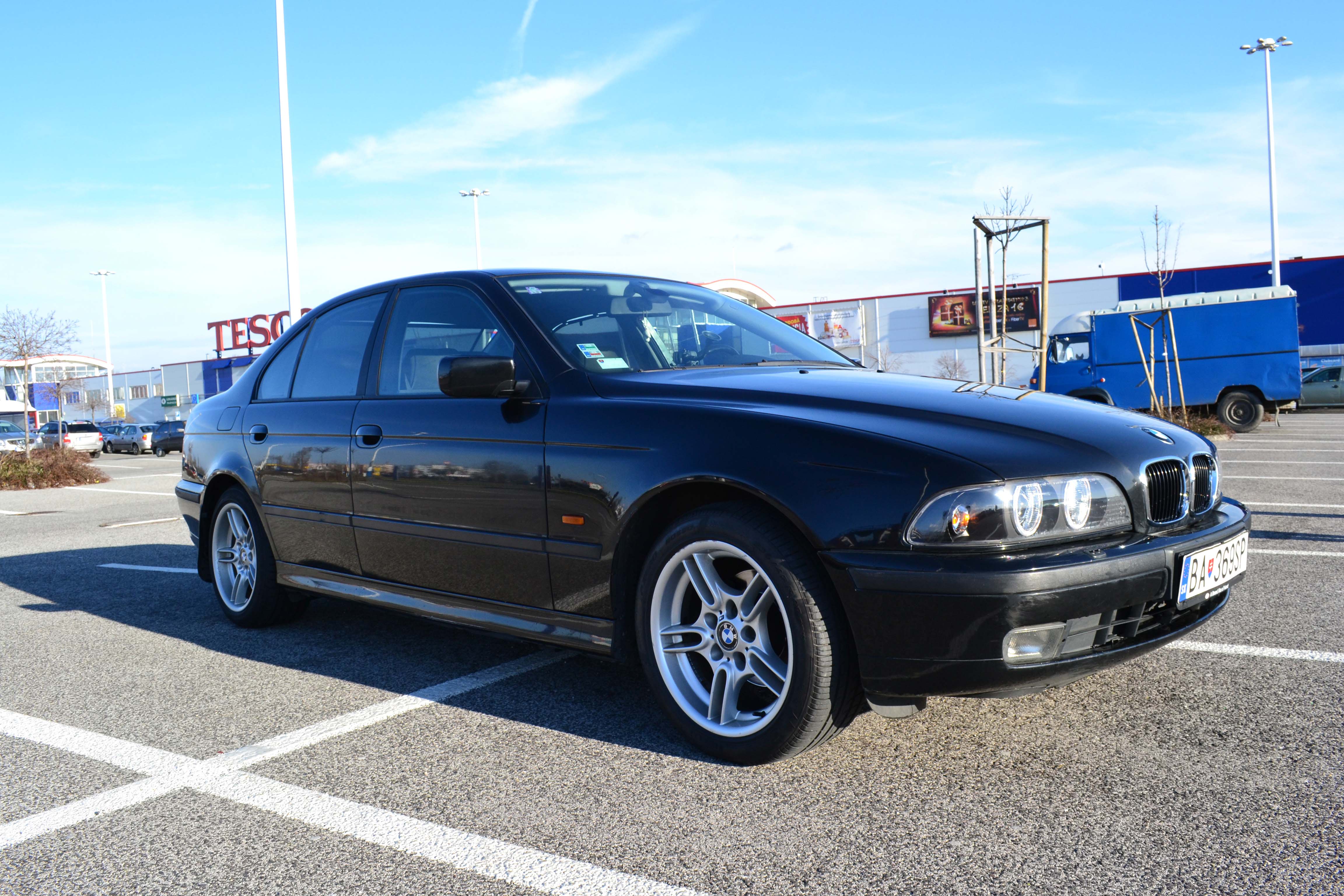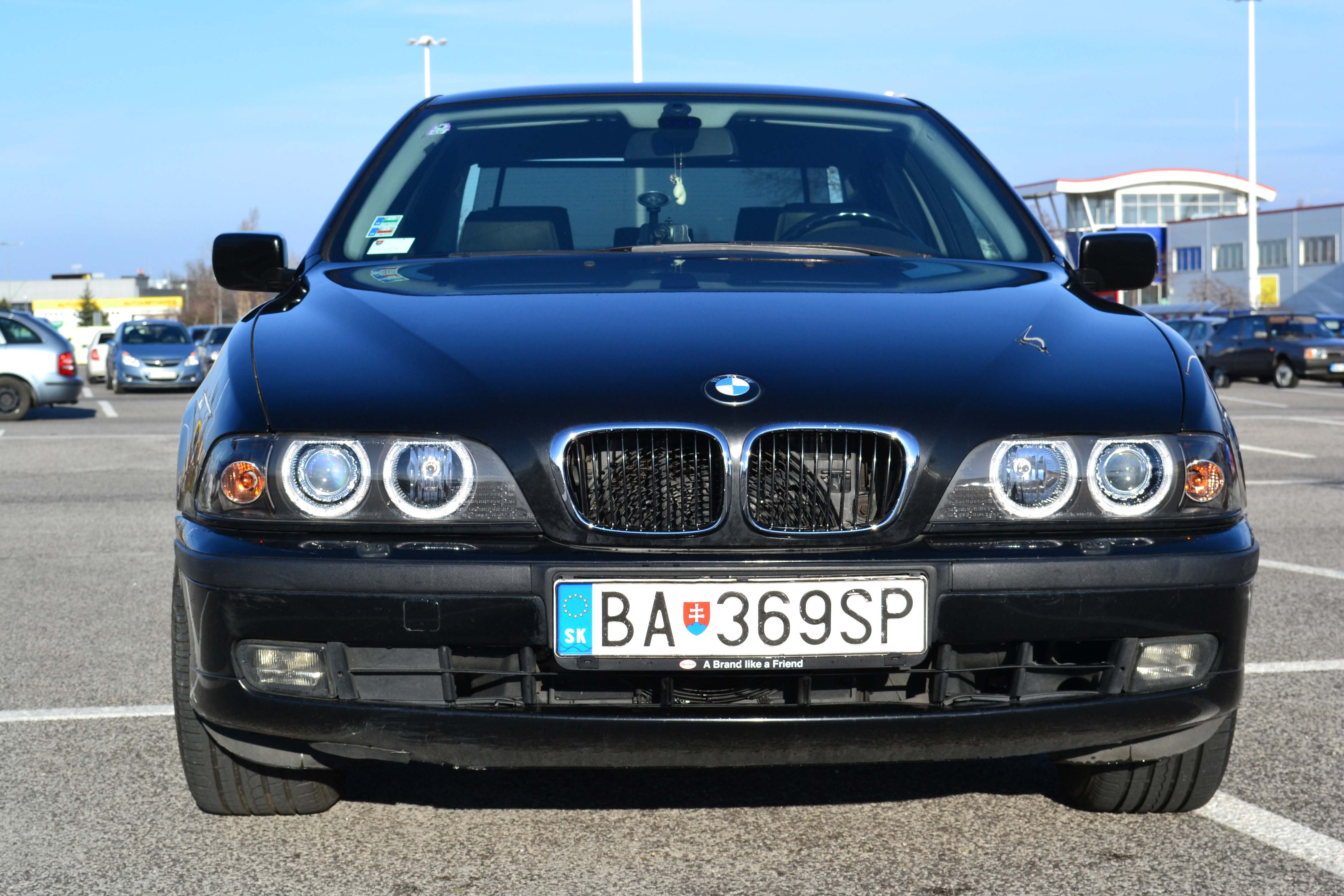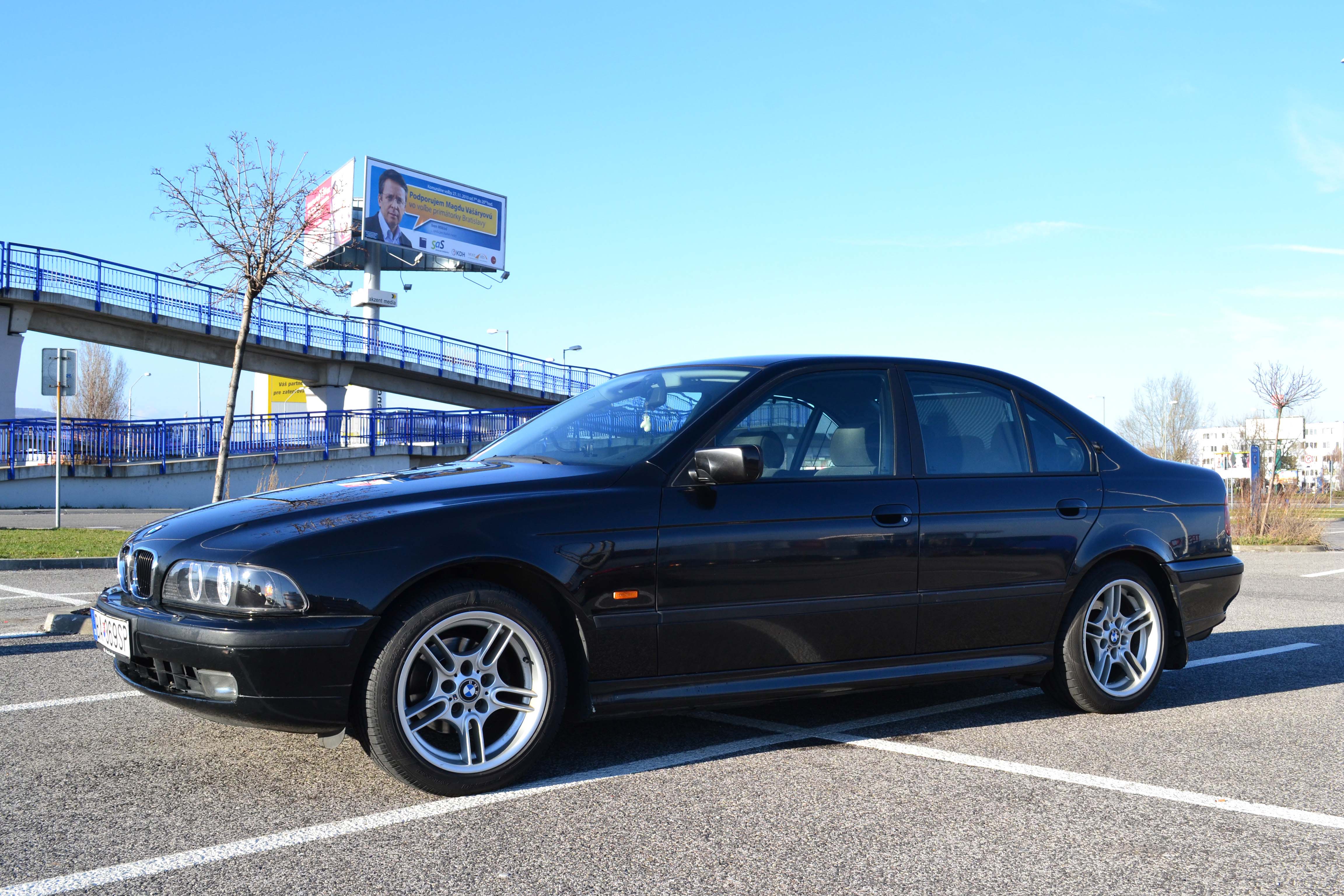 nastal cas podelit sa o svoju radost aj tu. povodny plan bol kupit e46 s nizkym objemom, s dobrou spotrebou. po skuske asi dvoch/troch stvorvalcov ma to preslo (sedenie sa mi nezdalo nejako extra prijemne, zvuk, spravanie motora ma tiez neohurovali). pozrel som na net, co nam trh ponuka a bolo toho ozaj hodne. 6 valcov kopa, stacilo si len vybrat. volba padla na nenapadne cierne BMW. hned som skusal zavolat ci je to este aktualne a bolo. o par hodin som sa skusobne viezol v krasnom ciernom BMW e39. ziadne buchotanie podvozku, vsetko krasne odhlucnene, perfektny chod auta... po par kilometroch a dokladnom prehliadnuti som bol rozhodnuty a tak sa aj stalo. o par dni stalo pred domom. auto bolo kupovane na SR. jazdila ho nejaka zenska. po rokoch zenstina presla na mercedes a auto slo k druhemu majitelovi, ktory s tym lietal trasy ako Bratislava -> Vieden, Bratislava -> Pariz, etc. nalietanych 244k. a treti majitel som ja. nieco k vybave: dvojzonova klima, palubak, manualne roletky na oknach + vzadu elektricka, el. zrkadla, tempomat, multifunkcny volant, etc. Auto som kupoval s prasknutym sklom od kamienka a takmer nefungujucim svetlom. Sklo opravene, svetla vymenene za facelift verziu (vdaka predajcovi Martin46), vymeneny olej za orig. BMW 5W40 + novy filter, doplnene kvapaliny (ATF+voda do ostrekovacov).