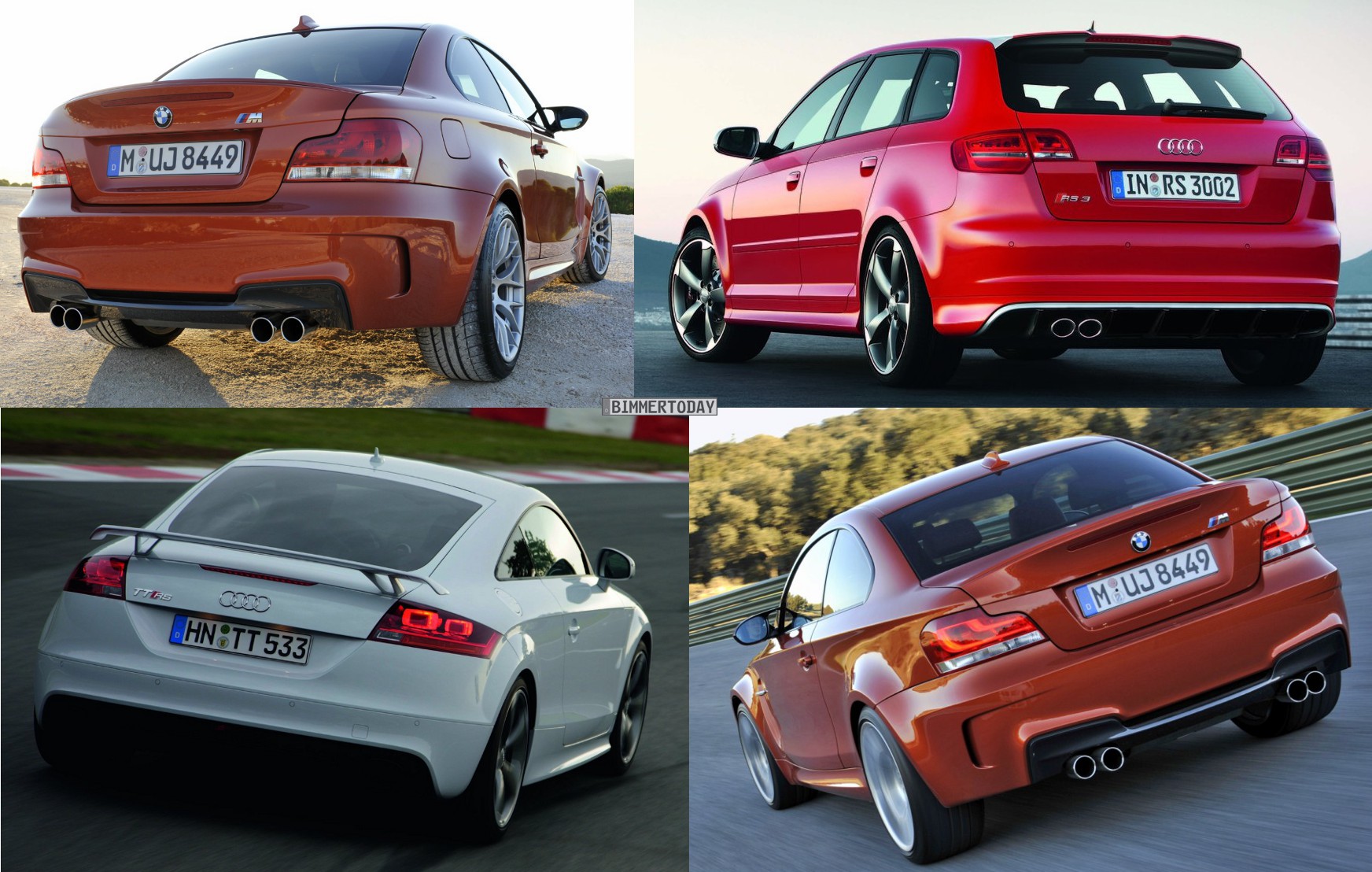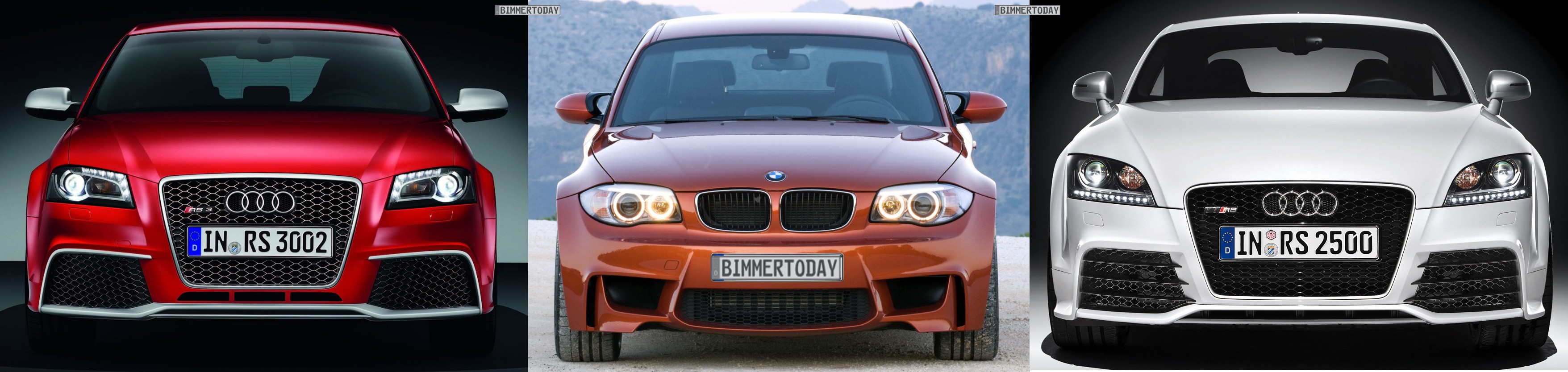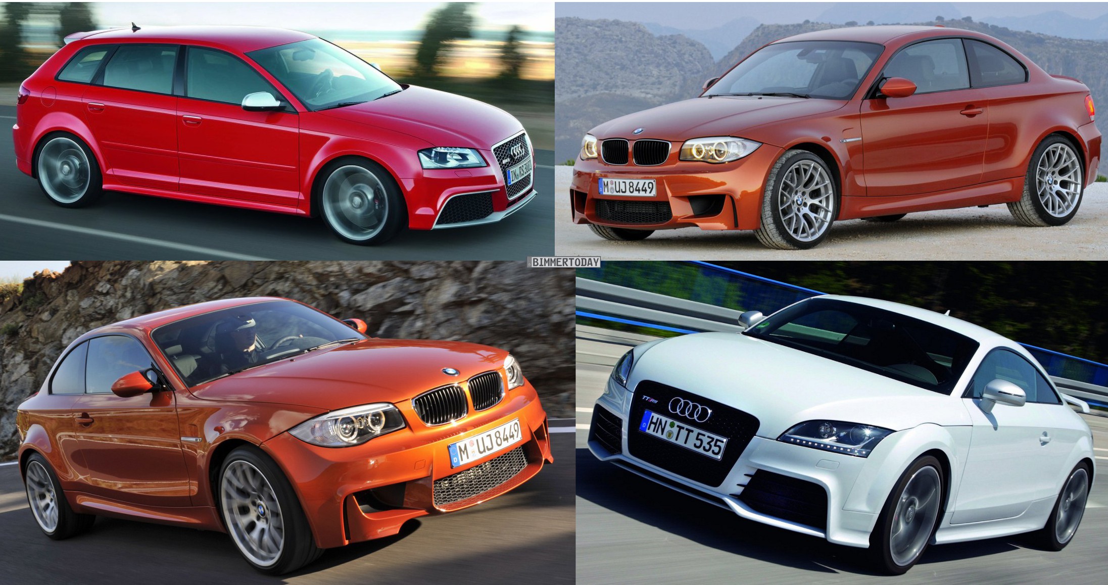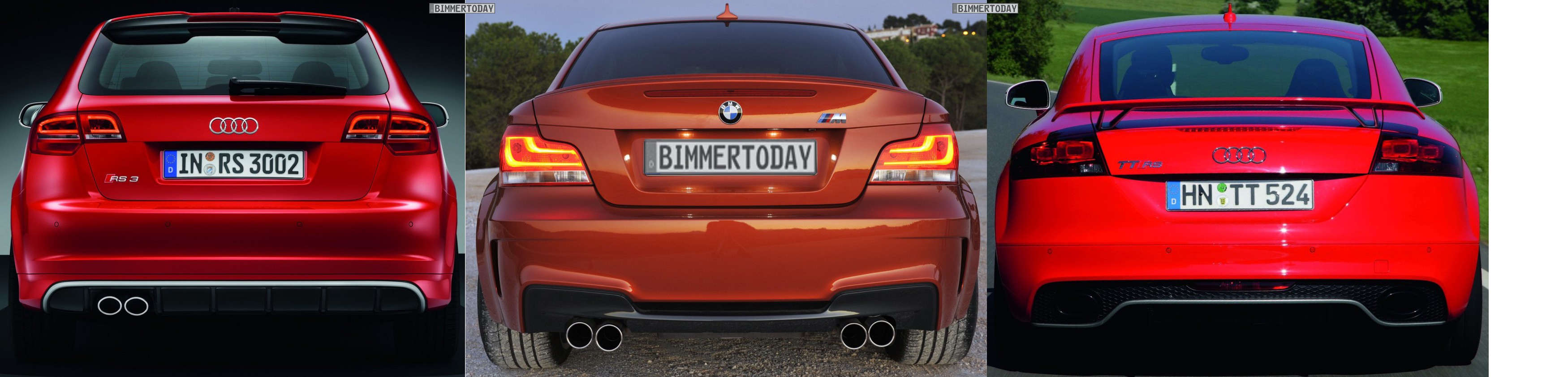 dizajn prednej časti Audi RS3 4/5 BMW 1M 3/5 , zadok RS3 3/5 1M 5/5 , bok nehodnotím pretože sú to rozličné karosérie Hatch/Coupe sa nedá porovnávať ... jazdnými vlastnosťami a zábavou za volantom BMW určite predbehne RS3 čiže 1M to u mňa určite vyhráva ( aj preto že má manuál a RWD ) , okrem toho RS3 podľa mňa nevyzerá dostatočne športovo hlavne zo zadu , na to že má 340koní pod kapotou .