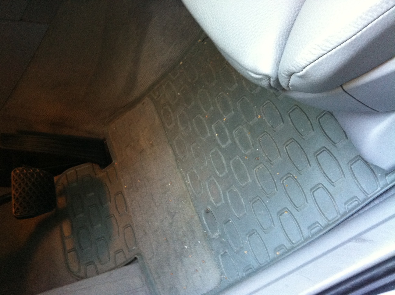 tak ti musel utiect alebo co..inac ja mam ten suchy zips iba na spolujazdcovom koberceku. zo soferovho sa pouzivanim asi zodral.takze aby som ho udrzal na mieste som ho prepichol a ta plastovu skrutku ide zvrchu cez kobercek do podlahy auta...