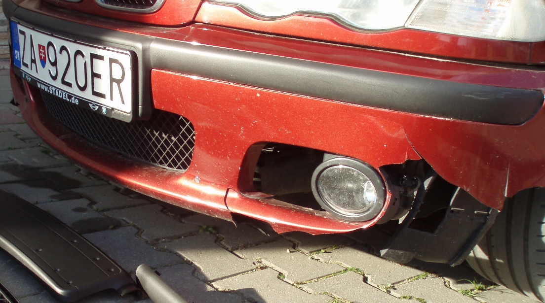 Vcera mi prisiel novy predny naraznik(povodny som pokrstil s nadobudanim drifterskych skusenosti), nove stierace,predne podblatniky,manzeta radiacej paky,krytka hmlovky,tlacidlo kluca,trojramenny volant a na co sa asi najviac tesim je rozpera prednych tlmicov!!!