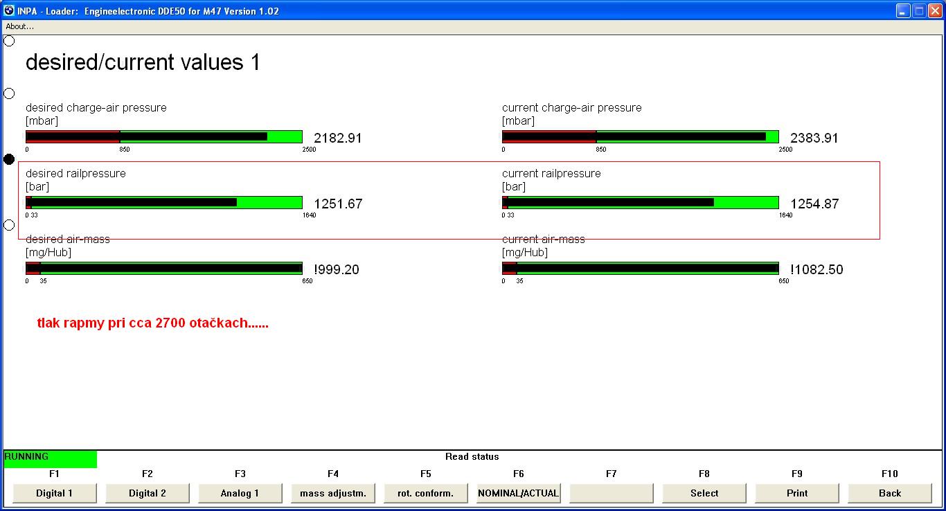 tak chlapci zhrnieme si to....ak je tlak na tryske max 1600bar,tak musí byť aj zakonite na rampe 1600bar!!!!!Alebo sa z rampy z 800bar urobí same od seba do vstreku 1600bar????tlak sa naklonuje???.....,všetky vstreky su su napajane z jednej rapmy,ak ide na rampu 300bar tak aj do vstrekov 300bar.....