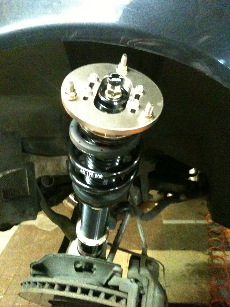 A včera nastal konečne vytúžený deň keď sme si našli čas aby sme to nahodili (inak bola to riadna makačka :shock: ) Všetko išlo ako po masle a skúsený mechanik nemal s výmenou najmenší problém. Nastavenie výšky je veľmi komfortne vyriešené kde na zníženie sa povolí spodná matica a otáča sa hornou maticou, na zvýšenie sa otáča strednou. Od výrobcu to prišlo nastavenie tvrdosti na hodnoty 8 v predu a 8 v zadu. Ja to mam momentálne na 25 vpredu a 25 vzadu. Svetlu vyšku som nechal troška hore, preto zatial nedavam fotky auta, aby si to cele sadlo a potom si to upravim a samozrejme aj fotky doplnim. Čiže mam auto bez zadnych sedadiel a zadneho plata aby som mohol rychlo vyriešiť nastavenie zadných tmičov k spokojnosti. Jazda je veľmi príjemna na tomto nastavení auto je mierne tvdšie ale krásne tlmi všetky nerovnosti, ked to porovnam s AP tak je to troska soft ale oproti M-packetu zase troska tvrdsie. Skackanie ziadne, podvozok tlmi aj tie najmensie nerovnosti čo som ostal prijemne prekvapeny. Zatial mam odjazdenych len cca 80km, podvozk uz mierne sadol čo som si všimol, odozva kolies na volant je okamžitá, zakruty to reže ako po koľajniciach, je to veľmi presné (ani sa nečudujem kedže horne uloženia su hlinik a nie guma). Žiadne pazvuky som zatiaľ nevypozoroval a dufam že nebudu. Na forach som sa dočítal že cca po 4-6K km zvyklo drnkotať horne ložisko na prednych tlmičoch. BC to vyriešilo okamžite a všetých s týmto problémom zasielalo KOYO Bearings na vymenu. Mne už prišiel kit priamo s Koyo bearings takže pravdepodobne BC zmenilo dodávateľa na ložiská :mrgreen: