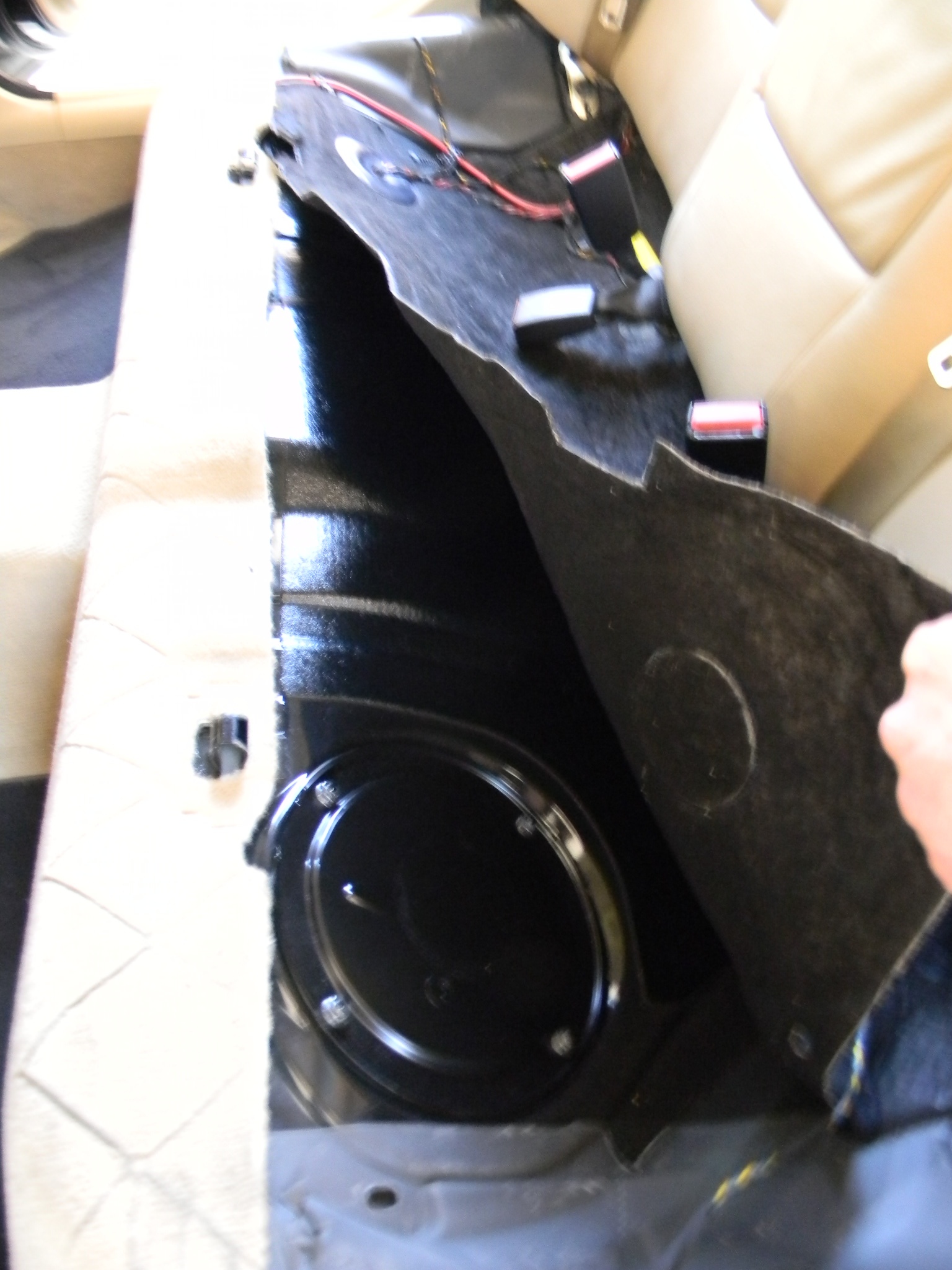 VAROVANIE: Nedemontujte sedačku keď nemáte pevné nervy a trpezlivosť zamontovať ju späť, zásuvky pásov je obtiažne prevliecť späť do dier.Keď už z nejakých dôvodov potrebujete demontovať sedačku, mne sa osvedčilo posunúť predné sedačky úplne dopredu, vojsť dozadu tak aby som si takmer sadol na stredovú opierku, chytil hranu v strede sedačky a ťahal ju smerom hore.