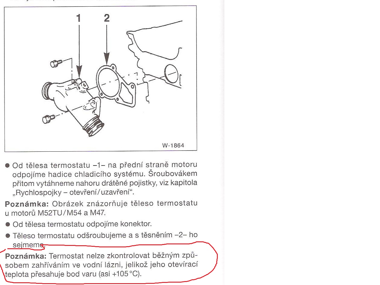 Simik, ja viem ako ten termostat funguje, ja mam tiez tento system v aute a nie je pravda, ze sa otvara okolo 105 stupnov. otvara sa tak, ako je od vyroby nastaveny, ma nejaky prednastaveny rozsah a v tom pracuje. moj je tiez na tento system a mechanicka cast otvara na 95. takze tu pravdu celkom nemas. Kazdopadne k veci. na tychto termostatoch odchadza prave ta jednotkou ovladana vyhrievacia cast a tym termostat otvara az na hornej hranici, napriklad pri tomto by to bolo prave tych 105. vyhrievacie teleso vie termostat otvorit skor, pri nizsej teplote, co sa bezne aj deje. mal som taky problem, viem o com hovorim, termostat mi otvaral na maxime a auto sa skratka dostavalo cez 100 stupnov lebo termostat otvaral cisto mechanicky a neskoro.
