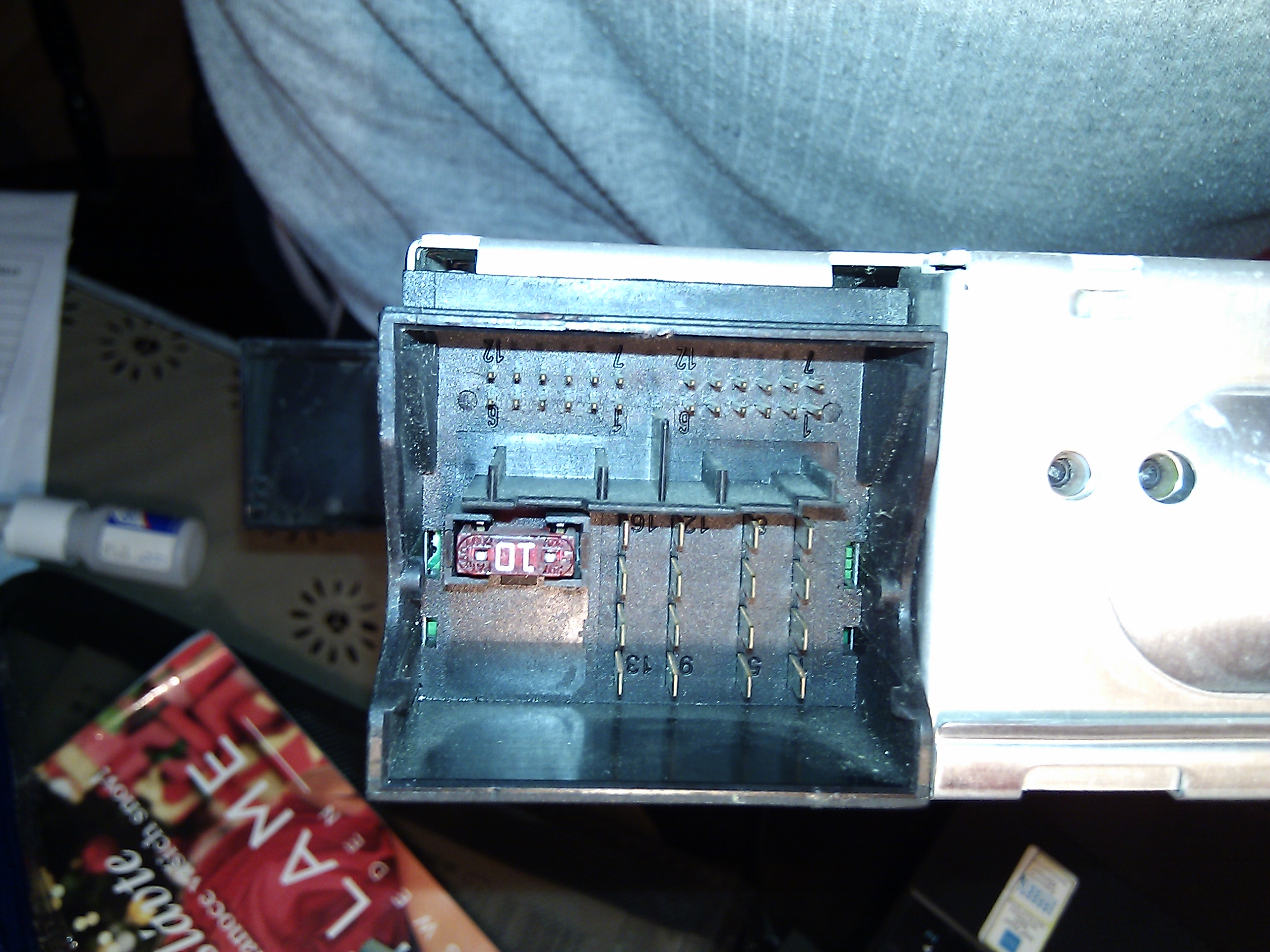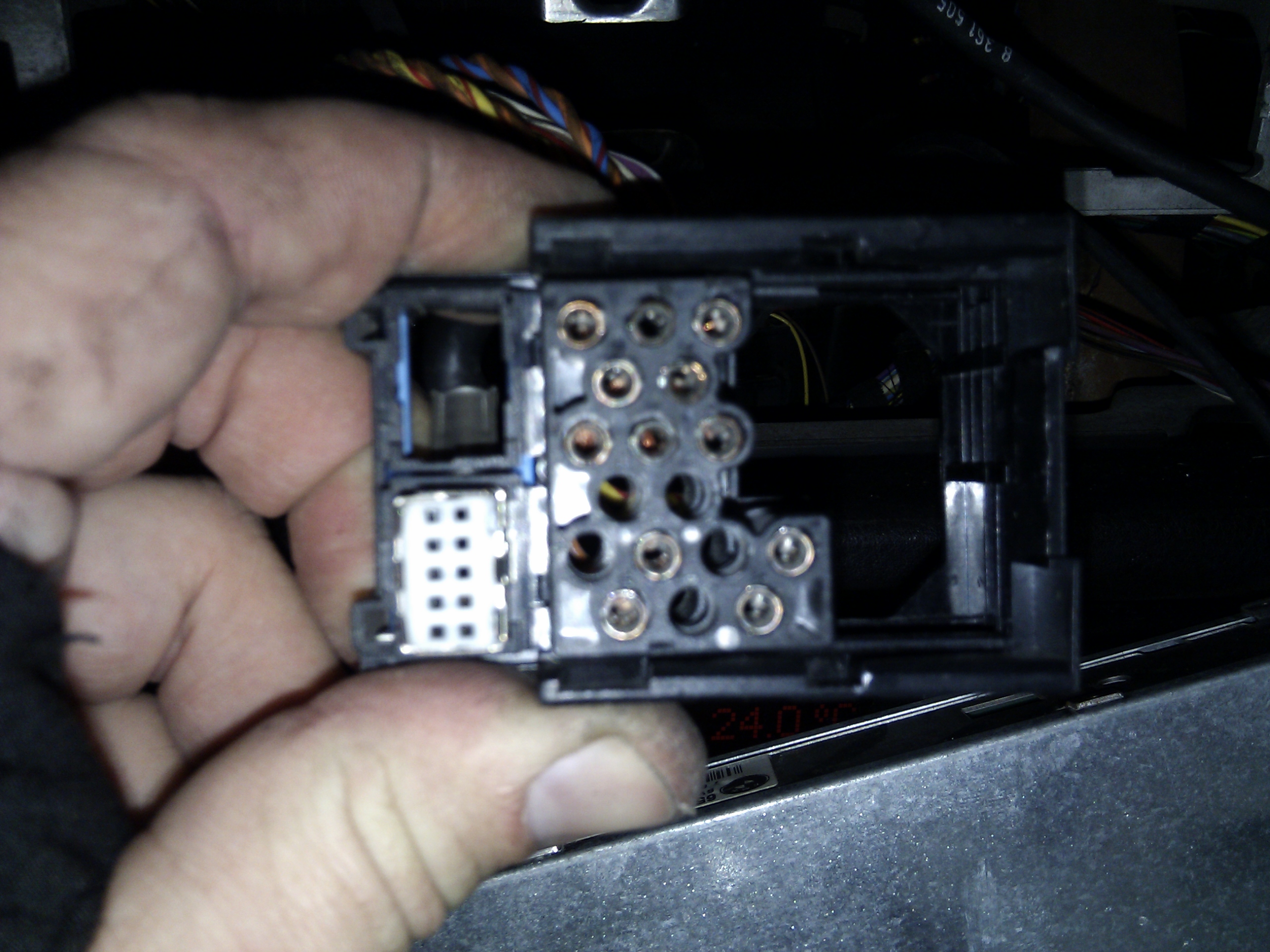 Mas zapojeny a funkcny aj CD menic, resp. chces ho vyuzivat? Ten spodny konektor je kvoli nemu a ten nemam, na to by si si musel kupit tu redukciu origo z BMW.