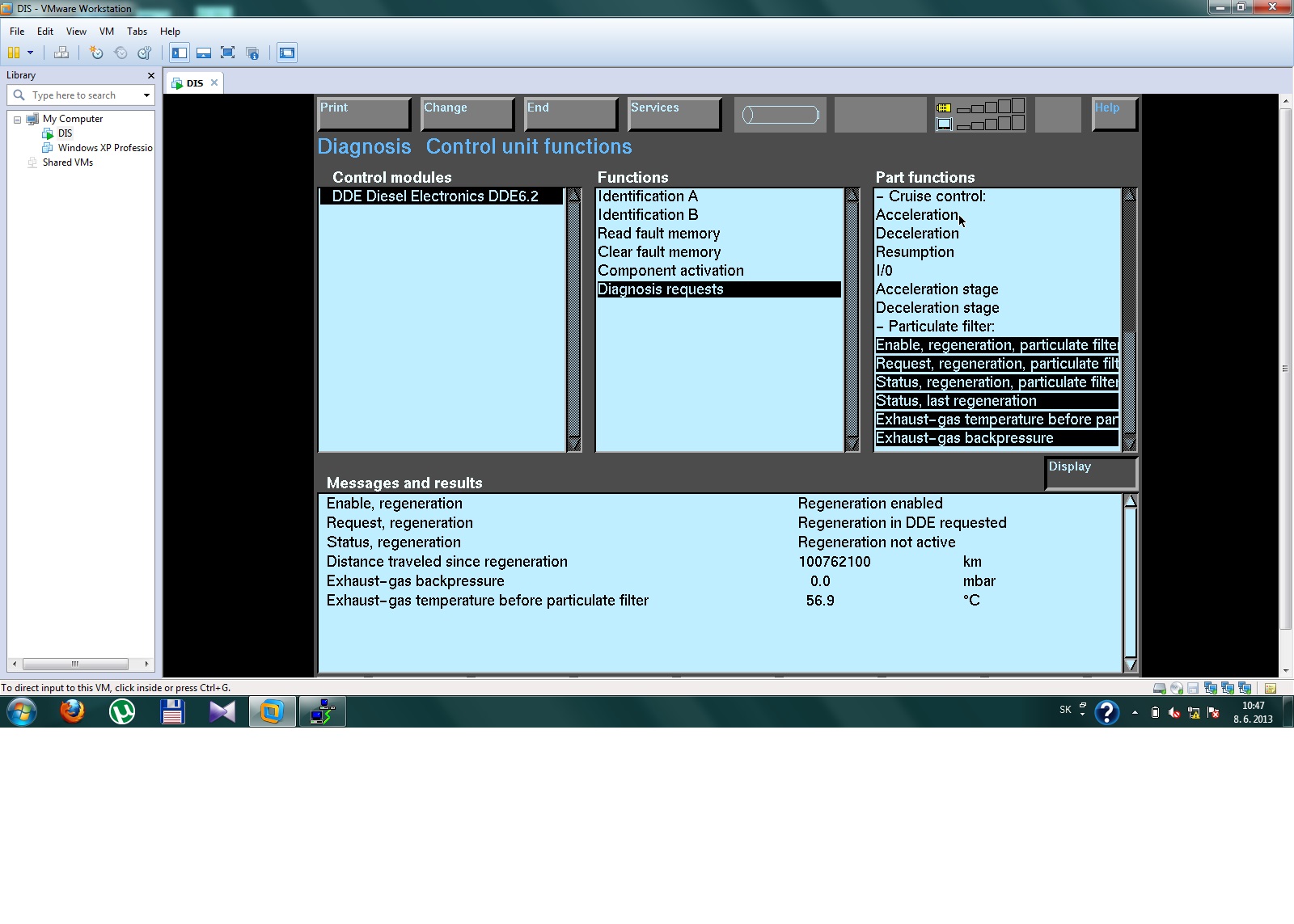 Takze VIF uz pouzivam, najskor velmi dobra skusenost po ceste BA-TN spotreba 5,5 (taku som snad este ani nevidel :D ) neskor sa to zhorsilo, ale pripisujem to skor vadnym termostatom (teplota iba okolo 80 stupnov, nove termostaty uz na ceste). Zaujimavu vec som vsak na dlhsej trase spozoroval, zdalo sa mi ako keby sa regeneracia spustala nejako pricasto. Pri 700km trase som zbadal 2 krat ze bola spustena, aspon vsetky symptomy tomu nasvedcovali (odrazu zvysena spotreba, kolisanie aktualnej spotreby pri rovnomernej jazde, po chvili opat vsetko normalne...), tak neviem ci je niekde chyba alebo je to normalne (mal som uz naliaty VIF). Dnes som siel pozriet s DISom tlaky, tak oproti minulemu meraniu podstatne lepsie (pri idle iba 4,9-5,9 a pri 2000rpm 18,9), cize DPF je pekne priechodne. Stale mi tam svieti "Regeneration in DDE requested" a pamatam sa ked som este davno meral tlaky, ktore boli podobne tymto, svietilo tam "not requested", preto mi je to zvlastne...Prikladam aj screenshot, kde je zobrazena hodnota prejdenych km od regeneracie a vsimol som si, ze ta hodnota aj ked auto stoji a je nastartovane, lieta ako sa jej zachce :)