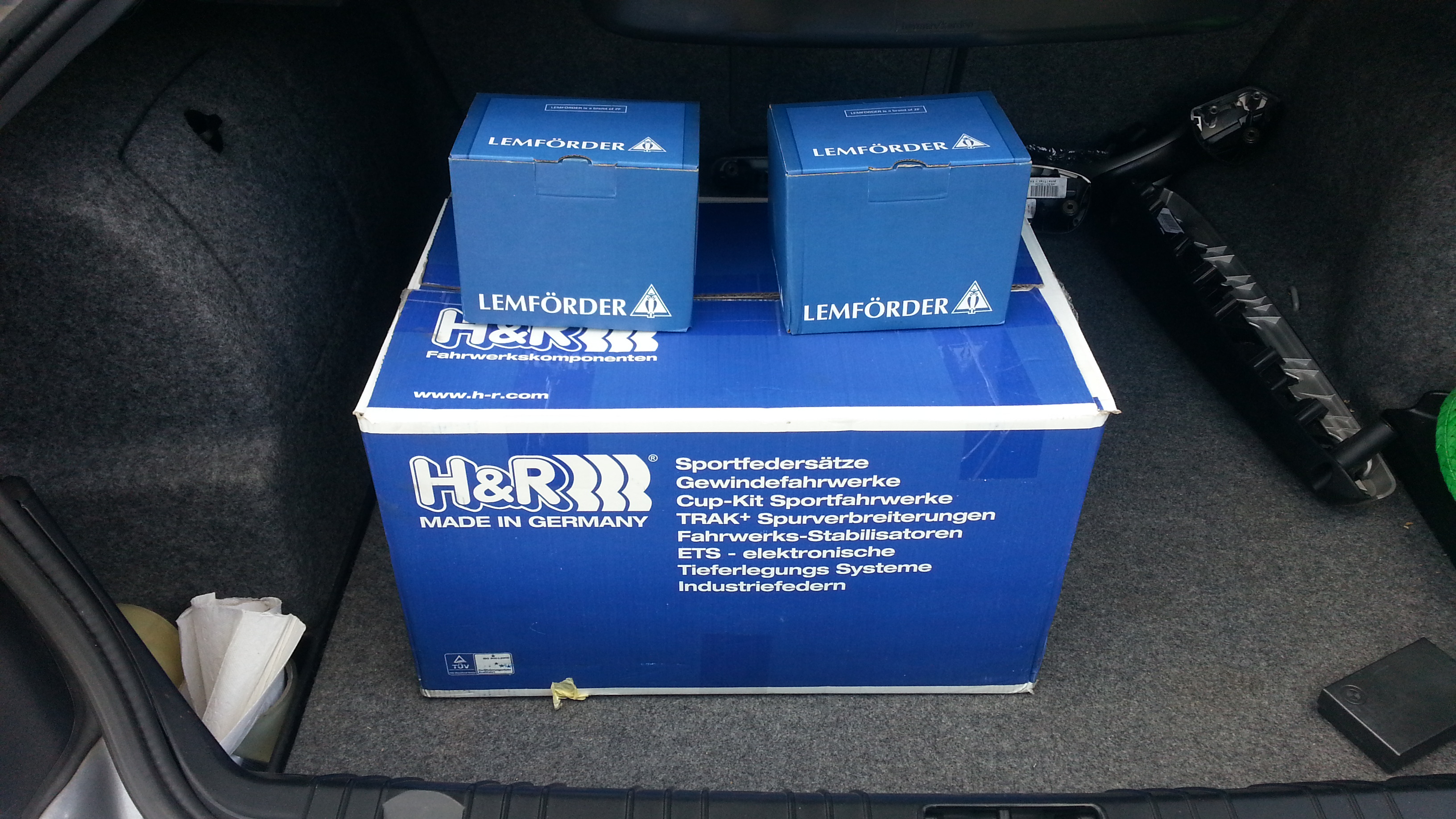 Čo pribudlo nové tak to sú pružinky H&R 55/35mm zníženie. Špekuloval som nad tým dlho, nakoniec som chcel aj štelovák, ale padli mi do oka tieto, tak som ich zobral.