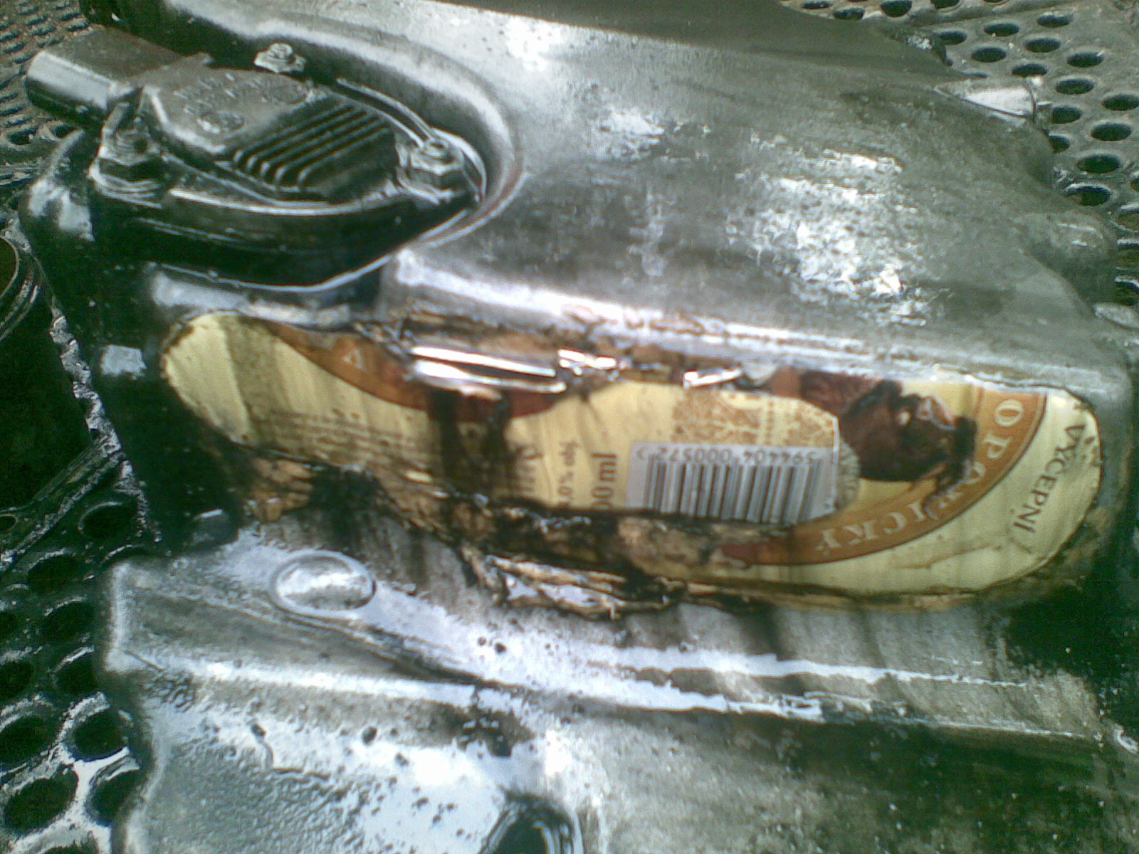 Aj takýmto spôsobom sa dá zalepiť (Velkopopovickým kozlom) prasknutá olejová vaňa na E46 touring 2.0d 110kW.