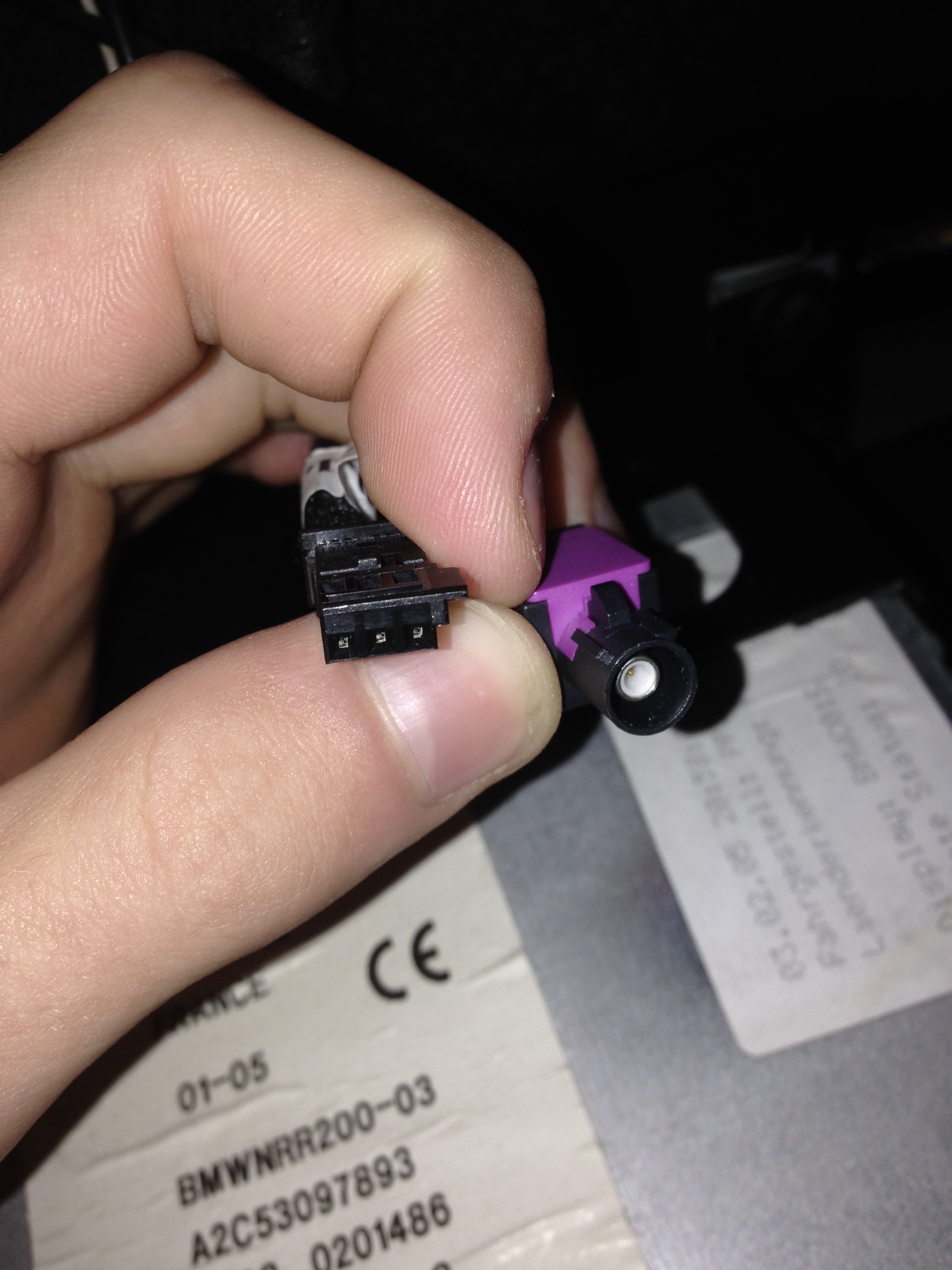 mám E46 individual s rádiom 16:9, v kufri mám len DVD navigáciu, chcel by som CD menič alebo AUX pozeral som a našiel som v kufri pri navigácii 2 káble, ten koaxial mi príde ako anténa na TV modul ale ten druhý neviem, má červený, červeno-žltý a v strede hnedý drôt... K čomu by mohol byť ten 3Pin? Obrázok pripájam...