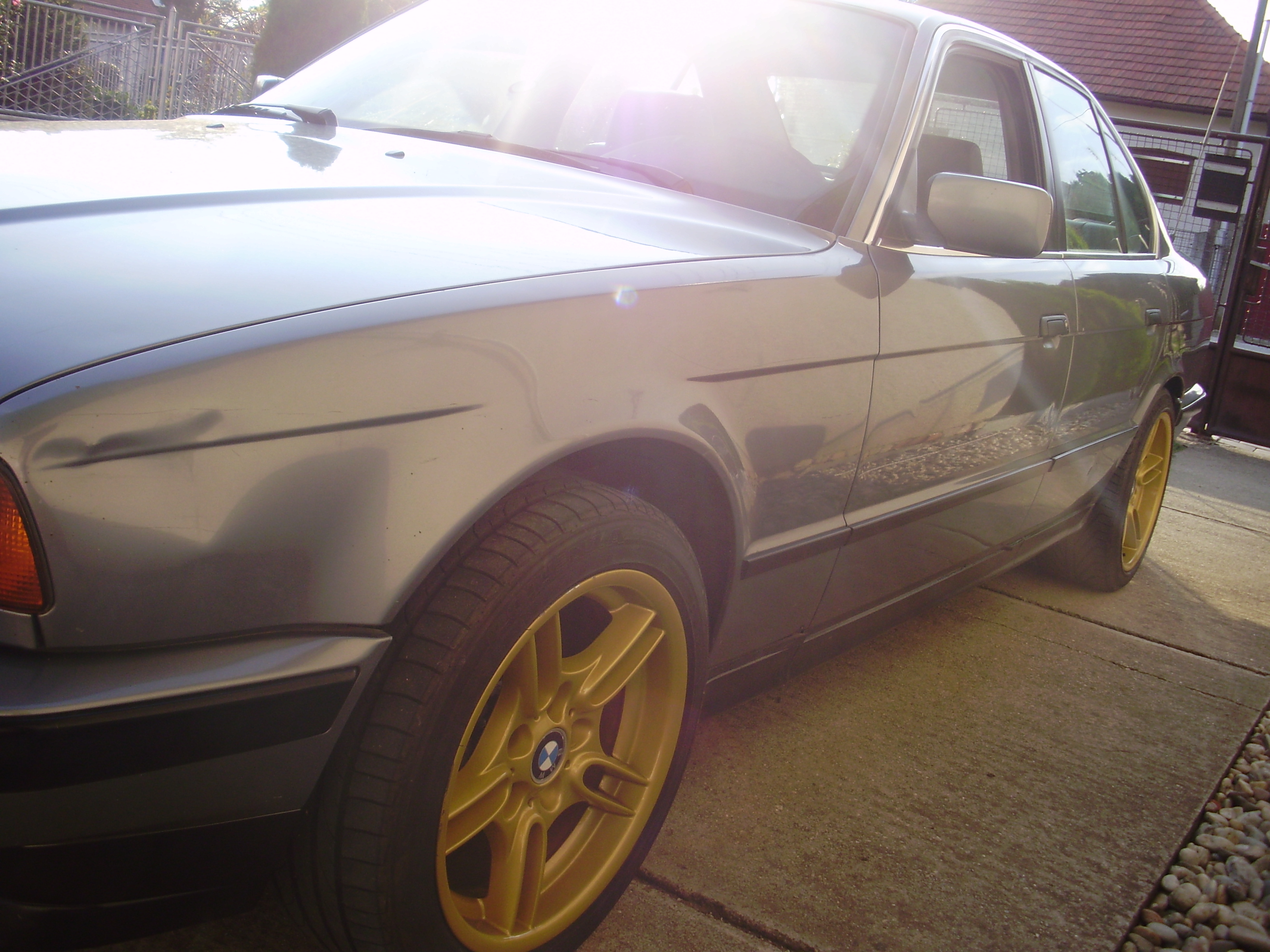 Po najväčšom omyle od audi som si zaobstaral znovu e34ku. Tentokrát je to benzín V8, keď som ho doniesol bolo dosť zlom stave. Auto stálo necelý rok iba sem tam bolo naštartované. Na prednej a zadnej náprave búchalo pár veci čo som dal vymeniť a jazda bola hneď krajšia. Vzadu sú obe struny prasknuté tak som zohnal komplet tlmiče,struny a keď to mechanik išiel meniť tak tlmiče boli o niekoľko cm dlhšie ako origo takže zatiaľ jazdím na tom čo tam je a neskôr pribudne dúfam nieaký lepší možno aj staviteľný podvozok. Kolesá som kúpil style 66 vpredu 8J 225/45/17 vzadu 9J 245/40/17.