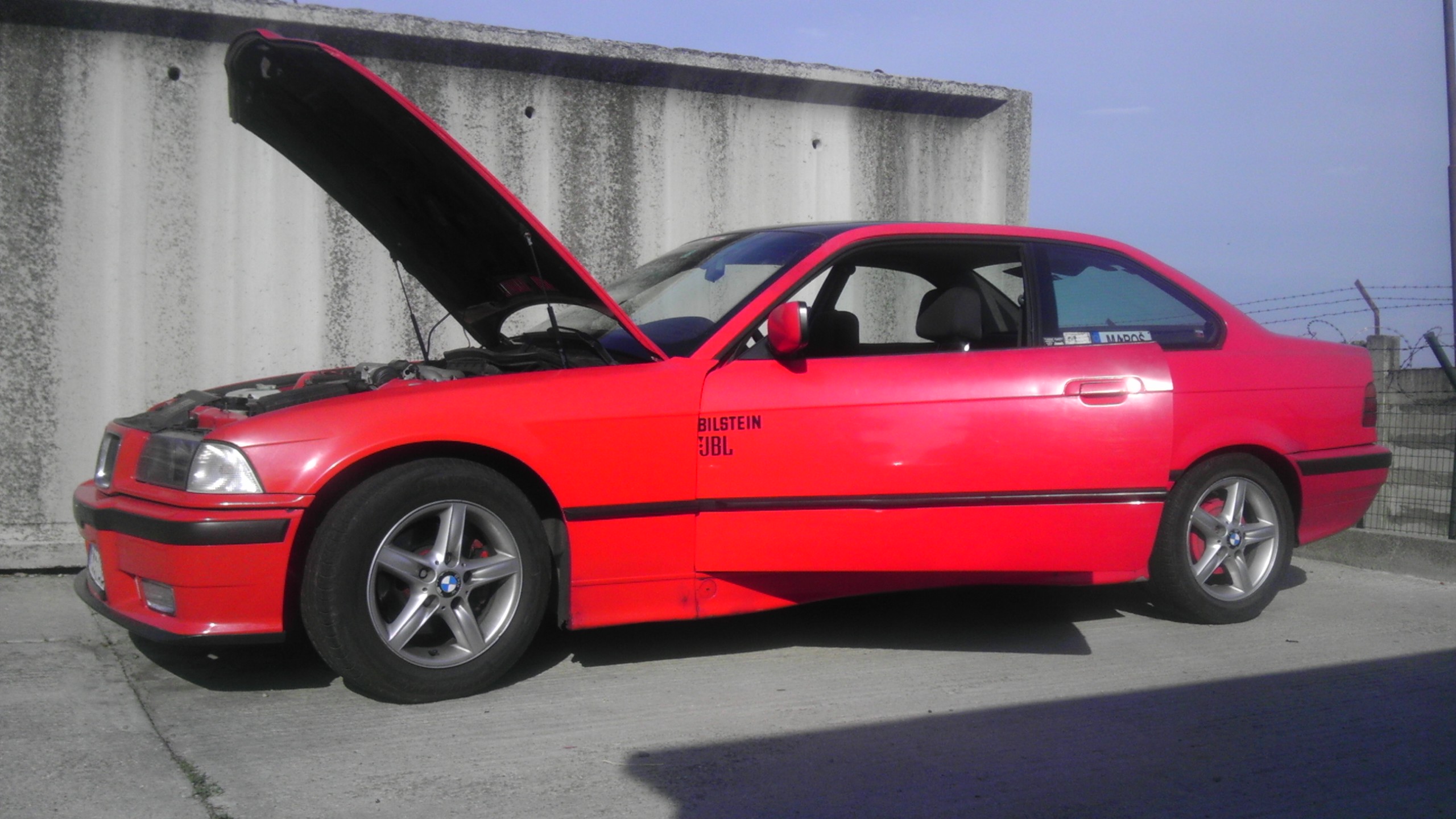 .. nakoniec to vyzeralo ze si kupim opel calibru 2.0 8v a mal som aj nejaku vyhliadnutu, ale chvala bohu ze kamarat ktory byva nedaleko ma od nej odhovoril..:)..vo februari som kukal autobazar a nasiel som tam peknu E36 coupe za 1700e...zatial som to neriesil ale ked o tyzden bola za 1500e nevahal som a musel som si ju pozriet..tak sme sa dohodli (bola uz na NR znackach) a stretli, povozil som sa, a bolo to fajn...len skoda ze som vtedy nemal tolko prachov. tak ako spravny blbec som zacal vsetky nepotrebne veci predavat..:)..a nakoniec som ho aj kupil. 10 marca som si ho prepisal a je moj..