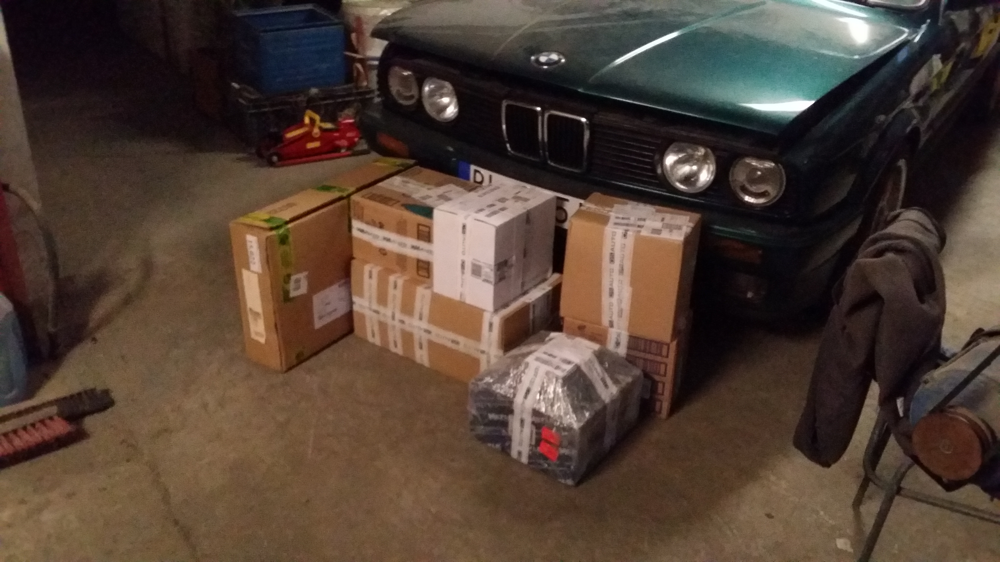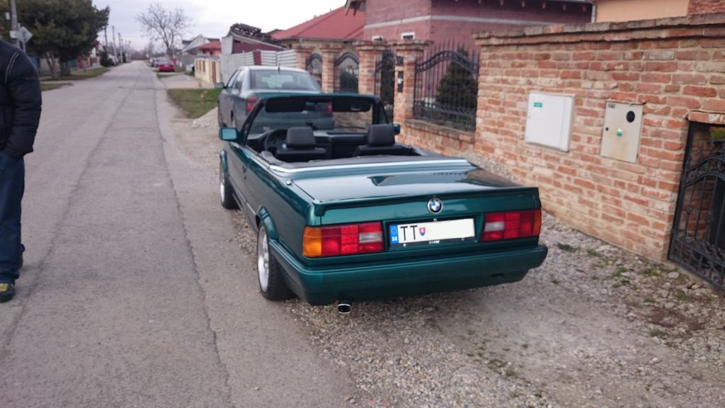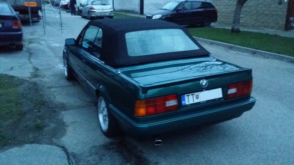 Navyse majitel mal hned vedla 540i a razom bol aj poradca v oblakoch. Nazivo to auto nejak zacalo davat zmysel. Farbu fotky dost skreslili, in real je nadherna. Bol robeny celolak pred par rokmi. Aj kolecka sa nazivo pochlapili a vynikol decentny limec. Ze je to 1,8? Co uz, aspon sa mozem vozit castejsie ako v sobotu poobede. A nahodou to vobec nejde zle. Podvozok je drasticky znizeny a staru cestu TT-BA som si "uzil" naplno. Intros je v ciernej kozi a je zachovaly, M volant, sportove sedane. Strecha je ako nova, tmava a pruzna. Jedine ten igelitovy priezor to ma za sebou, je zozltnuty a kde tu prasknuty (ak poznate niekoho kto to vie presit, ocenim radu). V podstate ani viac neviem. Tricka uz je zazimovana v garazi a dalsia jazda sa kona na jar. Celkovo som spokojny a velmi sa tesim na prve teple dni