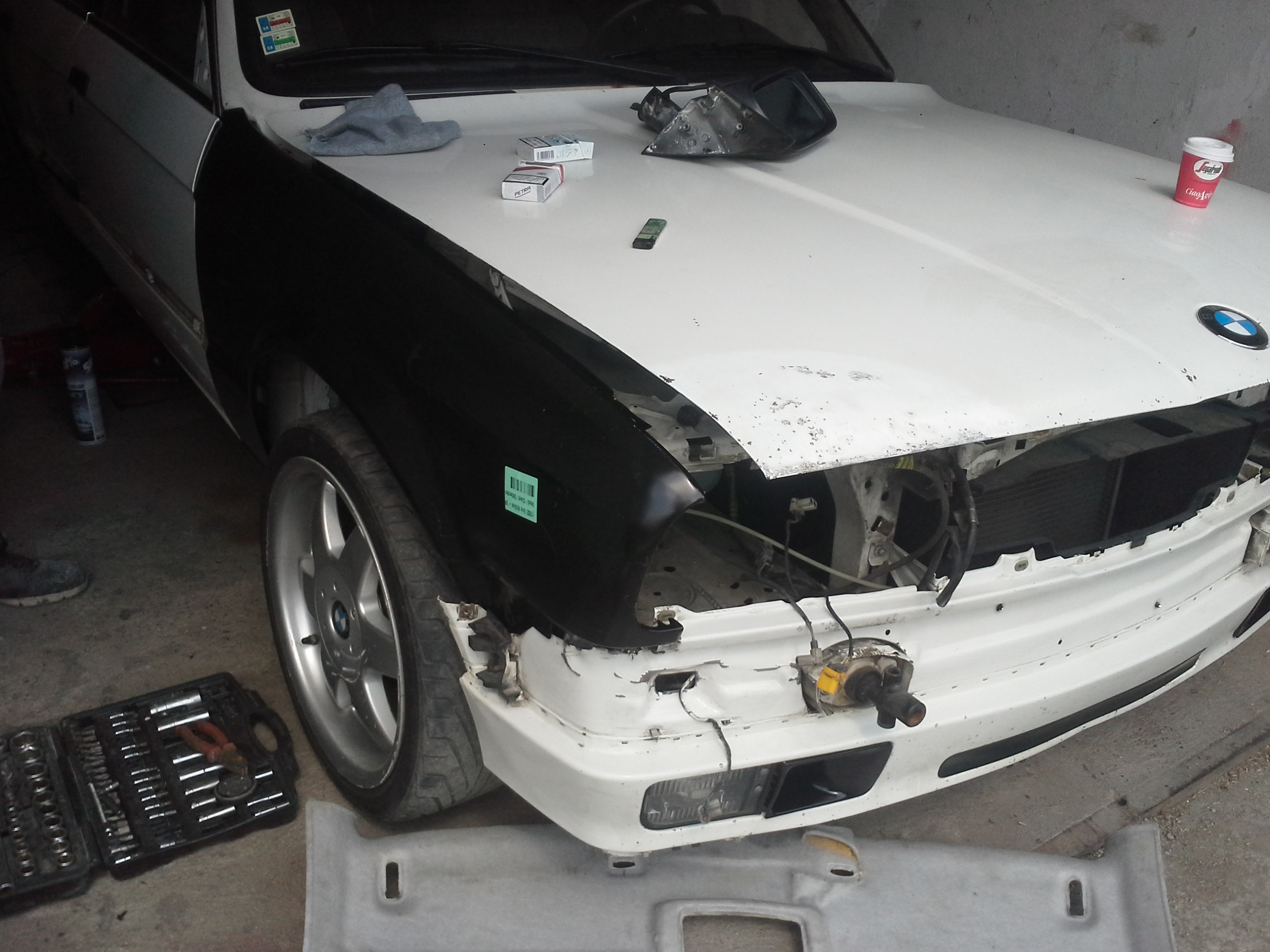 Dnes sme daco urobili a daco dodrbali...perinky na motore a prevodovke vymenene a pri skusobnej jazde nam pri mensom drifte sa uvolnolo koleso a odletello...takze vytrhlo komplet blatnik a scuchalo kotuc ale je to zjazdne...perepuťa sama...a naboje bude treba obe predne :/