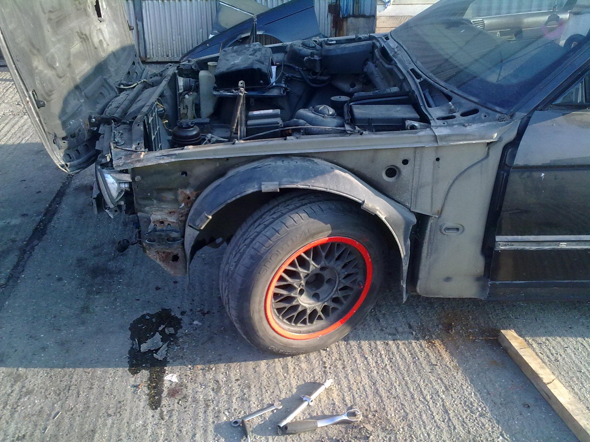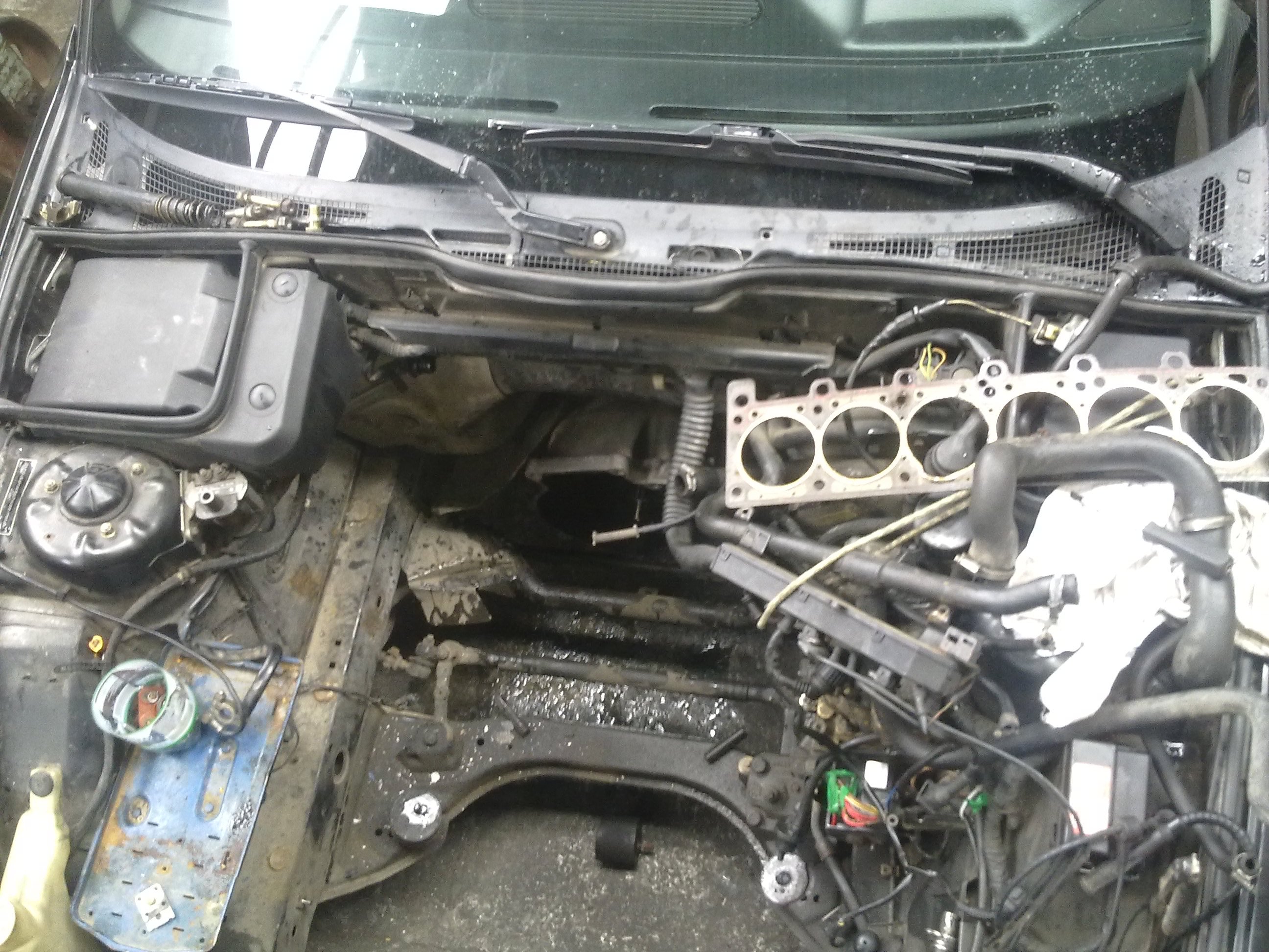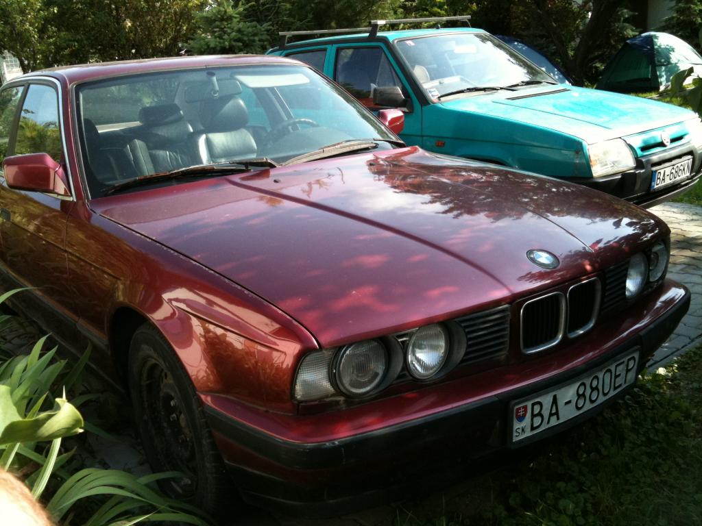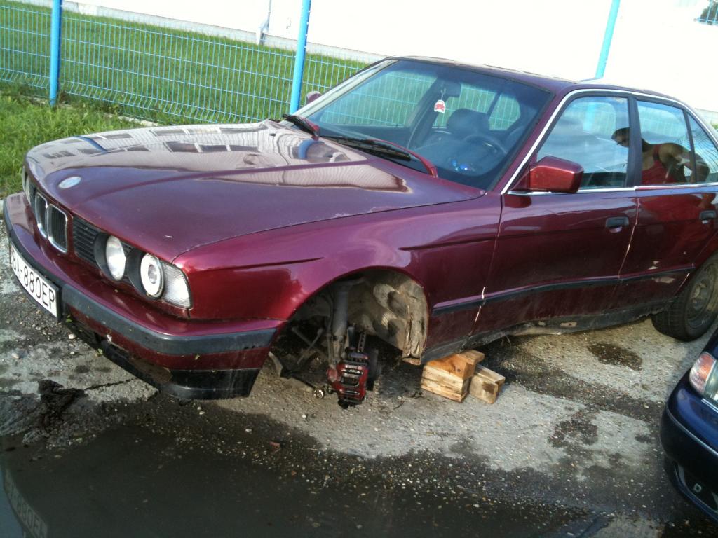 Tuto e34 som kupil za 500e bez papierov s tim ze ma odtrhuty zaves lp kolesa olejovu vanu odseknutu bolo to jedneho majitela ktori sa o neho celkom dobre staral a predal ho niekomu do rodiny tiez vaznemu fanusikovy e34riek a ten ho pourival ako firemne auto pre jeho robosov a ti mu ho hopsli do priekopi a neoplatilo sa mu to opravovat.Casom som prisiel na to ze to ma odtrhnute drziaky motora spominanu vanu cerpadlo oleja.Vanu som kupil od baggo za 80e Cerpadlo od norika za 20e drziaky za 15e.