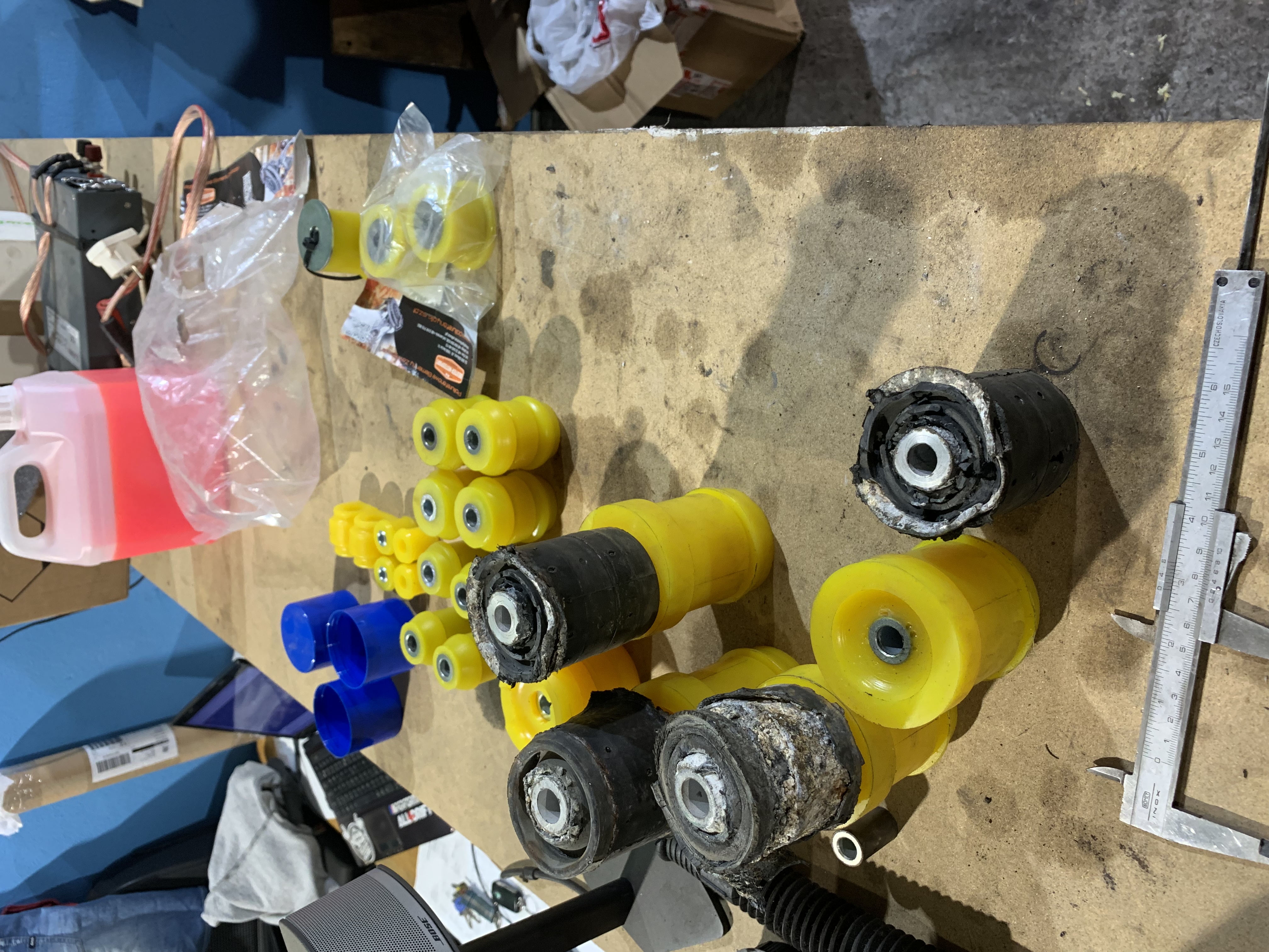 Zadná nápravnica klasicky nesklamala pár šrobov sa polamalo, všetky hrdzavé miesta na karosérii sa poopravovali išla podstivo dolu aj nádrž..... spodné ramená som hneď dal nastaviteľné aby mi gumy nešlahalo len zvnútra ako to je u bmw zvykom :D diferák som zatiaľ nechal pôvodný maly obal len sa zavaril s pomerom 3:45