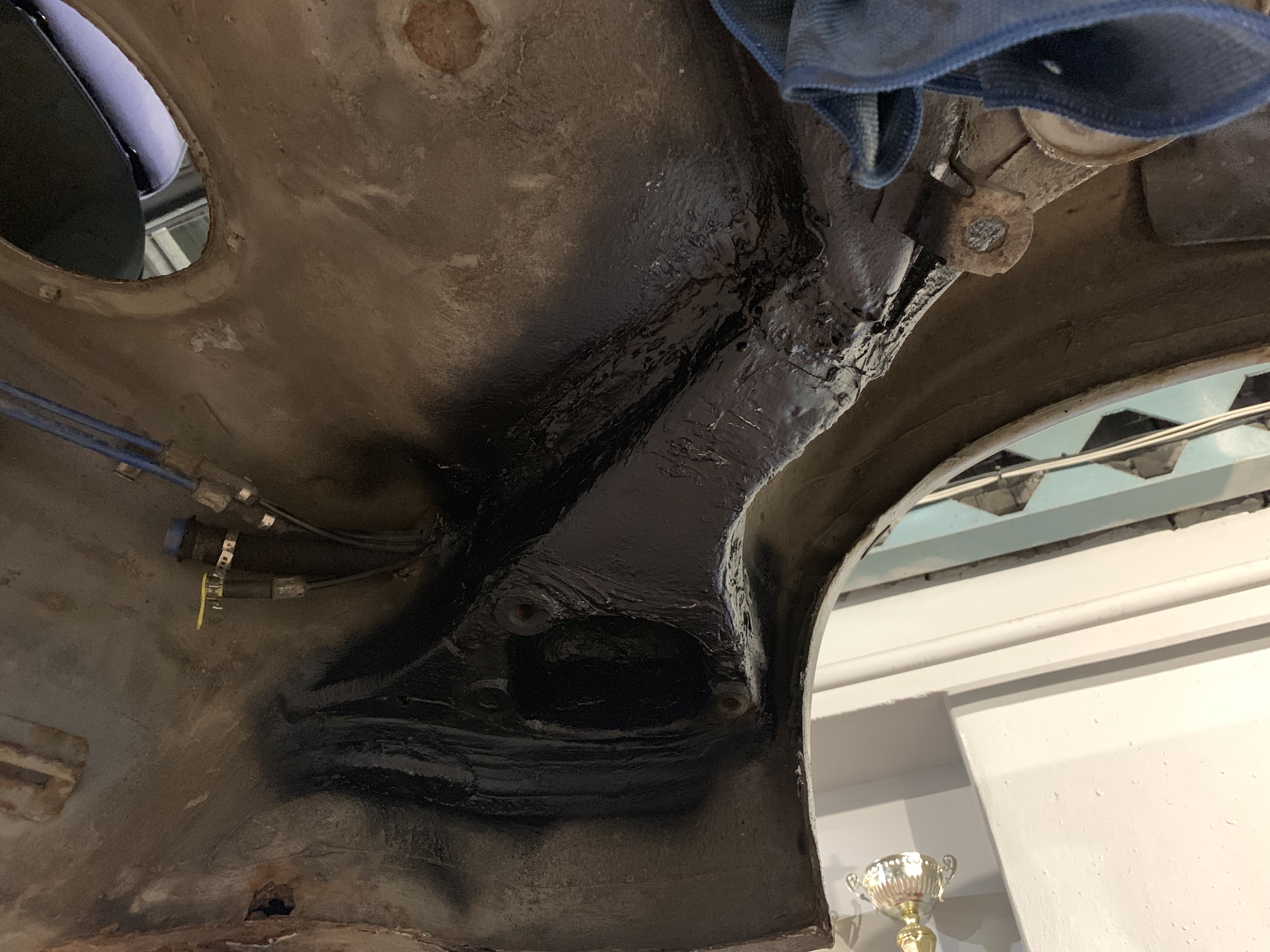 Napravnicu som dal opieskovať aby som videl či nie je niekde poškodená ale mala iba povrchovú hrdzu tak sa nafarbila aj s ostatnými dielami