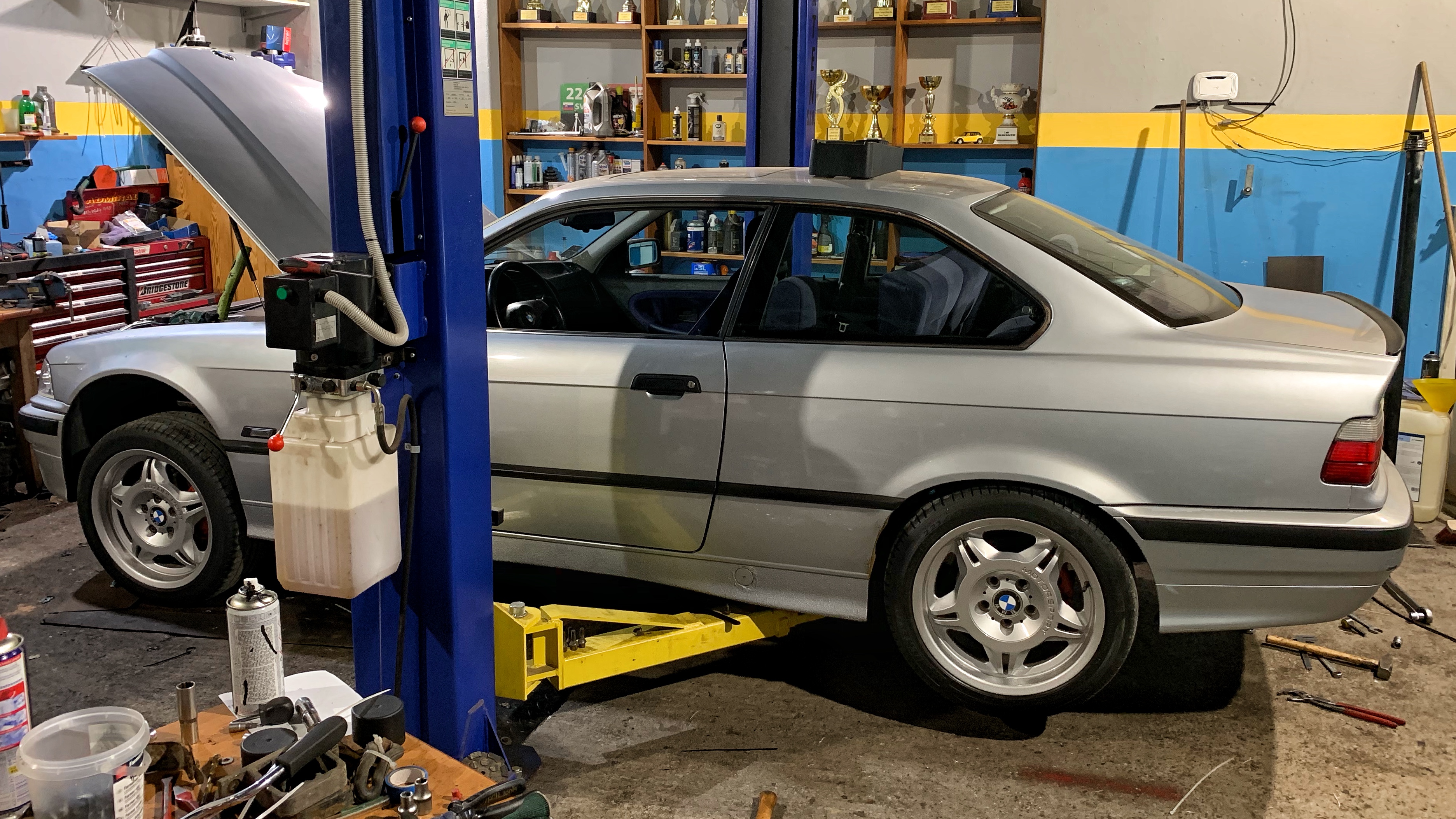 Bude treba auto vyrámovať, pôjde celopolep, kardan mám momentálne prednú časť z 328i pretože z nej je aj prevodovka, zadná časť je pôvodná z 318i pretože mám maly diff a malé poloosy ktoré takisto pôjdu za veľké.