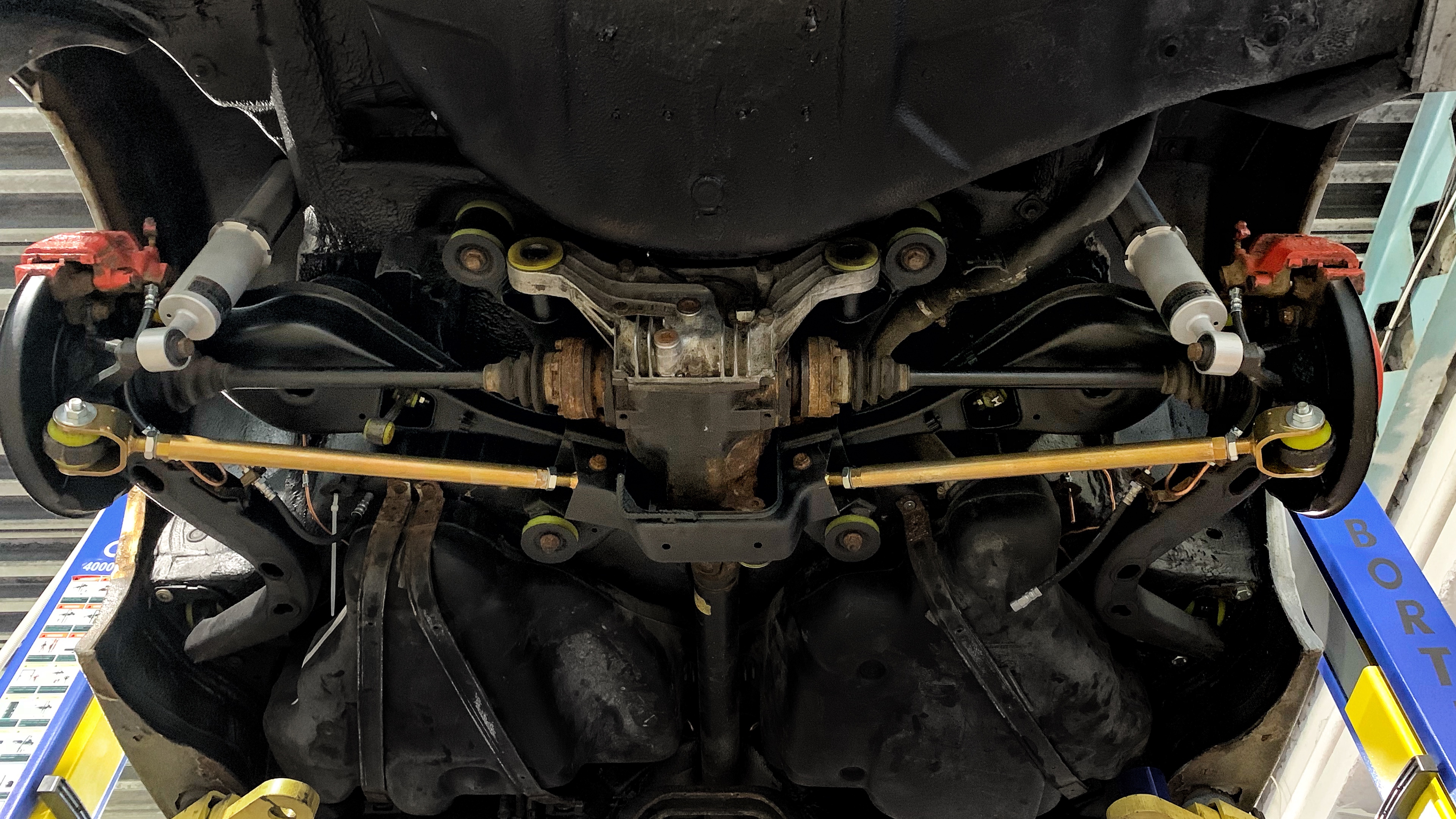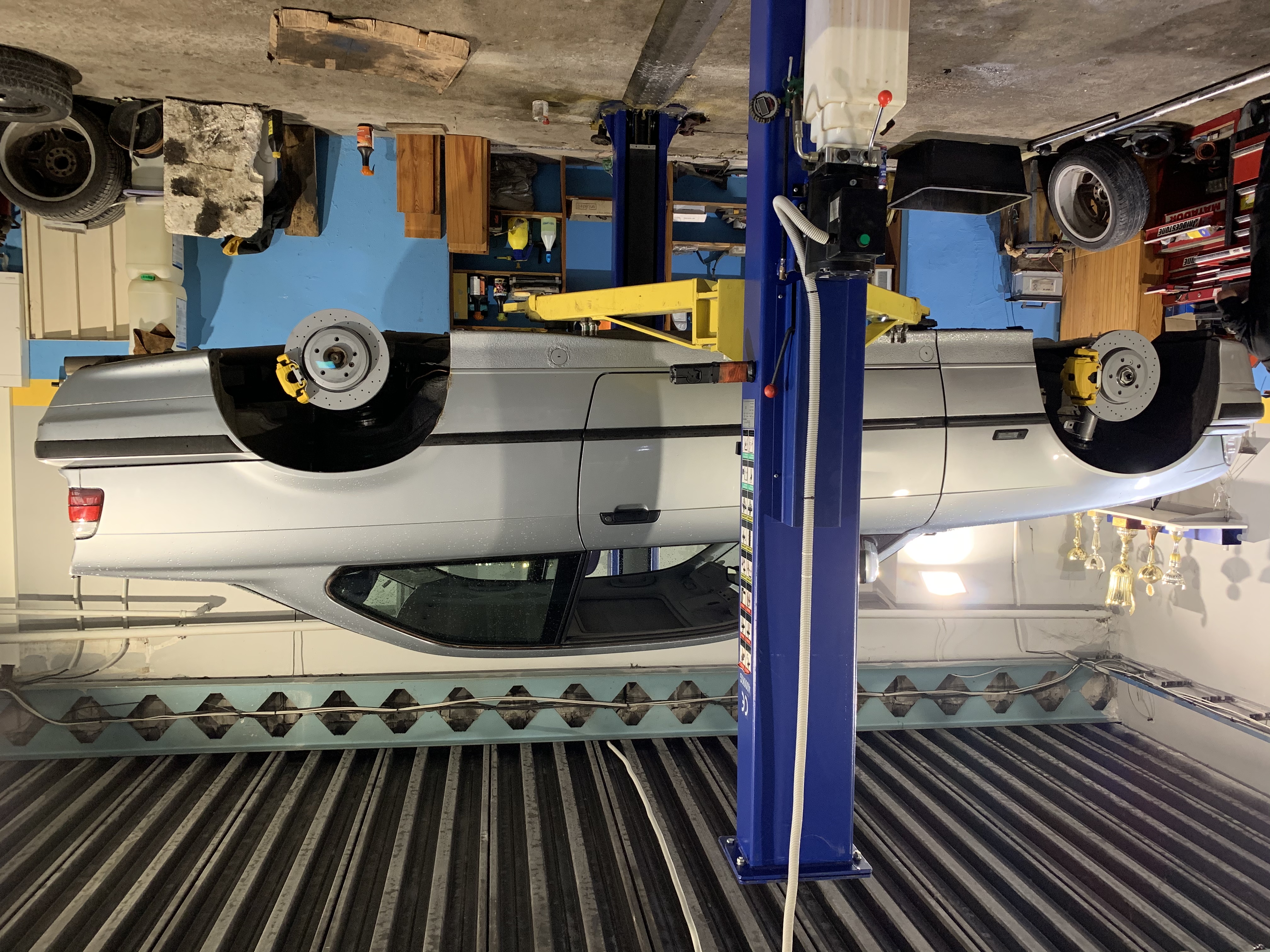 Auto som hneď po kúpe šupol do dielne aby som sa na zdvihaku presvedčil o jeho kvalitách :D tu sú fotky ešte po vyčistení pretože cestou pršalo asi blato :D plán bol jasný tak som hneď objednal strongflex komplet na prednú aj zadnú nápravu, adaptéry na väčší rajd, MAXPEEDINGRODS podvozok aby som mohol hneď niečo začať robiť