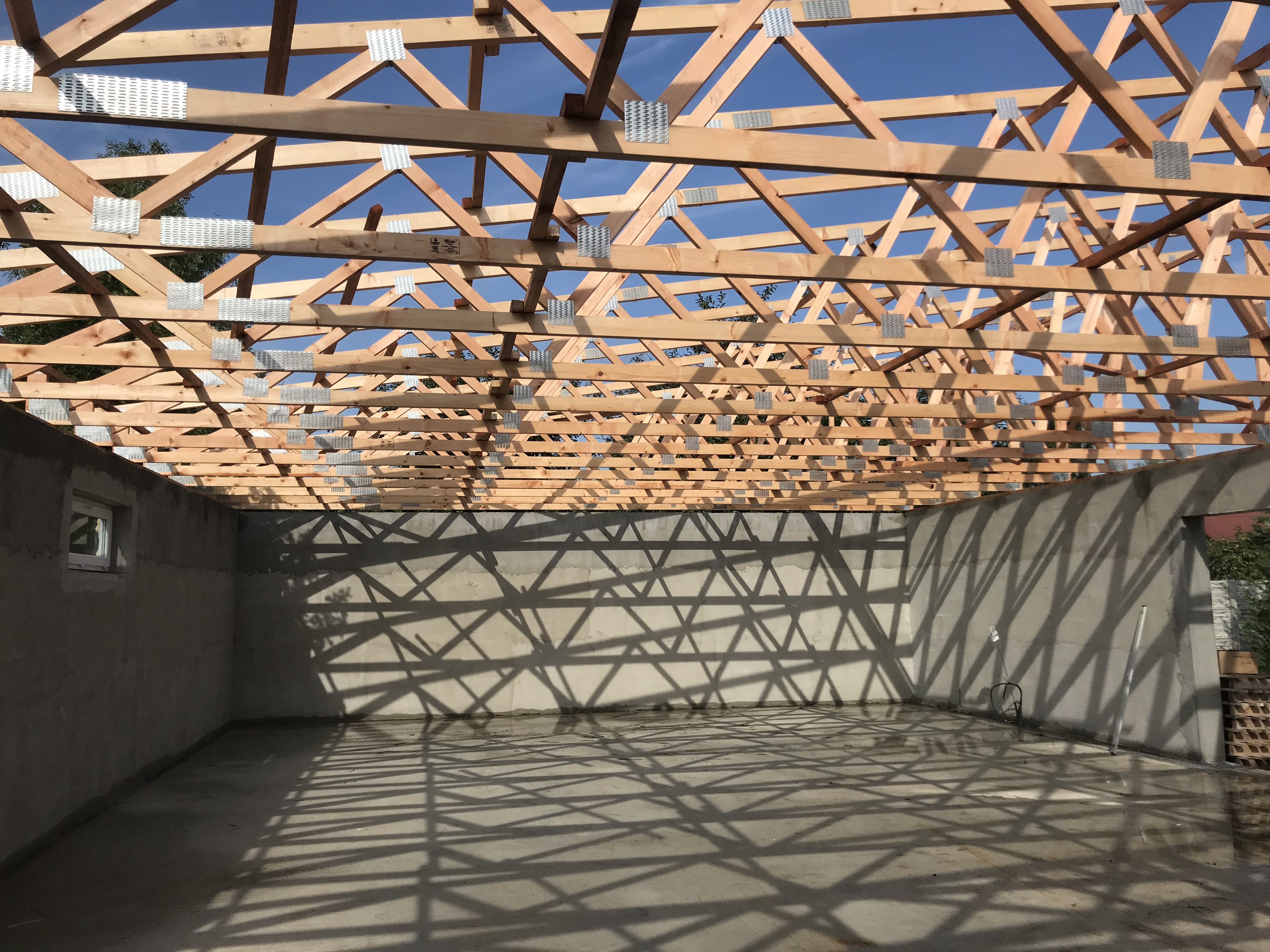 takze cisty rozmer stavby je 16x10m, vnutorny teda pouzitelny rozmer je 15.5x9.5m a pouzitelny rozmer na vysku bude skoro 3m, nad tym uz je vaznik.