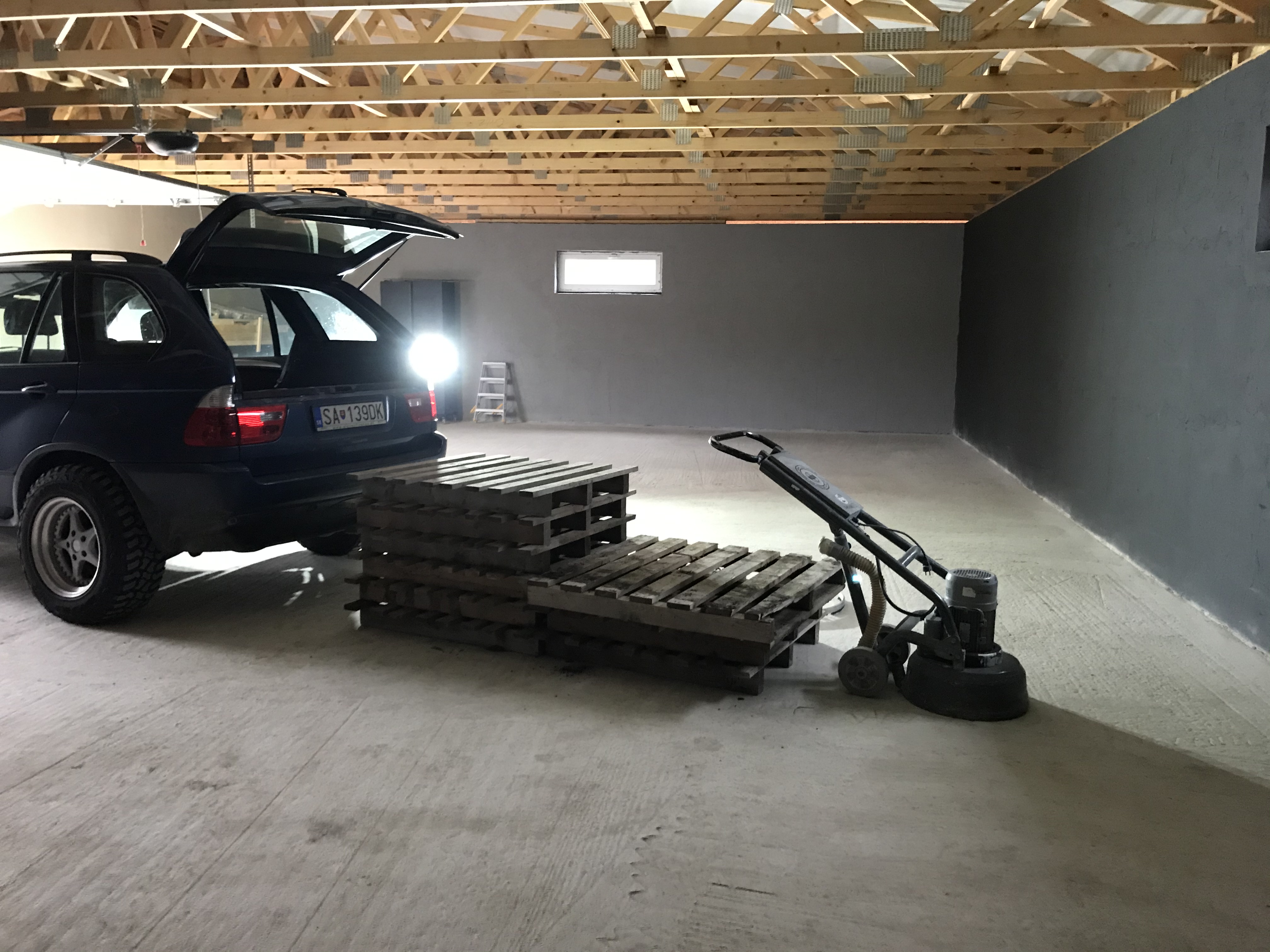 na tej prednej mensej je vidiet aj ten ocelovy ram, ktory vyrobili a donho namontovali branu, tym padom som ziskal na dlzku minimalne 20 cisel v garazi, takze sa tam vleze aj 5 metrova X5 (ktora nema ani celych 5m), takze fakt super