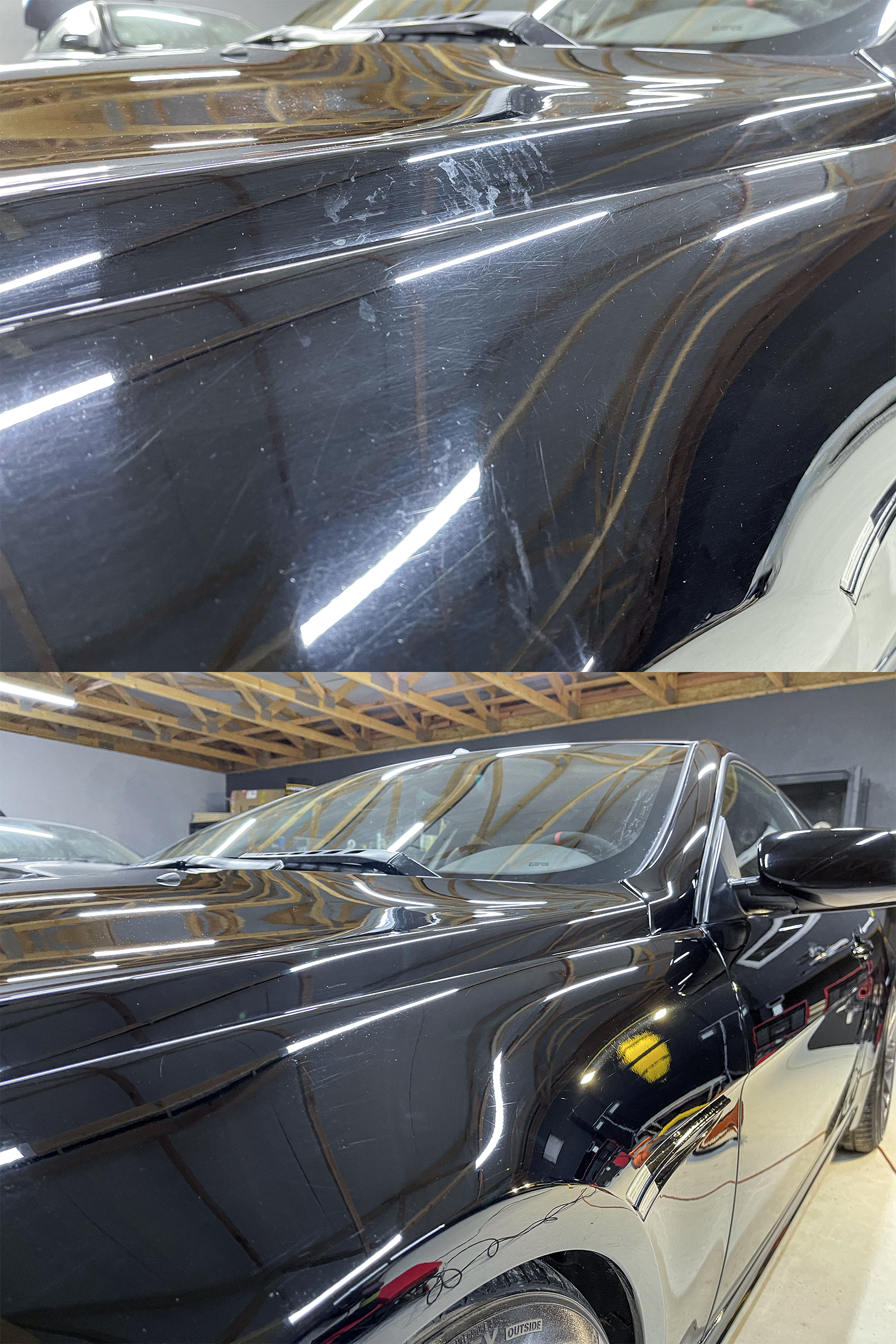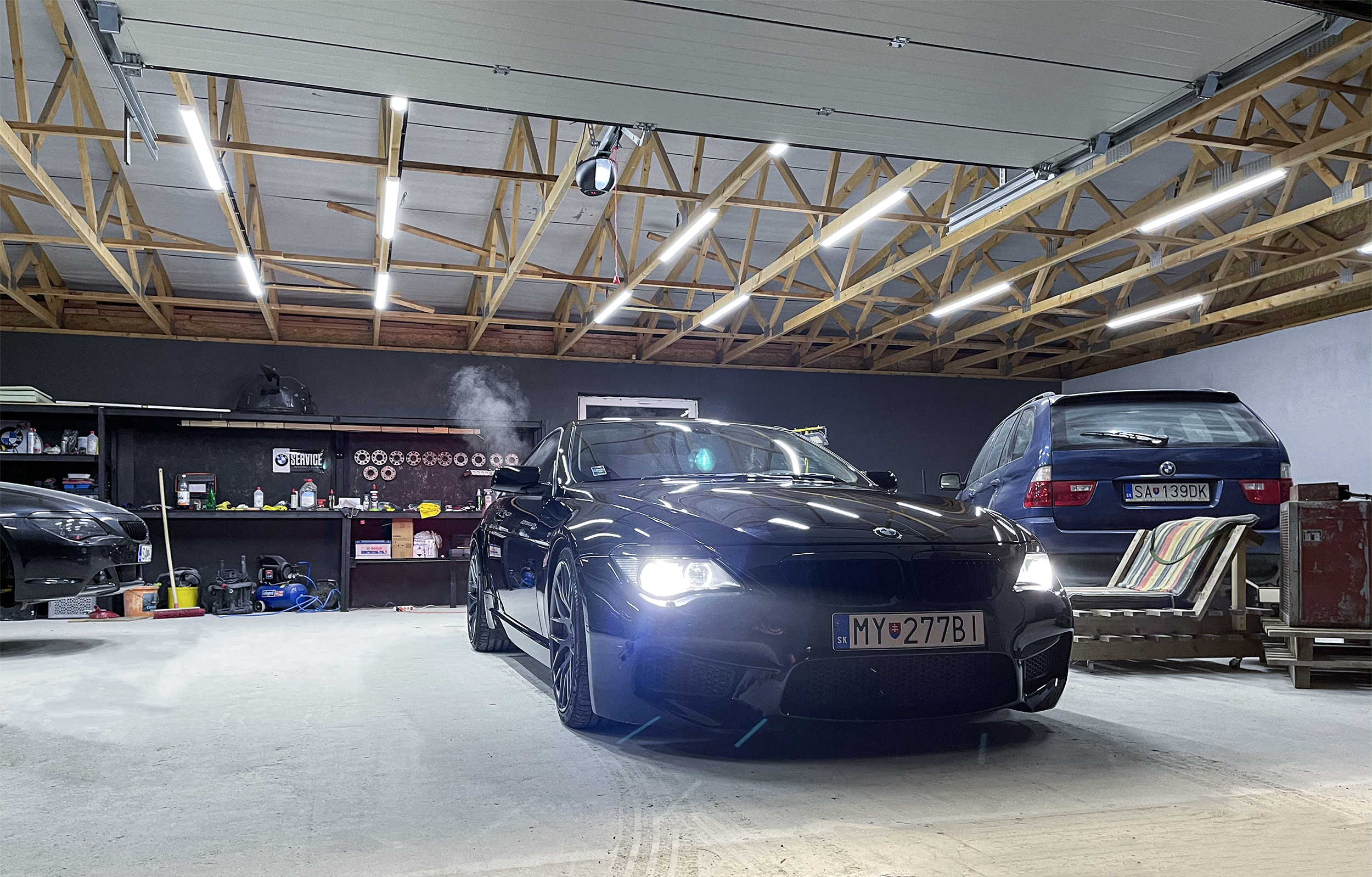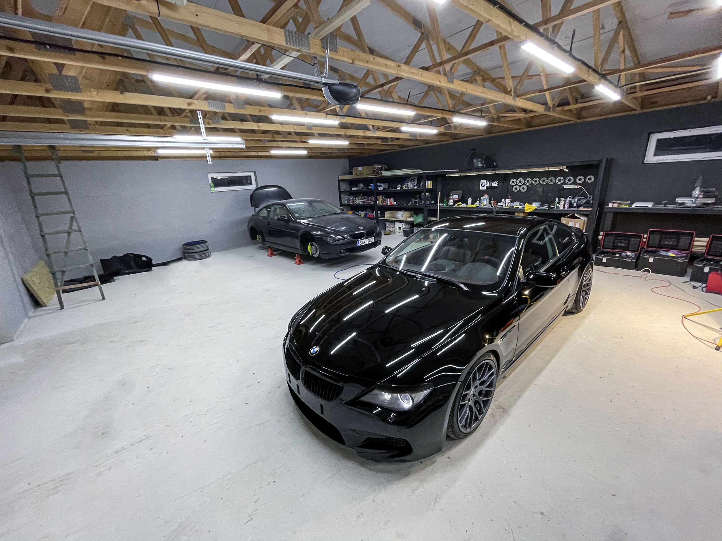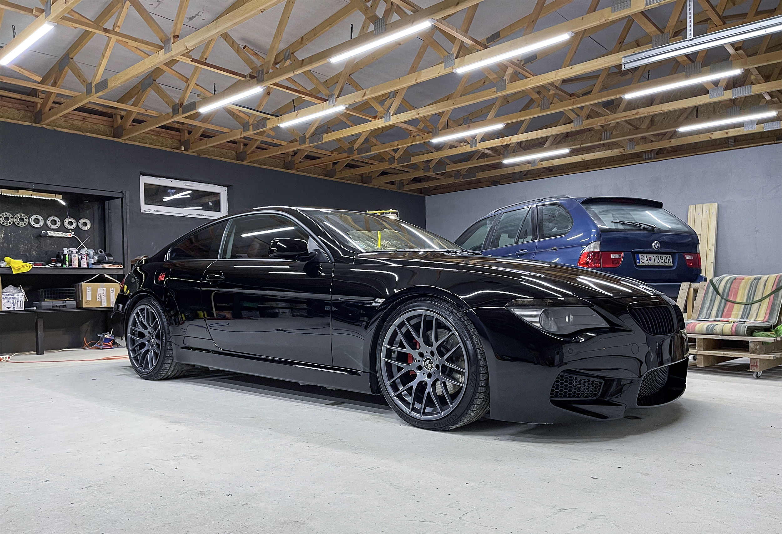 prvy projekt na detailing bola kamosova E63 650i, kupil odomna narazniky davnejsie, a vela z vas bude happy, ano, dal ich nalakovat do ciernej lesklej.. lak bol fakt v zufalom stave na celom aute, ma za sebou celolak, ale neviem preco ti co to robili sa rozhodli ze tam daju absolutne najhorsiu farbu na svete, ciernu bez metalizy a ako bonus to bolo aj prebrusene, takze ziadny pomaranc na laku, takze to bol hlavny dovod preco to tak vyzeralo. a bol to aj dovod preco po dokonceni to nevyzeralo uplne extremne krutoprisne, ale stale tam ostali nejake skrabance a hologramy. proste mal som na to ledva jeden den, ani tolko, lebo o 9:15 som zacal umyvat, potom clay, a kym som zacal lestit tak bolo 11 hodin, koncil som pred 9tou vecer.. ten lak ale potrebuje tak 2-3 plne dni roboty, ale dalo by sa to vychytat uplne, skoro vsetko. otazne je ci to ma zmysel, lebo po jednom umyti by boli hologramy naspat