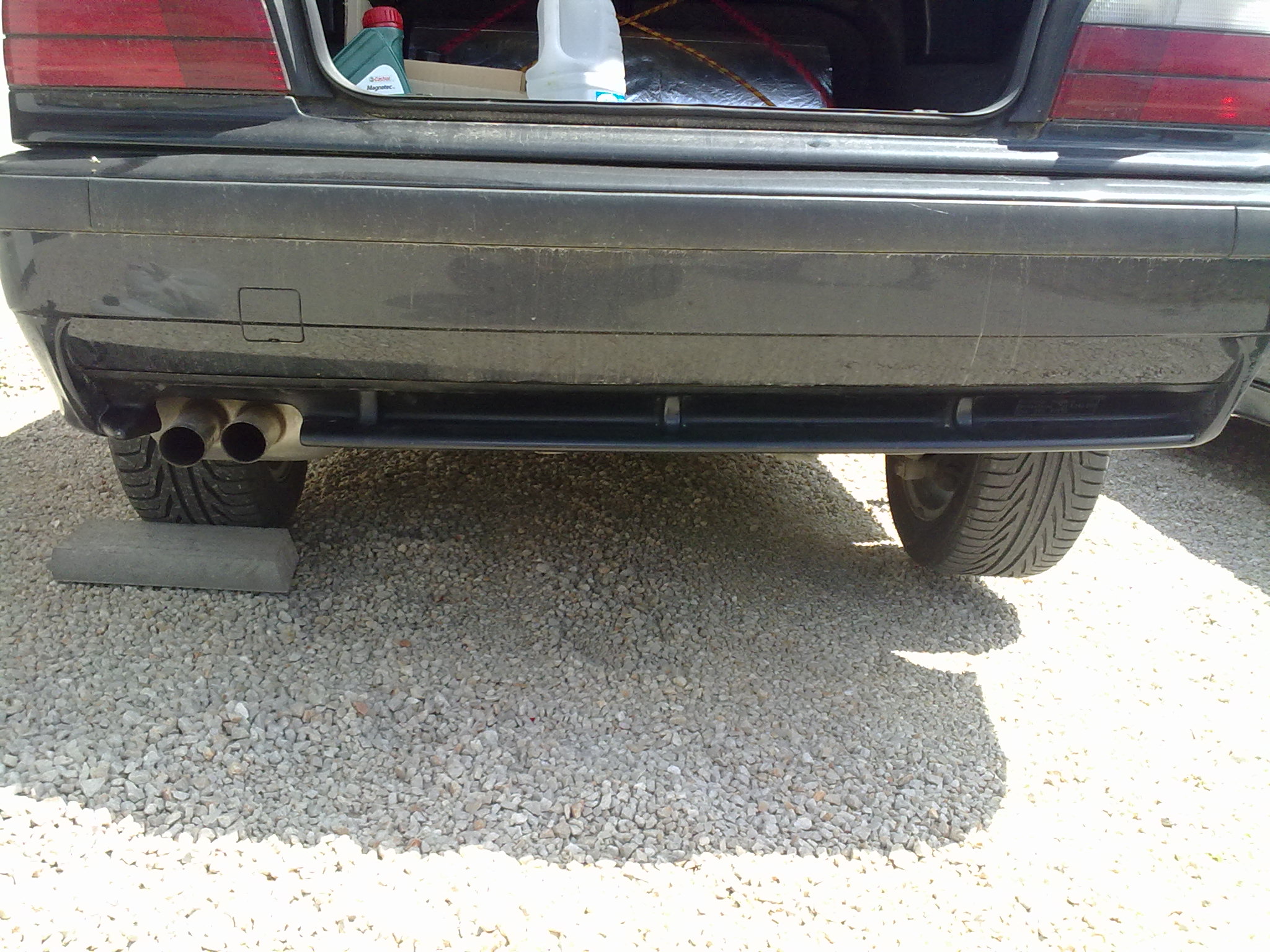 tak dnes sa porobili dalšie malinke úpravy spolu z montovaním AE pre StreetSpirita ... Výfuk z 328 .. upravena diera v difuzory na 2rulu, nahodene bočne biele smerovky.... najbližšie (August) ma čaka výmena serioveho podvozku za Bilstein B10 ...