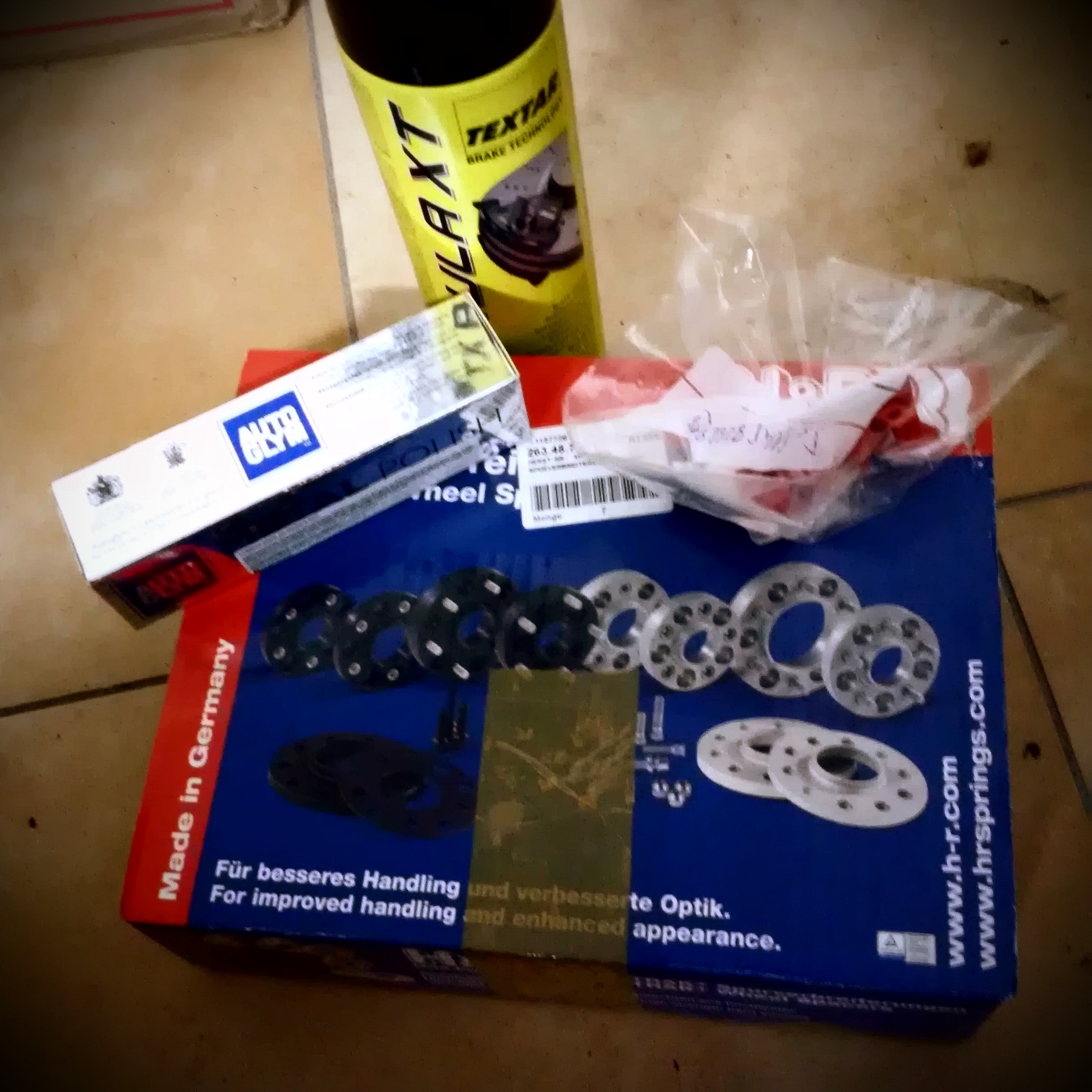 Odklony a ramena nahodene, plus prisli mi podlozky HR 20 mm, textar cistic brzd, kocky do list v palubovke a lestiaca pasta autoglym. 15 mm podlozky som dostal od Flasha, ktory mi zaroven menil odklony a olej (shell). Plus este puklicky od klubaka z bmwbazaru nove. Predne kola tam su spolu s brzdami len na chlp takze v zime budem musiet byt sakra opatrny