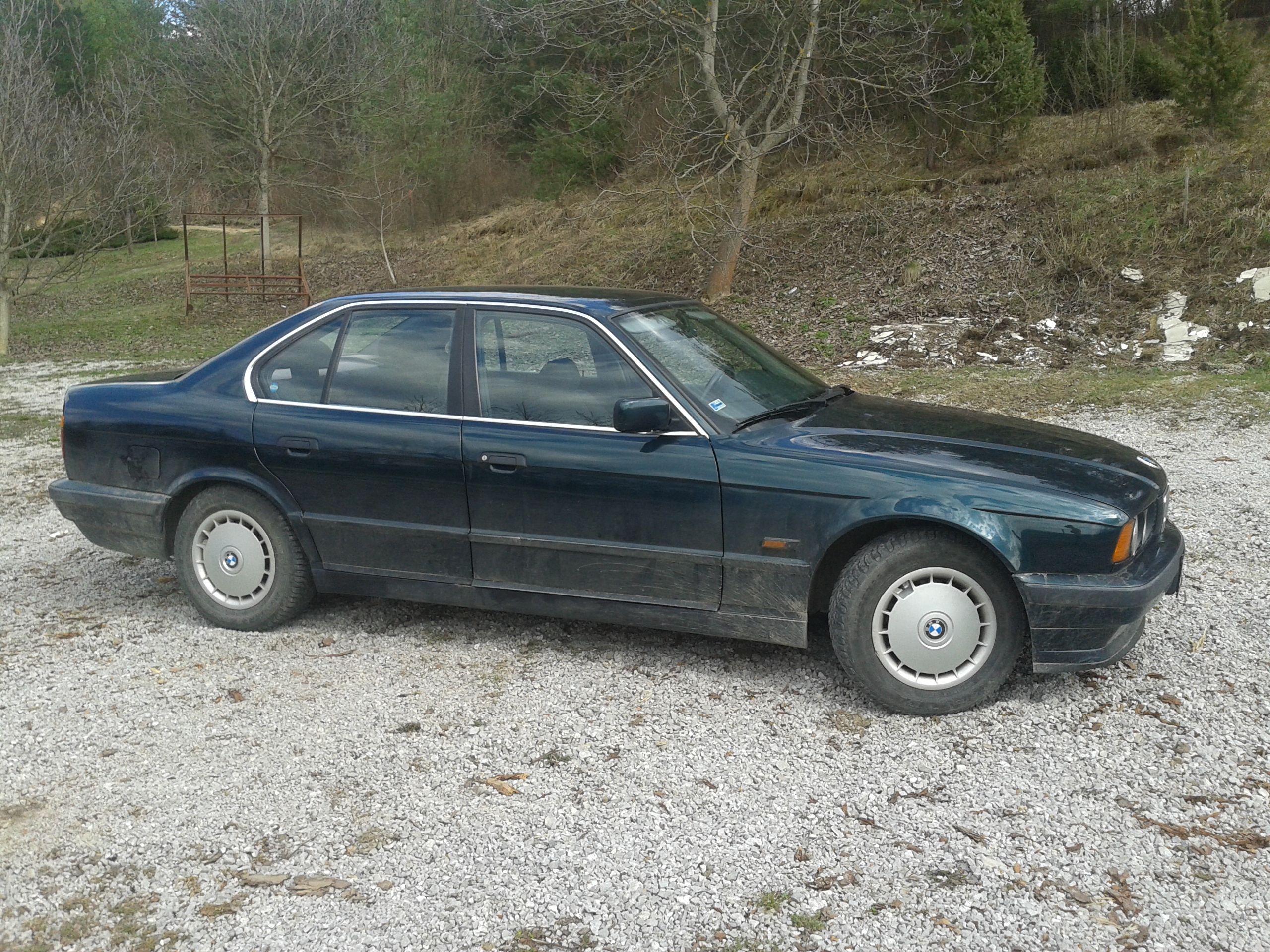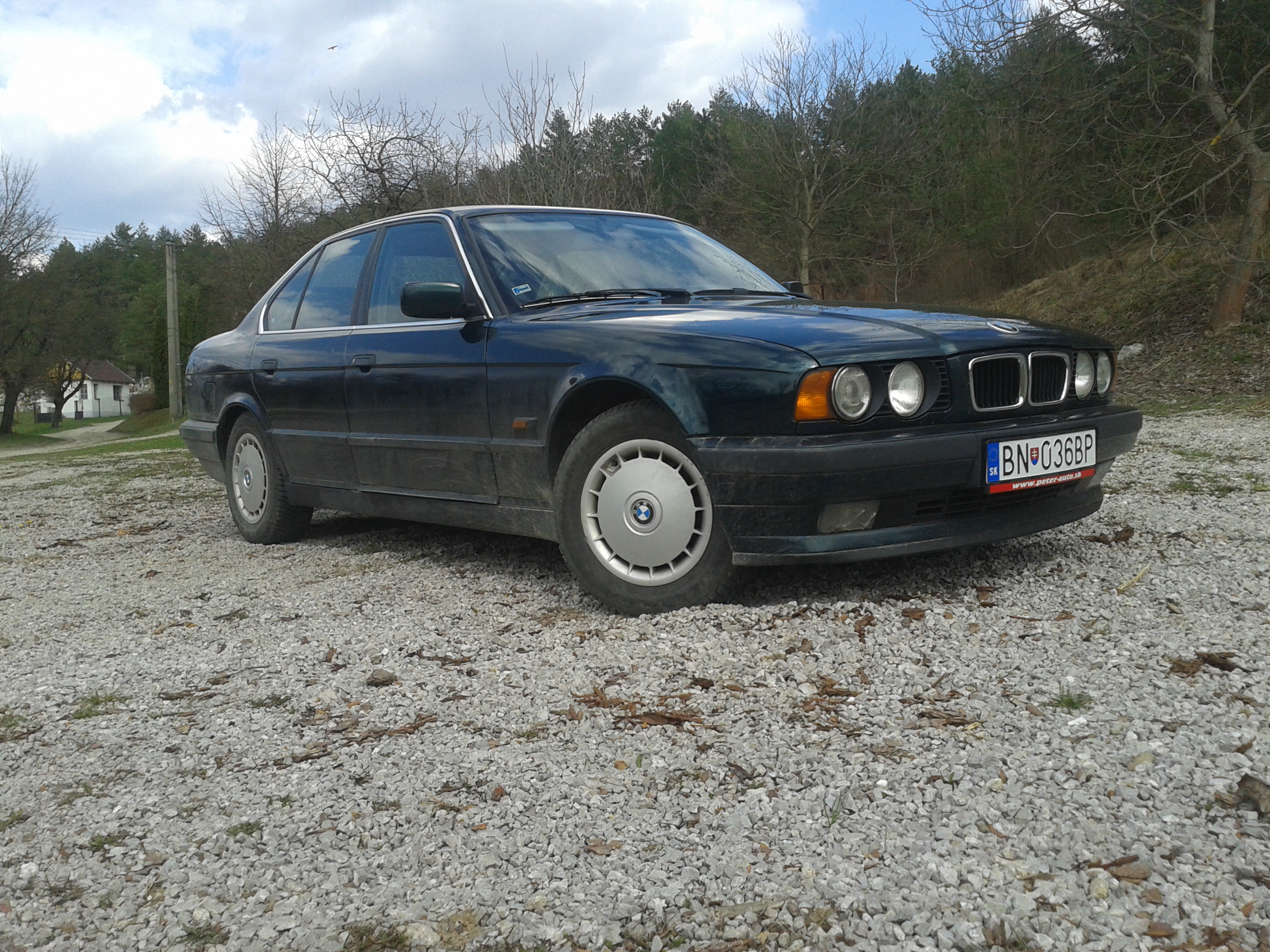 takze s coupe som sa cca pred mesiacom rozlucil a kupil som znova e34 ale tentoraz 525td z decembra 1994..prihlasovana je na mna z rakuska takze tu som prvy majitel..zistil som ze na tychto cestach mi je luto e36 a aj mna a treba kupit tank..na par chybiciek sa mi auto velmi paci a uz sa pracuje na zakladnych veciach..palivovy filter vymeneny, prepadove hadicky tiez. vzduchovy filter je uz na ceste..termostat uz mam doma..planujem olej len neviem aky, kedze neviem ani co je tam teraz naliate.takze sa budem este chvilu rozhodovat co by patorke najviac prospelo. Kupil som kolesa z doby ked sa premavali po cestach este cisto nove e28.su znacky eta beta. rozmer z hlavy nepoviem ale su R16..ale s nimi sa treba este vyhrat lebo su v zlom stave..co sa vybavy tyka tak je tam manualna klima, predne okna v elektrike, uslachtile drevo, sede calunenie, skivak, samostavovacie zrkadlo a zakodovane origo radio (kod mam ale stale svietia styri ciarky a neda sa zadat spravny). tot asi vse. treba sa pohrat zo spodnymi listami na dverach lebo spolujazdcova je asi naopak nahodena a odstava cela rovnomerne smerom von, soferova odstava len na okrajoch lebo je odhnita a lepena nejakym silikonom..pohravam sa z myslienkou ze ich dam navzdy prec..aj tak sa tam len drzi voda. nie je umyta tak sa ospravedlnujem ze sa neda pozriet v plnej krase..aj tak su zatial len tri fotky