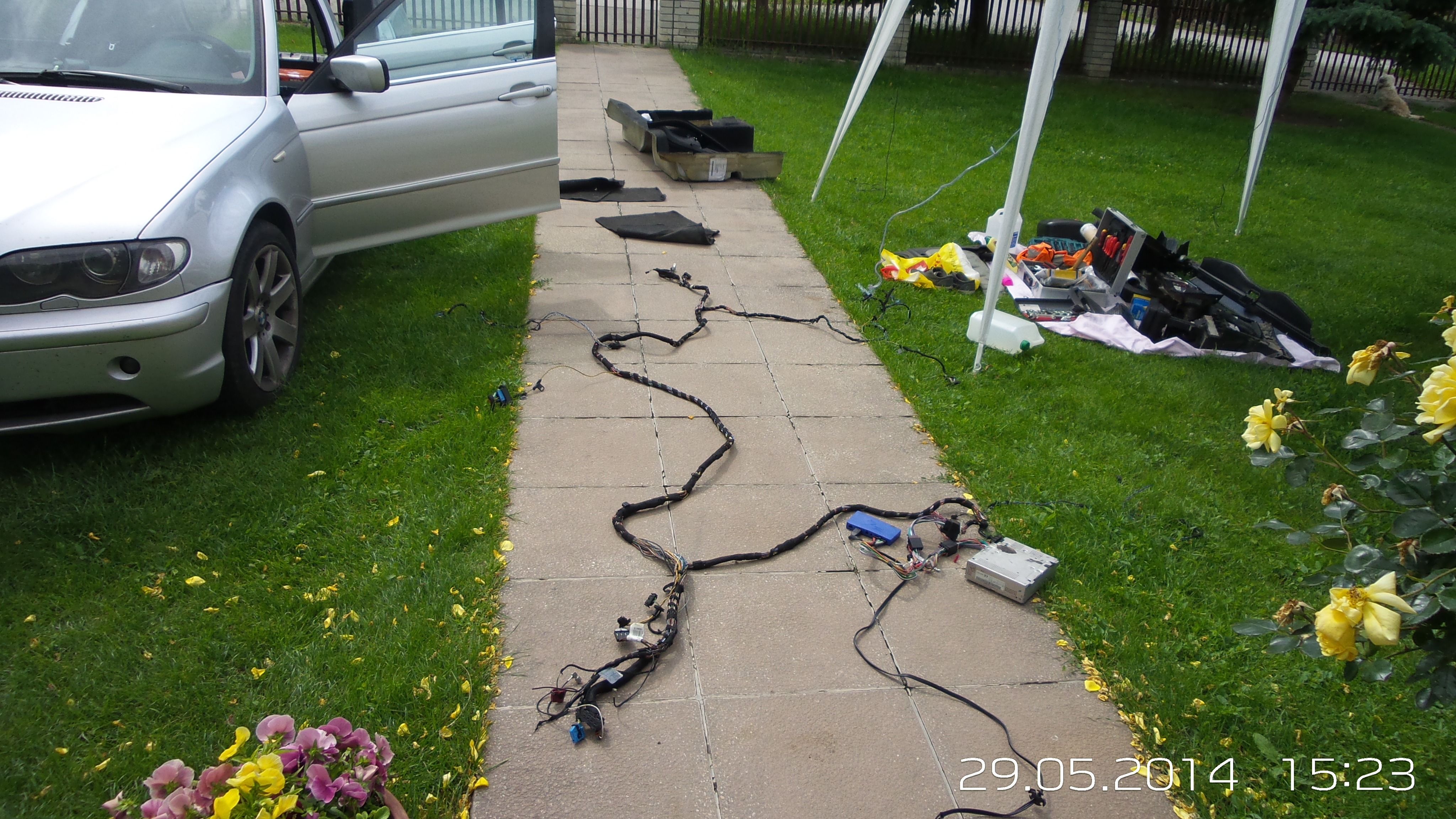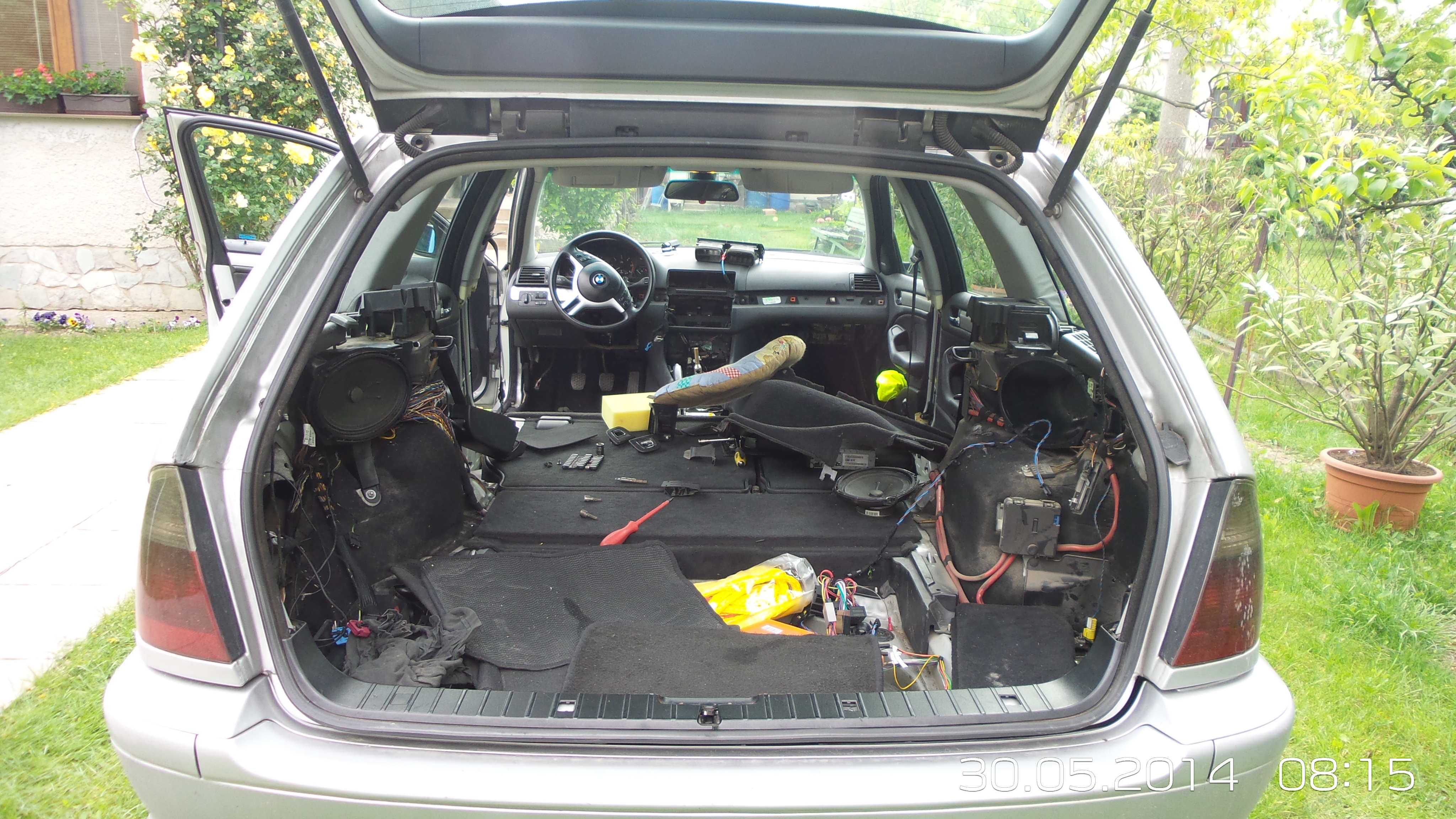 no a v tretom rade spomeniem pamatove sedacky, to bola celkom sranda, pretoze kable som v brne musel cvakat, kvoli nedostatku casu ich vymontovat. vo stvrtok som vyraboval auto, v piatok natiahol H/K, v sobotu som zlozil kufor, dal naspat zadne sedacky a lisovacimi spojkami som doriesil kabelaz na sedacky, v nedelu sa nedela tak som vymenil iba ten filter :) no a v pondelok a v utorok som sa ihruskal so zapojenim, podotykam SAM a vlastnym tempom, cista robota by bola na 3 dni :)