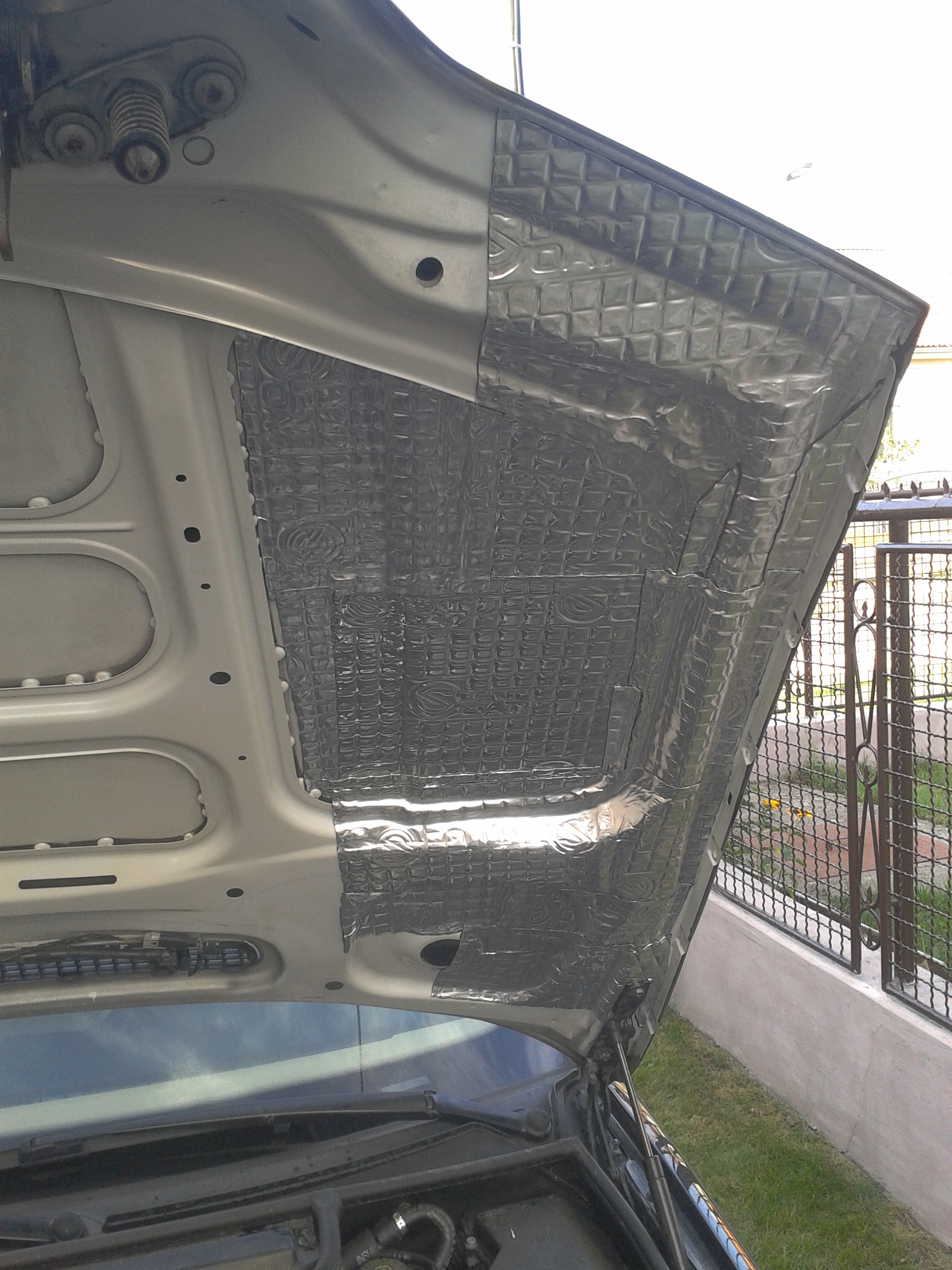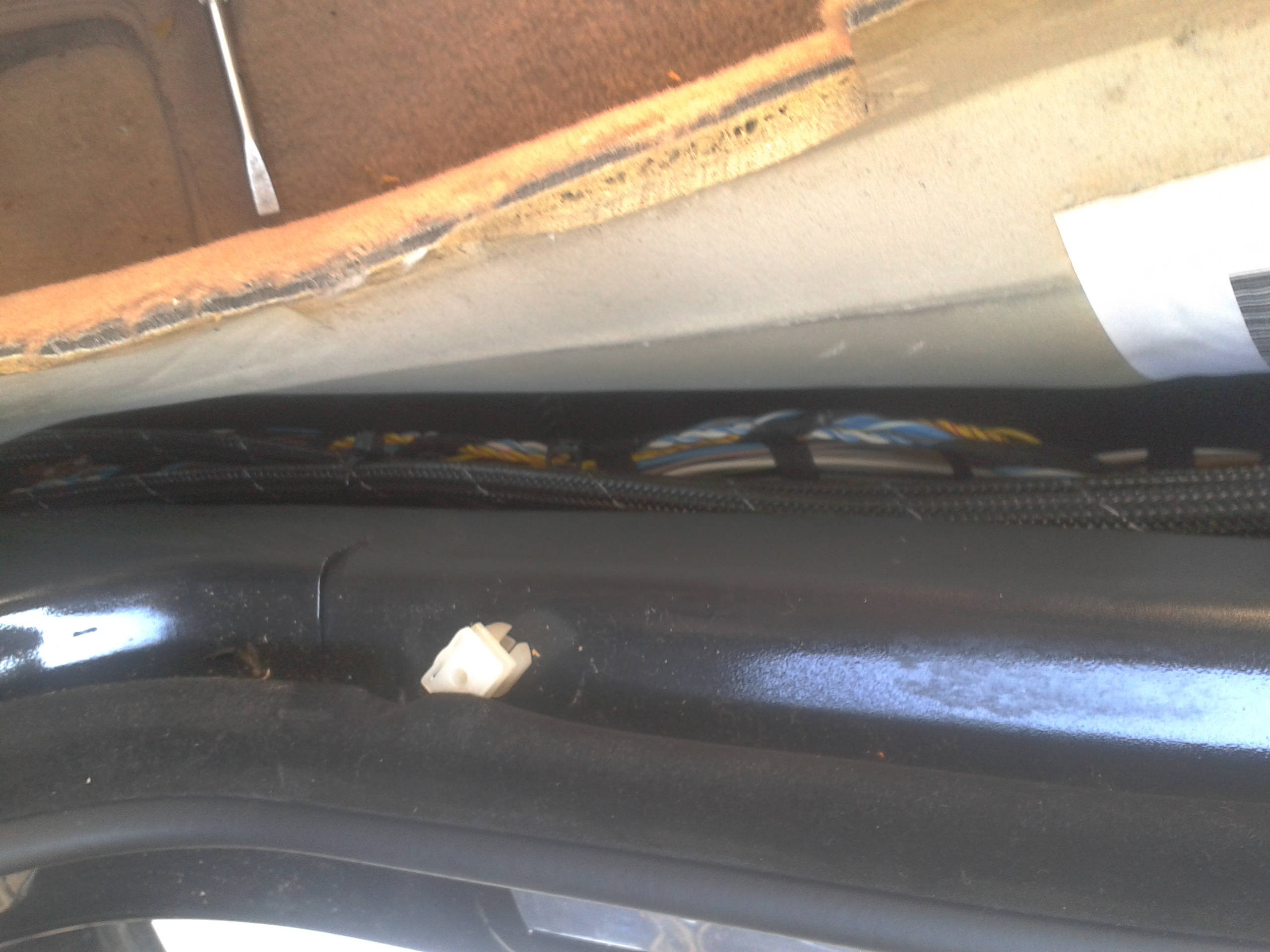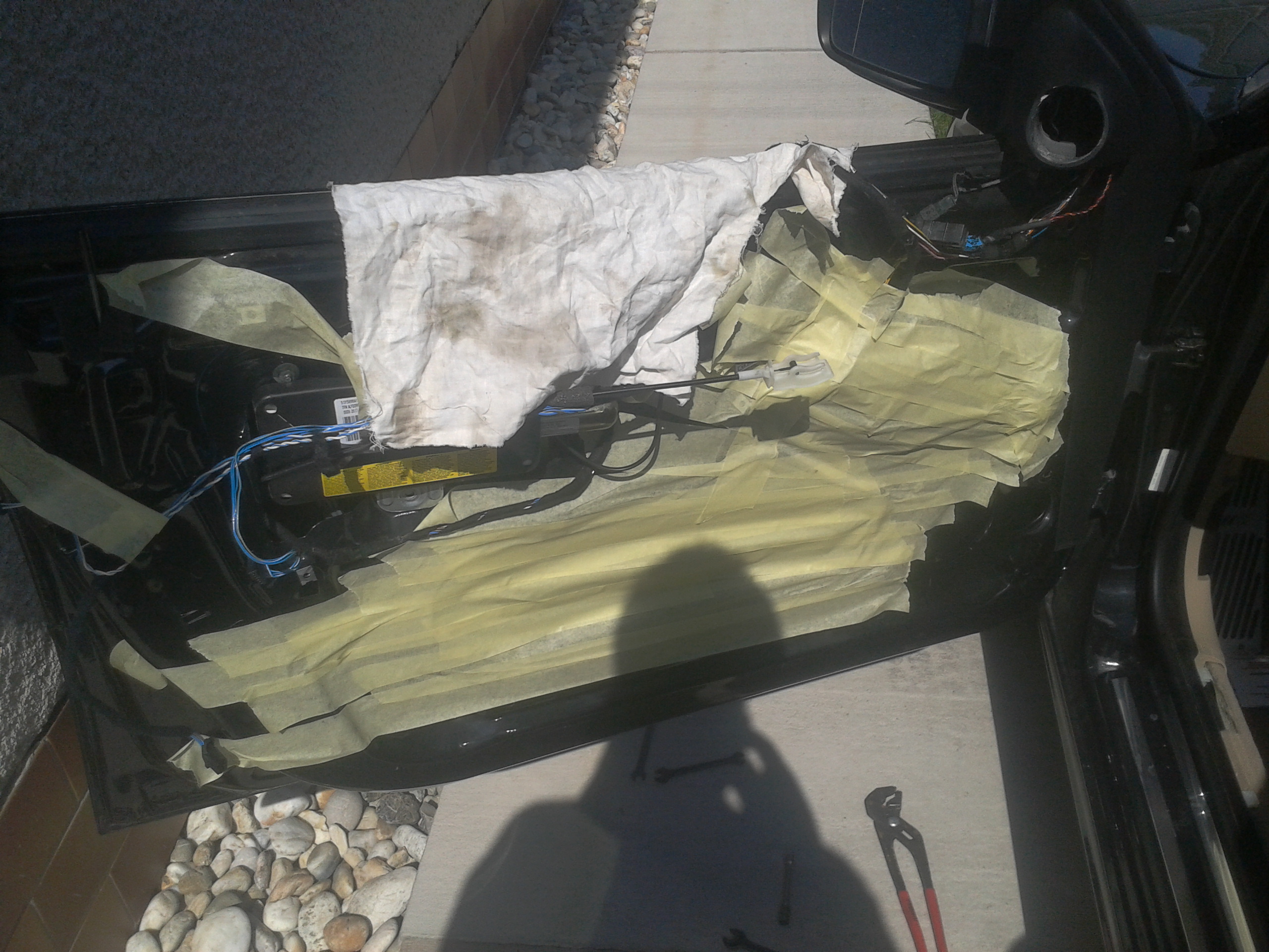 Rozobral som vodičove dvere, začal som vymenou kociek, stare sice ešte fungovali ale boli prasknute. potom som vyrezal otvor na reprák, z laminatu vyrobil "zaslepku" koli uzatvoreniu dverí. potom som ťahal kable do dverí, podarilo sa mi "upraviť" prechodku tak že to tam vliezlo na chlp, čo ma potešilo lebo sa mi nechcelo rezať koli novym prechodkam. Ale bolo to tak na tesno že sa mi tam nezmestili ani chraničky na kable. potom som ešte stihol vytlmiť vonkajší plech...