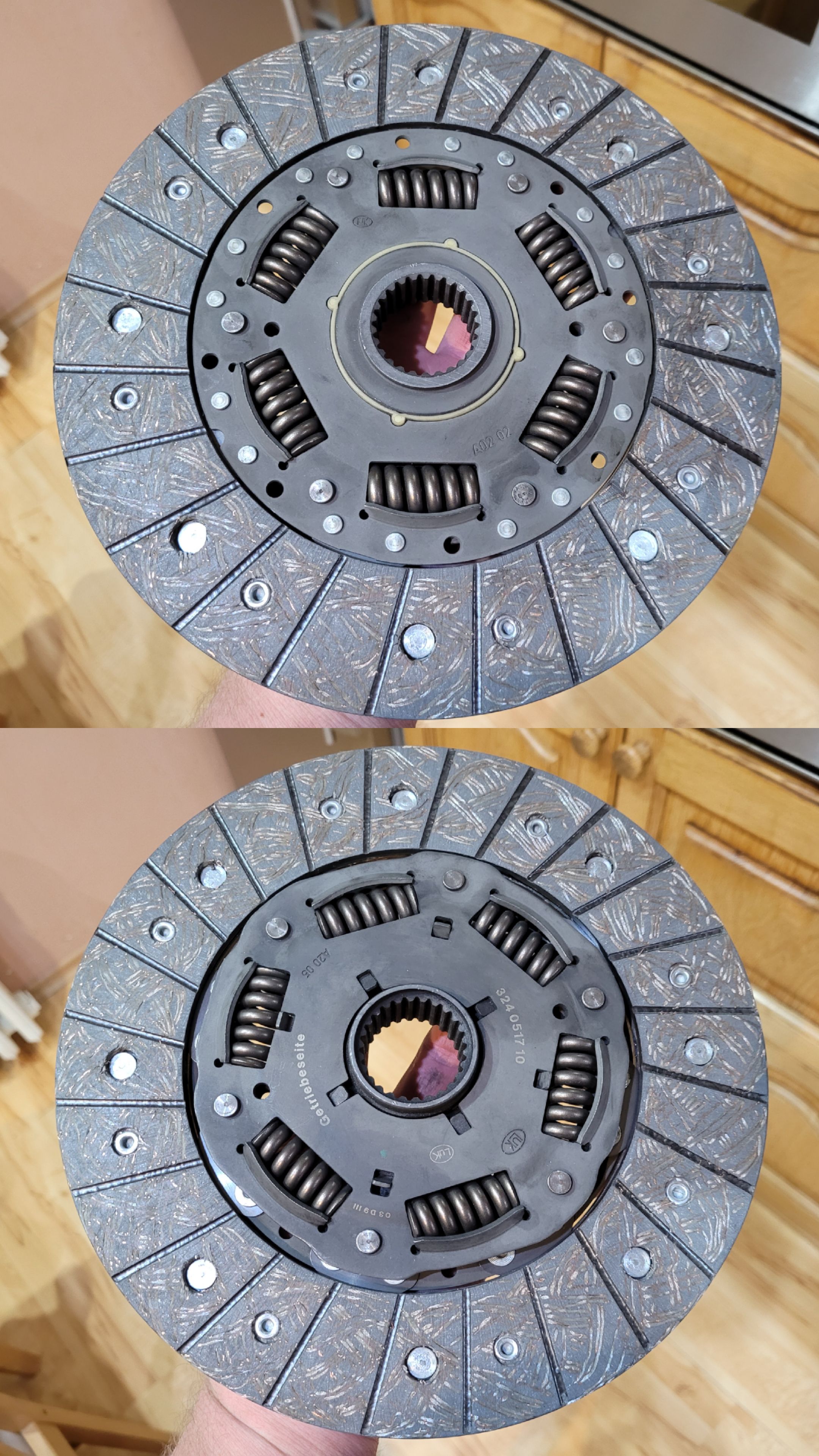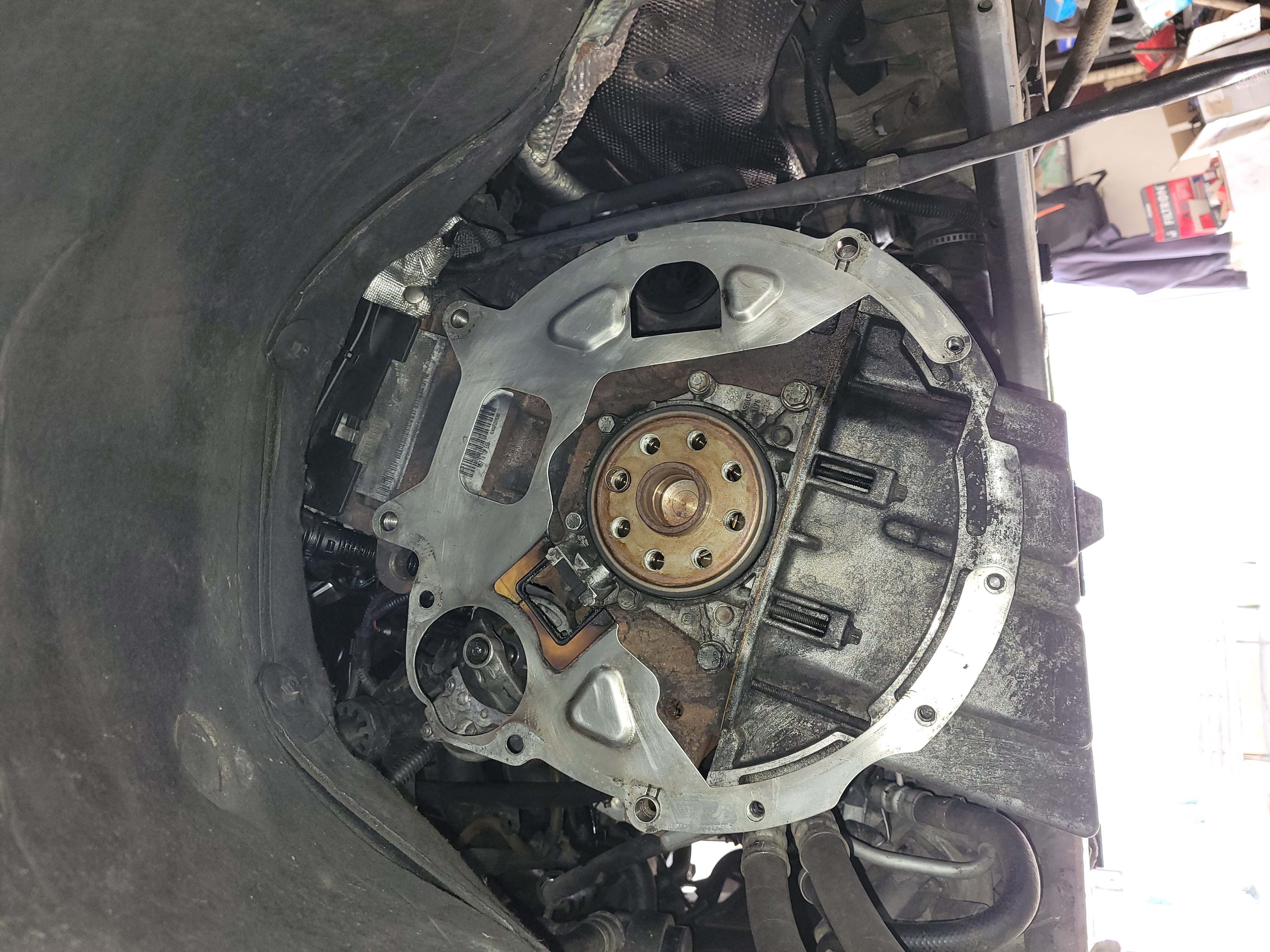 Druhý deň ráno som vstal 7:30 podgurážený silným entuziazmom som hneď valil do garáže. Objednaný spolupracovník prišiel o čosi neskôr, za ten čas som stihol odšróbovať hydromenič od motora a odvesiť prevodovku na 2 šróby. Po jeho príchode sme zhodili automat, jhaaj bol to veru dobrý pocit posledný krát v tomto aute po tom všetkom ty kurva. Štartovacie koleso vystriedal nový dvojhmotný zotrvačník LUK (vkladám do neho silné nádeje že čosi vydrží), následne zvyšok spojkovej sady, ktorú som pre istotu 3 krát odmastnil, nenechám tomu žiadnu šancu šmýkať 😀 Lamela má takú veľkú díru takže mi tam vystreďovací prípravok lietal jak nič, takže som vystredil úplne od oka. Všetky šróby preistotu na lep, potom premazať lôžka páky aj bežiacu plochu ložiska a schaltgetriebe mohla ísť dnu. Sadla tam ako riť na šerbel. Pred nasadením štartéra som na terminál cievky pripojil externý káblik vyvedený pod kapotu. Keď už takáto zástavba tak teda aj olej vymením. Vypustil som tú brúsnu pastu čo bola vo vnútri, tá 5x10cm nálepka vedľa LIFETIME OIL, NO OIL CHANGE na mňa pozerala jak na kkta. Použil som 2L novej Febi náplne, doteraz som tieto febička oleje nepoužíval ale dám tomu šancu. Následovala najťažšia časť celej operácie AKA spojiť hlavný spojový valec s pomocným. Trubka by bola, lenže nejaká po mŕtvici poskrúcaná, ani za boha som nevedel trafiť pôvodný tvar, do toho aj prechodka cez karosériu je zamaskovaná natoľko že som začal pochybovať o jej existencii 😀 Bolo nutné trošičku nastrihnúť koberec aby som sa k nej dostal, je dosť tesne pod stredovým tunelom, ale všetko je zakrytované takže žiadne rezy koberca nebude v konečnom stave vidieť. Takže trubku by sme mali vonku pri prevodovke, s malou dušičkou som ju pozohýbal aby nikde nedrela o prevodovku a zapichol do valčeka. Myslel som že už mám vyhrané, no to som si iba myslel, ešte to treba odvzdušniť. Nalial som novej kvapaliny a započal. Lenže ani za boha to nešlo, skúšal som všetky spôsoby, tisíc krát stláčaný pedál aj valček spojky. Potom som vytiahol z rukáva metódu akou som vždy odvzdušňoval spojky na motorkách, teda injekčnú striekačku. Tou som pretlačil odspodu celý okruh až do expanzky a hotovo, pedál tvrdý. Mohol som si hneď ušetriť hodinu pičovania a trápenia sa, no tieto manuály boli doteraz pre mňa neznáma 😀