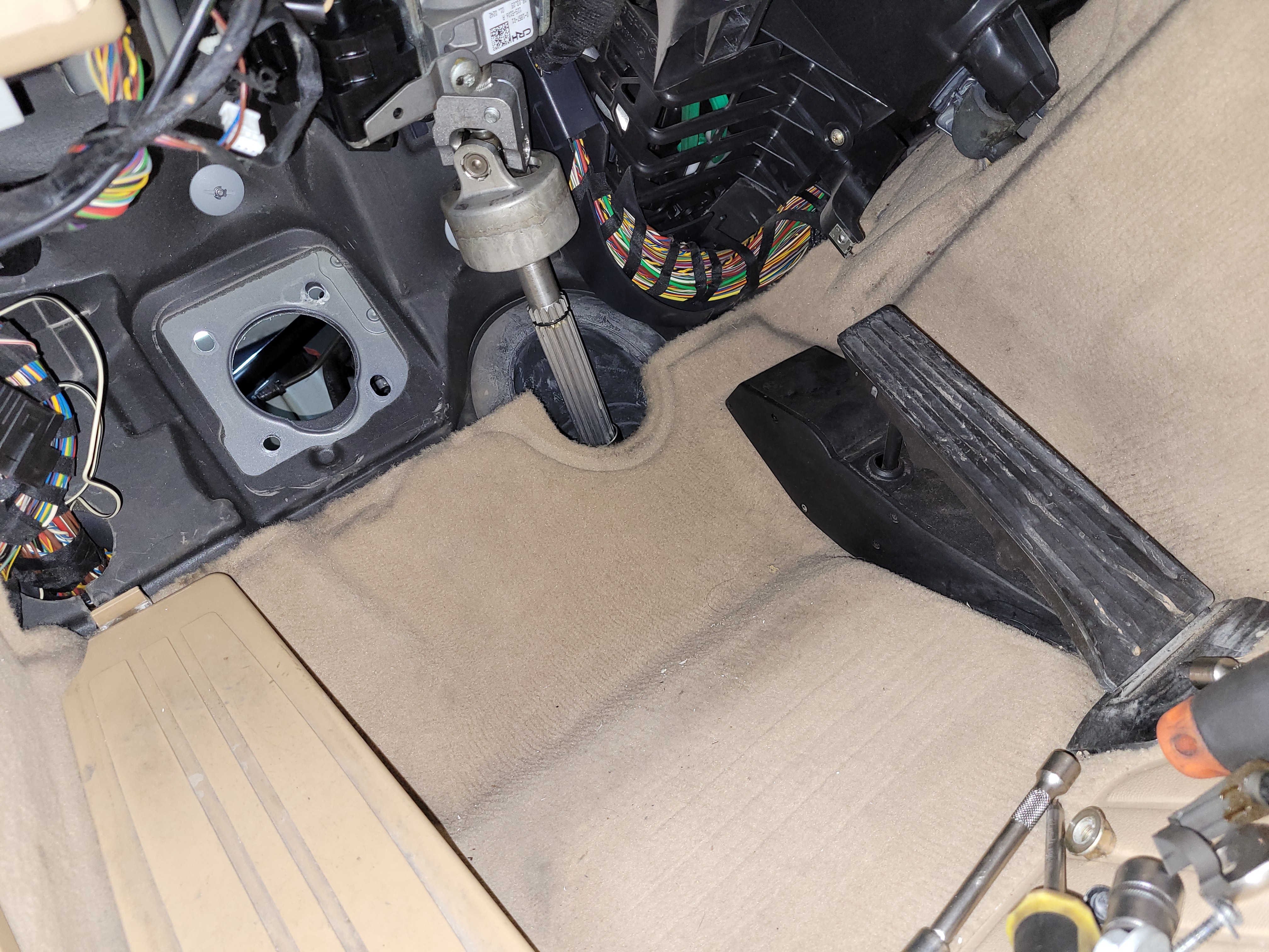 Next step - kulisa radenia. Vybral som stredový dekor, krkolomne pod uhlom vyšróboval torxy z voliča automatu ale nie je v silách ľudských to vybrať horom. Chvíľu som bojoval, krista boha nebudem pol auta rozoberať skrz takú malú kktinu. Prehral som, stredový tunel musel ísť von, ukľudnilo ma to že ho držia 4 šrúfky 😀 vybral som volič aj s lankom do prevodovky, s lankom od spínačky ešte neviem čo vyšpekulujem, zatiaľ je na voľno a ničomu nevadí. Koniec prvého dňa.