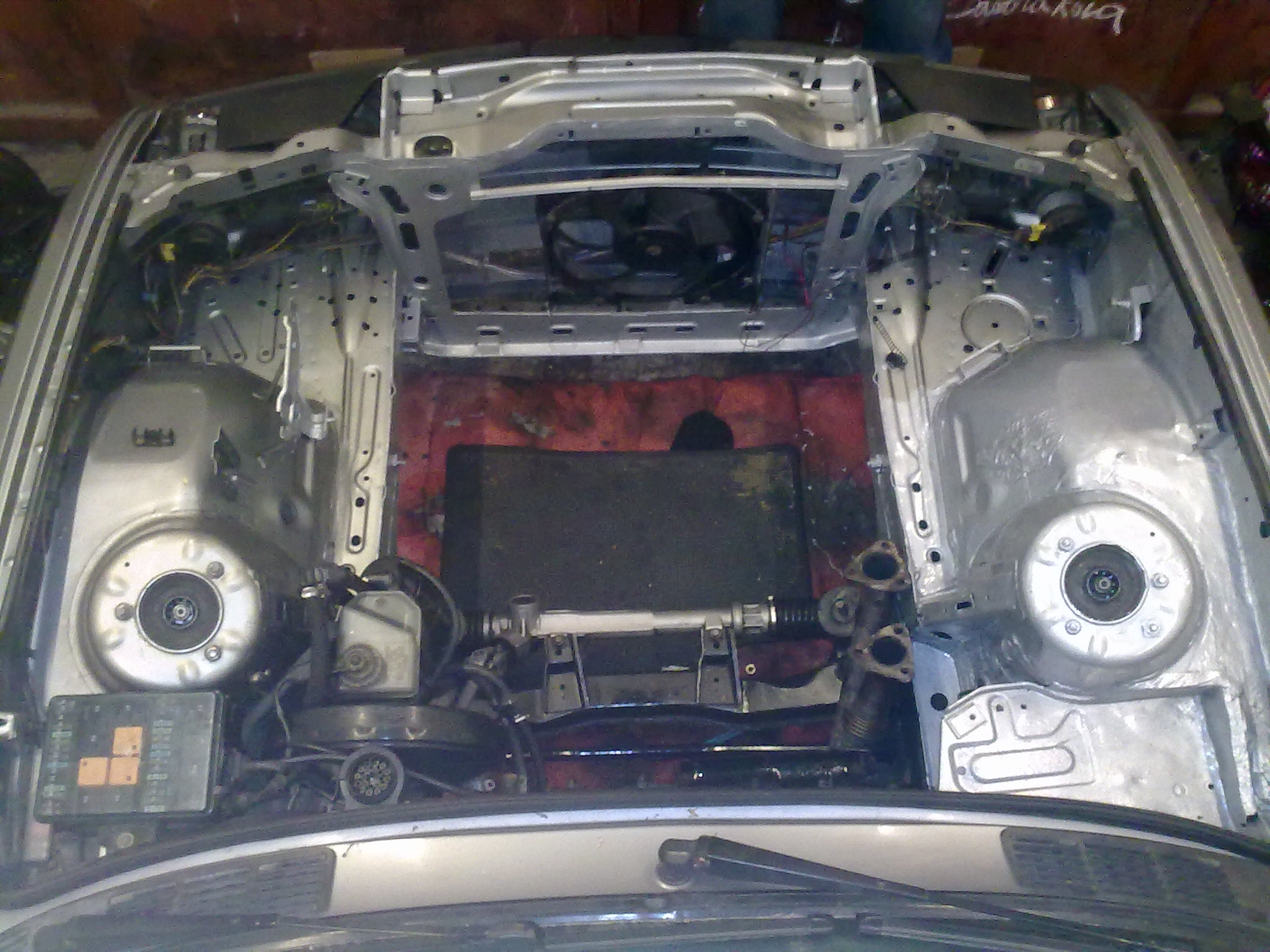 ) ale niesu jedinou moznostou ako mat silne auto. V12 je samozrejme masineria ktora nepotrebuje komentar to vieme snad vsetci :). Aby som tu len neklabosil o chobotinach tak pridam aktual foto motoroveho priestoru, sice aj tak to neni uplne aktual lebo vcera som odtial vypreparoval prevodovku, kardan a vyfuk :). Chceli sme vymenit olejovu vanu na m52 a tu sme zistili ze ten motor je tazky jak svina ked je kompletne nastrojeny, a ten chaby dreveny stolik na ktory sme ho chceli polozit by sa asi hned polamal