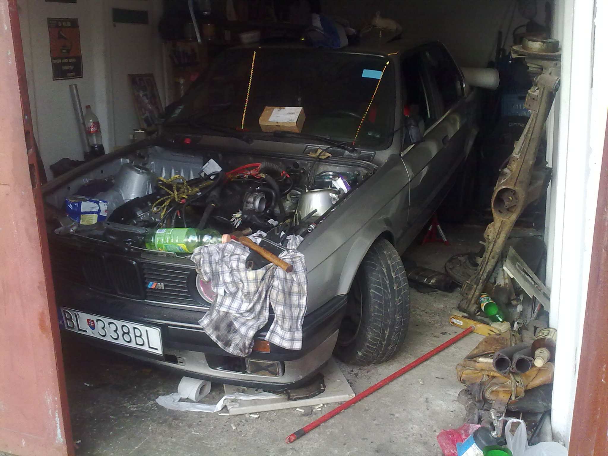 . Zavesili sme motor zasa na lano, a vytiahli ho nad auto. Po trocha problematickej demontazi prevodovky sa hned ukazalo co je vlastne vo veci. Dvojhmotny zotrvak z m52 je skratka tak hruby ze po nahodeni prevodovky sa okrajom pritlacil k vnutornej strane zvonu prevodovky, takze preto neslo otacat motorom. Riesenie vidim asi nasledovne - zotrvak, pritlacak m20, a lamelu tam smarim tu z m52 lebo rozmerovo pasuje a je v super stave, a malo by to byt tiptop (dufam)