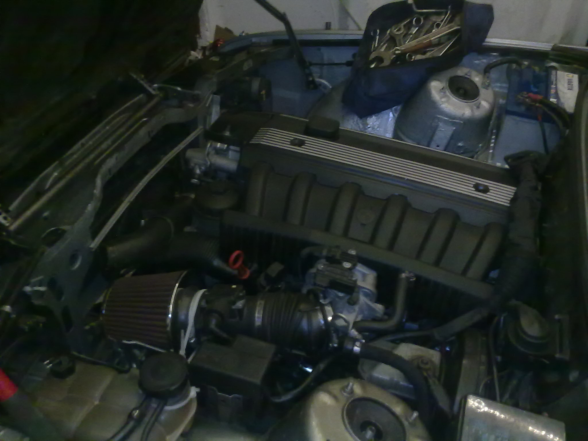 . Dnes pride postou vodna pumpa a termostat. Stary termostat bol kus hrdzavy ale otvaral sa (bohvie pri akej teplote, poliali sme ho liehom a zapalili, ci to vobec daco spravi). Vodna pumpa vyzera byt ok az na ten vakel a chrchlot z loziska. Chladic presiel dost tazkou preplachovou kurou ked sme donho nasypali sodu, zaliali a preplachli par litrami octu, a schytal este nejaky sajrajt proti hrdzi a vodnemu kamenu. Zvonka sme ho vyvapkovali, este ked to zlozim tak tam prasknem len destilku a ten radiator flush od bnykolasa a malo by to byt cistucke, tak som zvedavy ci to tomu chladeniu pomoze. Snad uz bude klud. Vcera ako som dozapajal hmlovky a dal som do auta baterku aby som sa pozrel ako svietia, som sa len tak tak udrzal aby som to nedal dole zo zdvihaku a nesiel sa previezt. Kym ma to uplne nestihlo ovladnut tak som z poslednych sil vybral ten chladic nech ma to nepokusa