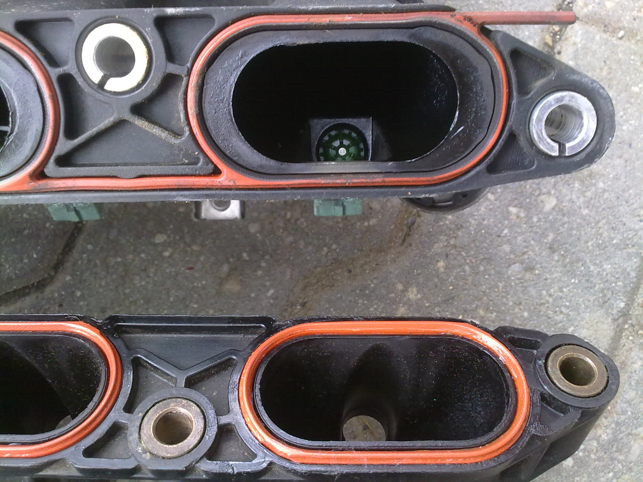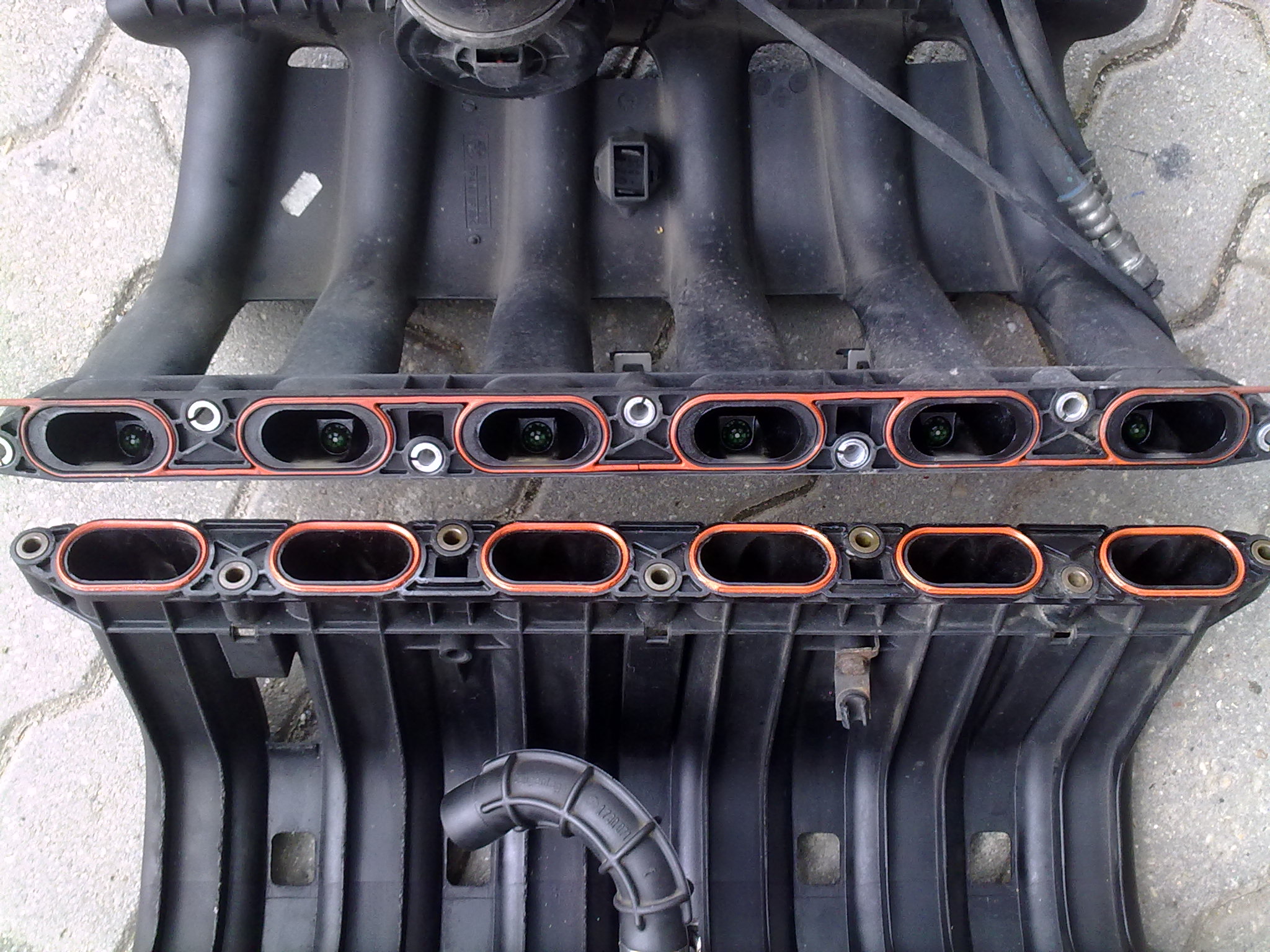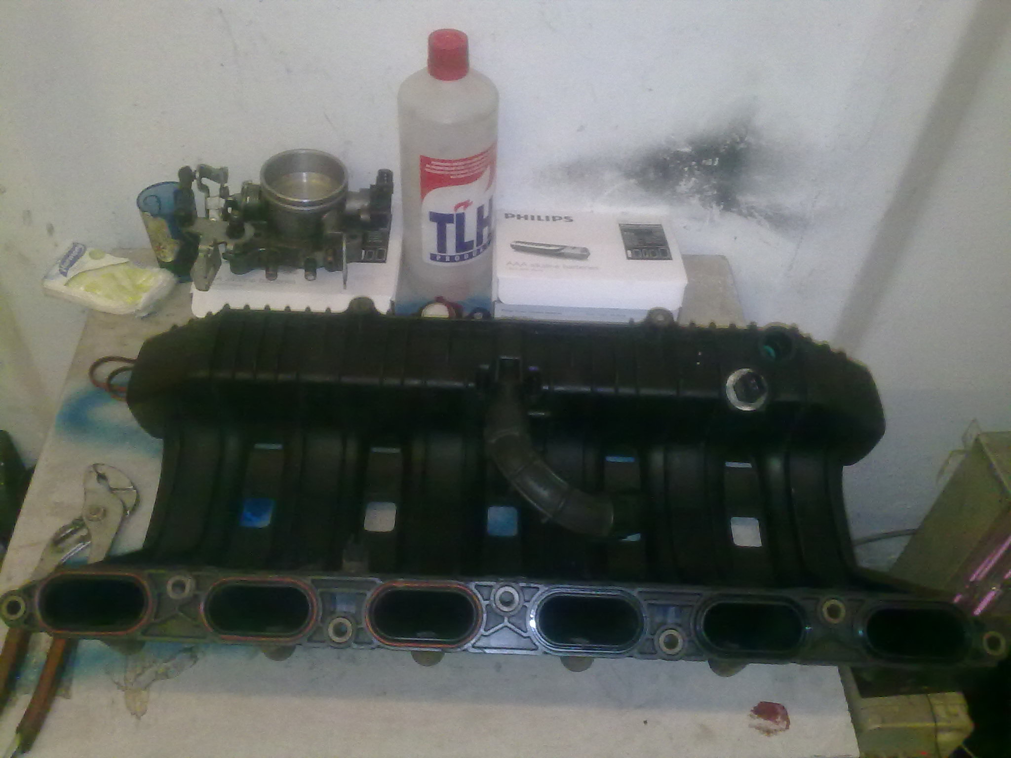 Bolo par dni volna, tak sa na tricke pracovalo. Uz predtym som si pripravil nejake blbosticky okolo m50 sania tak som sa teraz mohol naplno pustit do vymeny. Len v skratke pre ludi ktori by nahodou netusili preco sa (vraj) oplati davat m50b25 sanie na motor m52b25 : Ako vidno na fotkach M50 sanie ma o celkom dost sirsie kanaly pre privod vzduchu do motora. Dakde na nete som vycital ze prietok vzduchu je o 40% vacsi nez u serioveho uzkeho sania motora m52. Cize motor by mal zvladat lahsie nasavat vzduch, nasat o o kusok viac, jednotka tomu strekne o kvapku viac vonaveho benzinu, a tadá - vyssi vykon by mal byt na svete. Co som ponachadzal grafy z brzd kde jedinou upravou bolo sanie m50 a zvody m52b28, tak ludia namerali cca rovnych 200 koni, +- nejake desatinky. Ja som zvody nechal tak ako su. K tomu som na dakom grafe nasiel rozpravku o 196ps. Kdoví, mozno to je pravda.