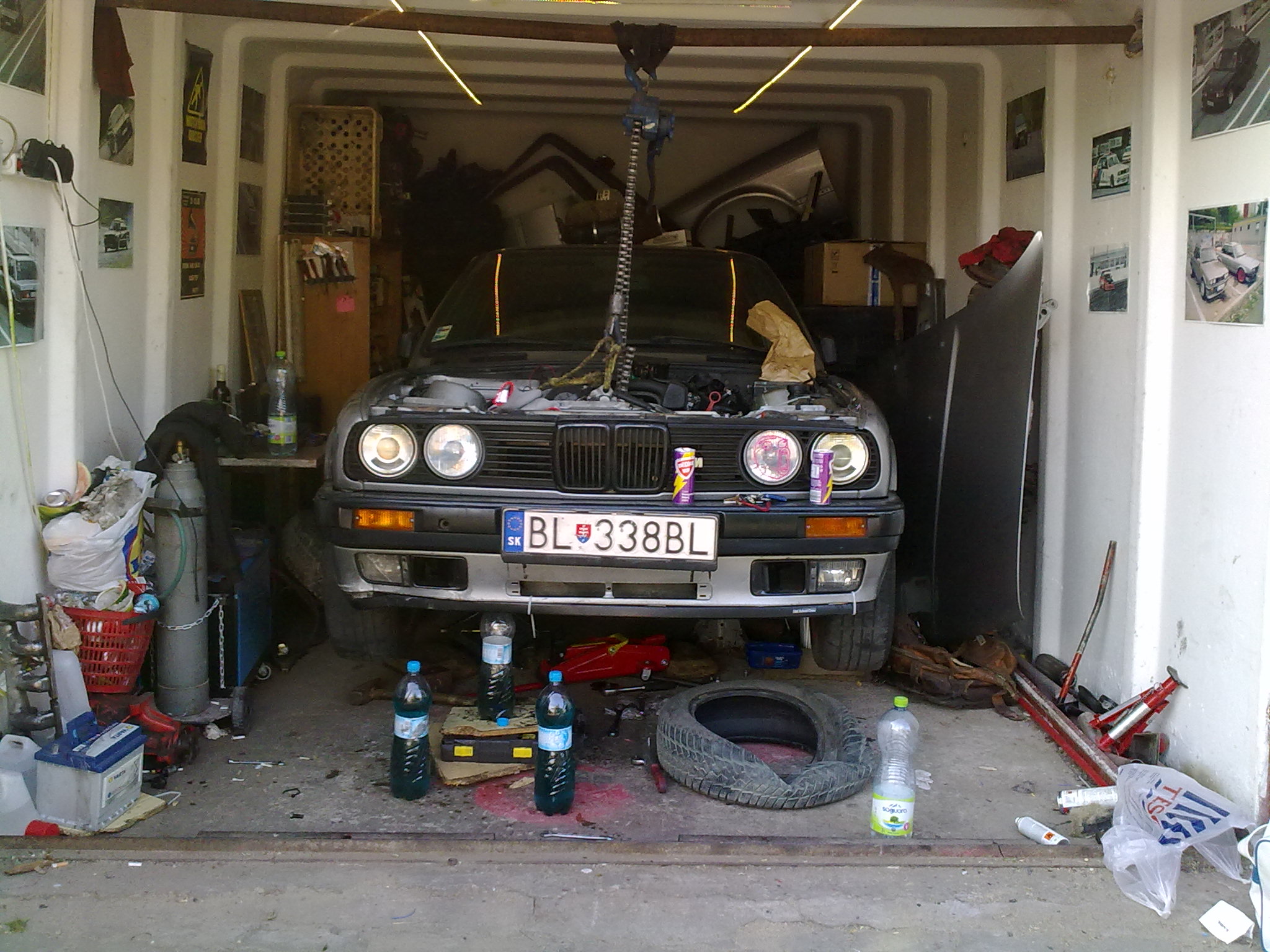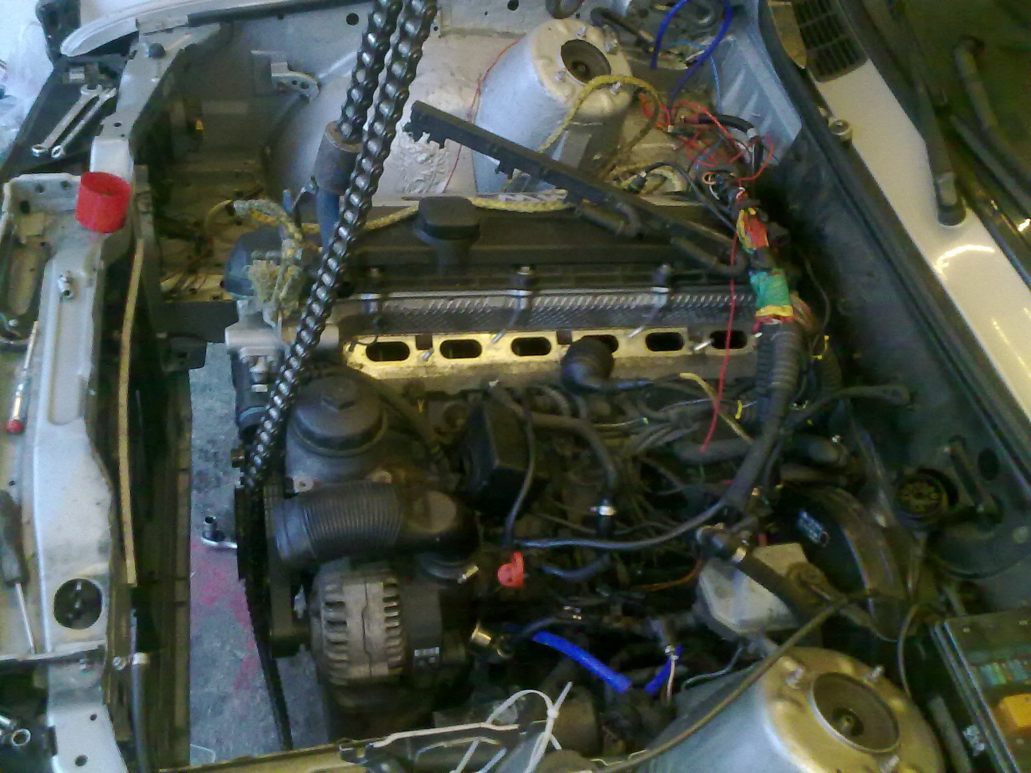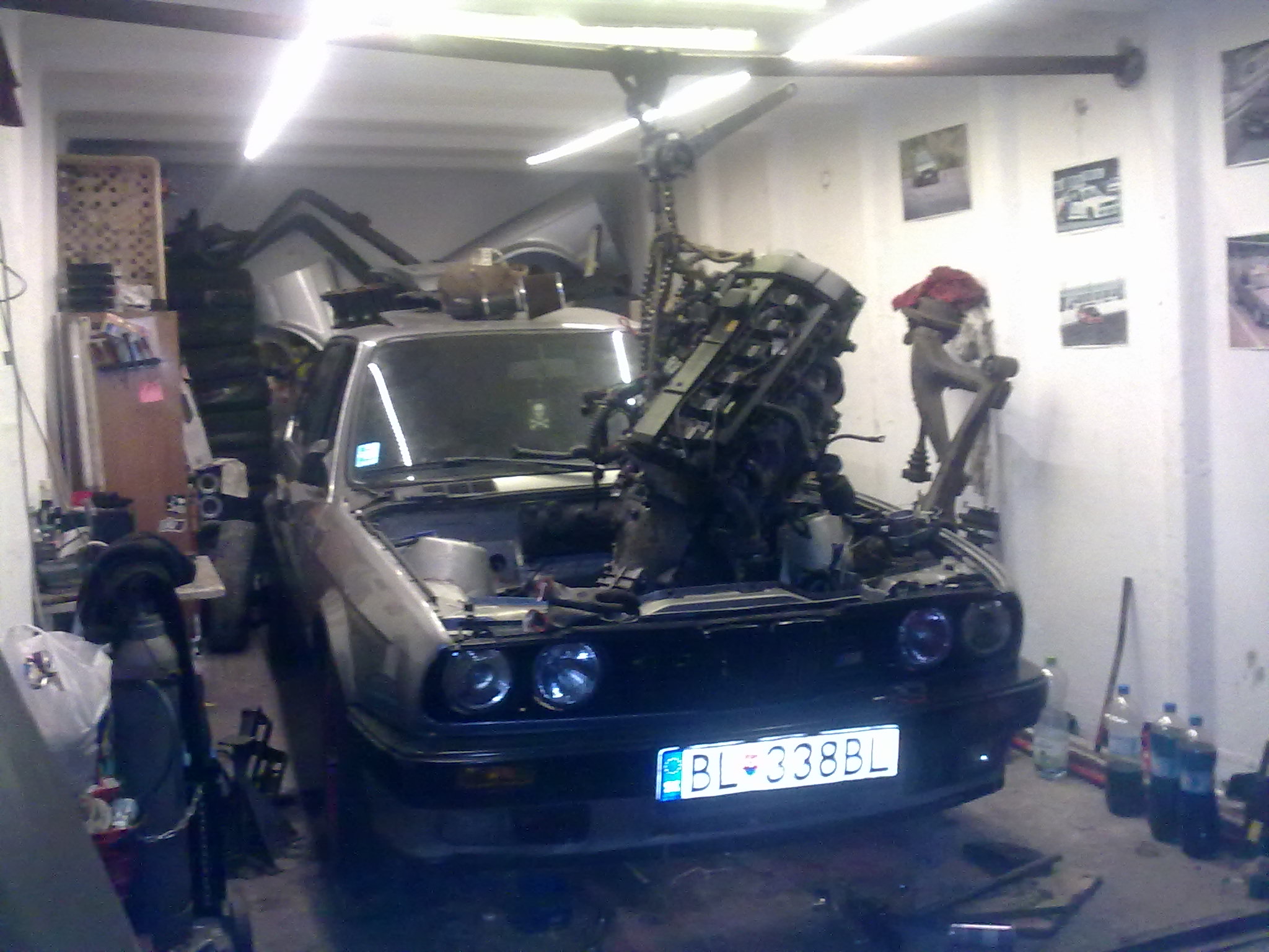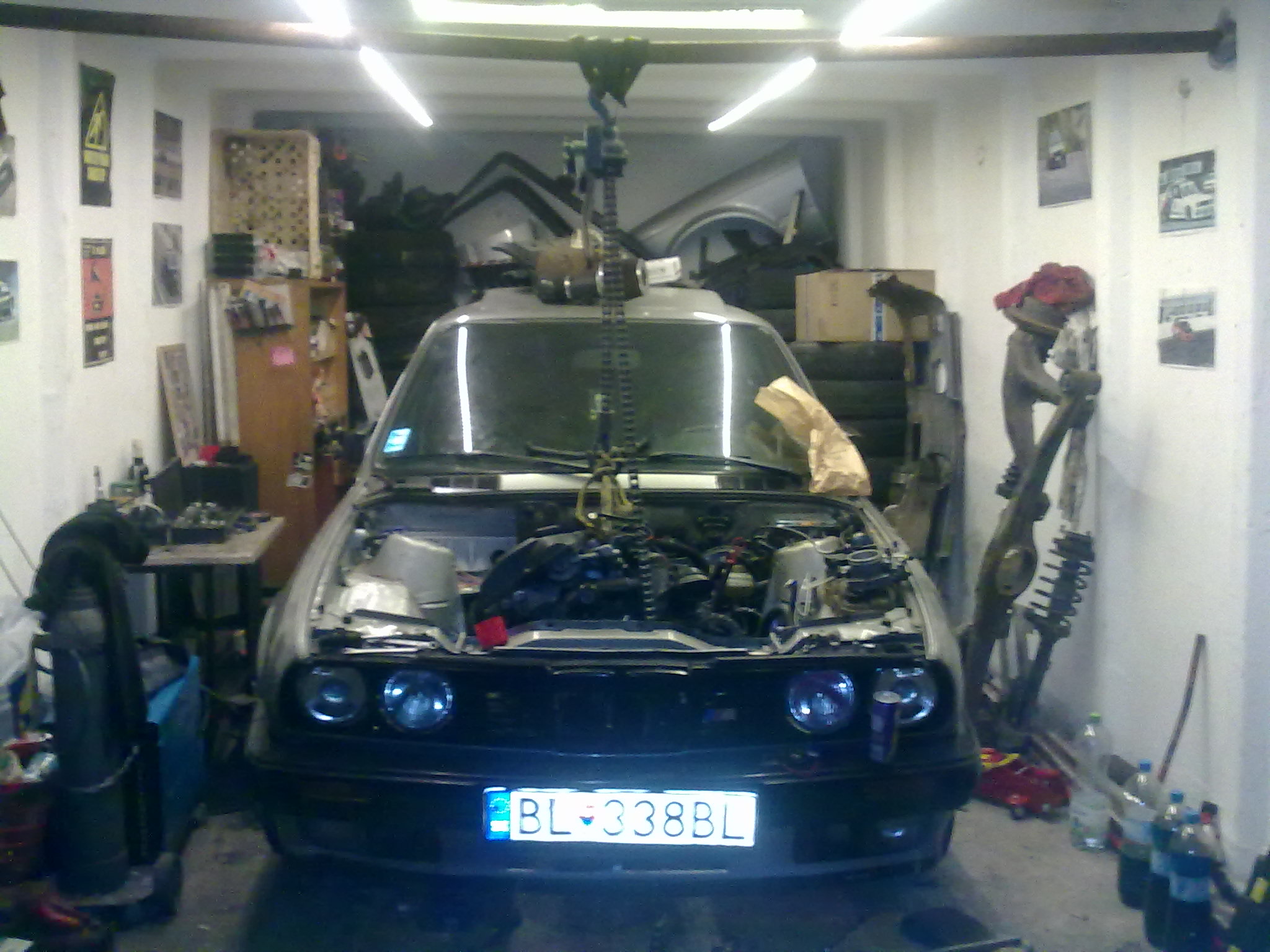 . Po chvili bezradneho uvazovania som sa teda rozhodol nahodit naspet napravnicu a spustit auto dole a vybrat cely motor. Napravnica nechcela ist na povodne miesto, a ked sme ju tam dostali tak jeden pan srob nechcel chytit zavit ani za toho boha (to uz sa z garaze ozyval moj tradicny nadavkovy koncert). Po 3h cca bola napravnica na mieste a podarilo sa presvedcit aj srob aby siel tam kam patri. Uff